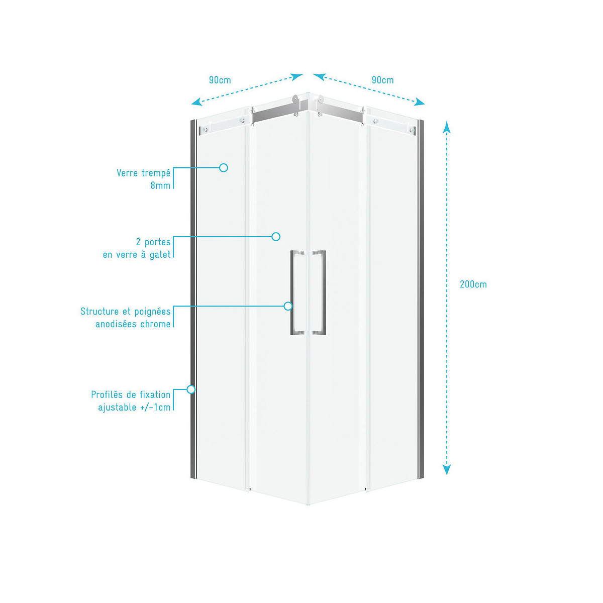 Caractéristique des portes coulissantes : Verre trempé 8mm 2 portes en verre à galet Structure et poignées anodisées chrome Profilés de fixation ajustable +/-1 cm Dimensions des portes : 90x90 cm Désignation : ROLLING CHROMED SIDE 80 / RETOUR 80 Référence: FAC617 Garantie 2 ans pièces et non main d'oeuvre. Verre trempé : Le verre trempé est un verre qui a subi un traitement afin d’améliorer ses propriétés. Nous utilisons la trempe thermique qui consiste à porter le verre à très haute température (environ à 700 °C), puis de le refroidir rapidement. Ce processus favorise l'apparition de tensions en profondeur et celle de la compression à la surface du verre. Tout cela a pour effet l’amélioration de sa résistance aux chocs. Il est de 2 à 5 fois plus résistant que le verre simple. Mais aussi diminue grandement la dangerosité du verre car en cas de casse le verre explose en de petits morceaux et non pas en de grands pans tranchants. Pour le reste il conserve les mêmes propriétés que le verre classique Norme harmonisée : EN14428:2004 Certification Européenne: Aptitude au nettoyage : EN14428 :2004+A1:2008 Clause 4.2 Résistance à l’impact / Propriétés d’éclatement: EN14428:2004+A1:2008 Clause 4.3 Durabilité : EN14428:2004+A1:2008 Clause 4.4 MyShowerRoom c’est aussi la garantie de durabilité : Nous garantissons un stocks de pièces détachées d’au moins 5 ans Notre visserie est en acier inoxydable ce qui est une garantie anticorrosion Garantie 2 ans pièces uniquement Cocorico ! MyShowerRoom est une entreprise Française et toute la conception de nos produits est également Française. Ce qui est un véritable plus pour être au plus près de ses clients et avoir une meilleure connaissance de leurs attentes. Qui sommes nous L’HISTOIRE DE MYSHOWERROOM Nous avons créé MyShowerRoom en 2003 avec l’ambition de démocratiser le design et l’innovation dans la salle de bain pour faire de cette pièce un lieu à part entière, un véritable lieu d’histoires à vivre pour toute la famille. Nos cabines de douche et meubles de salle de bain dans l’ère du temps à des tarifs très accessibles. Nos nombreux brevets garantissent l’originalité de notre gamme de cabines de douches. Et nos ingénieurs mettent en œuvre tout leur savoir-faire et toutes les technologies innovantes au service d’une simplicité d’installation et d’utilisation incomparable pour tous. ÊTRE BIENVEILLANT AVEC NOS CLIENTS Notre service client a un objectif : rendre nos clients heureux. Pour cela nous veillons à répondre dans les 24h aux demandes clients. Mais aussi de toujours apporter une solution et entière satisfaction à nos clients. CONSTRUIRE DES PRODUITS TOUJOURS PLUS PERFORMANTS Nos ingénieurs, ainsi que nos équipes terrain consacrent tous leurs efforts à créer des produits adaptés à vos besoins, et toujours plus innovants grâce à nos technologies. Notre objectif est d’être votre unique interlocuteur pour tous vos projets de salle de bain. CONCRÉTISER LES RÊVES DE CHACUN Un projet de salle de bain ? Nous le réalisons ! Lieu de détente et de relaxation par excellence, la salle de bain est une des pièces maîtresse de la maison. Chez MyShowerRoom, nous mettons tout en oeuvre afin que ce rêve devienne réalité. PROPOSER UNE GAMME COMPLÈTE DE PRODUITS Nous vous proposons grâce à notre boutique en ligne une gamme complète de produits Made in MyShowerRoom pour équiper, et accessoiriser votre salle de bain. Un catalogue que nous renouvelons régulièrement avec les dernières technologies MyShowerRoom. APPORTER UNE EXPERTISE HUMAINE Parce que l’humain passe avant tout, nous travaillons avec les meilleurs experts. La satisfaction de nos clients est notre seule et unique priorité. Chaque problème a une solution, et c’est dans cette optique que nous avons mis en place un chat pour échanger directement avec nos équipes. NOTRE CENTRE LOGISTIQUE 11 000 m² d’entrepôt 7000 palettes en stock 1 800 colis traités par jour Plus de 260 préparations de commandes quotidiennes 12 quais de chargement/déchargement CONSEILS & VENTES Une équipe disponible 5 jours sur 7 pour vous accompagner dans vos achats. LIVRAISON GRATUITE Pour toute commande sur le site MyShowerRoom, la livraison est gratuite dans toute la France. UNE GARANTIE DE QUALITÉ Grâce à nos produits brevetés vous bénéficiez de produits uniques. Référence produit: FAC617 Retrouvez plus d'informations produit et des conseils de montage sur le site Aurlane. Remarques importantes: Ces colis sont volumineux, la livraison est effectuée par transporteur spécialisé en bas de chez vous. Les chauffeurs ne sont pas habilités à porter la marchandise, mais uniquement à la décharger. Pas de livraison à l'étage. L'adresse de livraison doit être accessible en camion poids lourd. Dans le cas contraire la marchandise sera mise à disposition au dépôt le plus proche (distance non garantie). Les rendez-vous sont gérés directement par les transporteurs. Attention à bien contrôler la marchandise à réception pour éviter tous litiges.