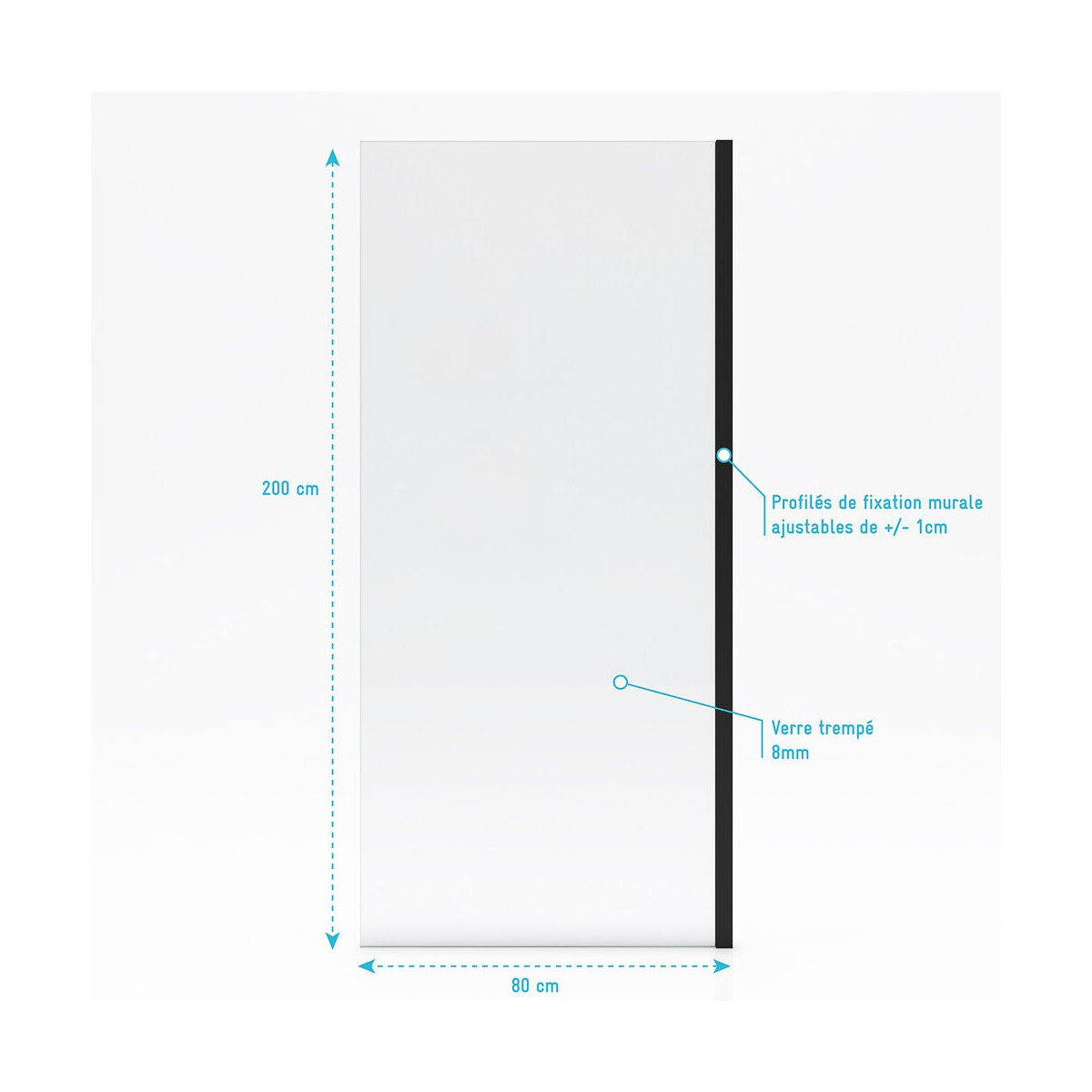Caractéristiques 1 Paroi de retour de douche type industriel en verre trempé 8mm transparent Attention il ne s'agit que de la paroi retour, la Facade RAILROAD DARK FRONT n'est pas inclus (disponible à la vente référence FAC357 et FAC358) Dimensions 80x200cm Référence: FAC359 Garantie 2 ans pièces et non main d'oeuvre. Profilé noir mat thermolaqué : Le thermolaquage est une technique de traitement spécifique réservé aux matériaux en métal ou en aluminium brut. On projette de la peinture en poudre chargée en électricité statique qui va se déposer sur toute la surface des profilés. Cette technique de pulvérisation en poudre , qui s’appelle projection électrostatique ou poudrage électrostatique, permet d'avoir un revêtement complètement uniforme sur tous les profilés. Ce type de traitement dispense l’utilisation de produits chimiques nocifs pour la santé et l’environnement comme les solvants. Après avoir été recouverte de poudre, la pièce doit passer dans un four où elle sera chauffée pendant 20 minutes à 200°C. Les avantages du thermolaquage : Cette technique possède de nombreux avantage, qui sont La surface peinte possède une dureté supérieure ce qui a pour conséquence une résistance aux chocs accrue Le thermolaquage a une meilleure résistance à la corrosion La couleur des profilés thermolaqués résiste mieux au vieillisement et tout autres élément tel que l'humidité etc. Les profilés thermolaqués présentent une meilleure finition, fini les coulures de peinture et défauts d'aspect, avec cette technique la surface est uniforme Sans solvant c'est un véritable plus pour la santé Mais aussi plus écologique (pas de solvants) Dans un souci de qualité mais aussi de sécurité nos produits répondent à toutes les normes Européennes en vigeur. Que ce soit en terme de sécurité en cas de casse, d'entretien de nos produits ou de la durée de vie de ces derniers, nos produits remplissent tous les critères. Verre trempé : Le verre trempé est un verre qui a subi un traitement afin d’améliorer ses propriétés. Nous utilisons la trempe thermique qui consiste à porter le verre à très haute température (environ à 700 °C), puis de le refroidir rapidement. Ce processus favorise l'apparition de tensions en profondeur et celle de la compression à la surface du verre. Tout cela a pour effet l’amélioration de sa résistance aux chocs. Il est de 2 à 5 fois plus résistant que le verre simple. Mais aussi diminue grandement la dangerosité du verre car en cas de casse le verre explose en de petits morceaux et non pas en de grands pans tranchants. Pour le reste il conserve les mêmes propriétés que le verre classique Norme harmonisée : EN14428:2004 Certification Européenne: Aptitude au nettoyage : EN14428 :2004+A1:2008 Clause 4.2 Résistance à l’impact / Propriétés d’éclatement: EN14428:2004+A1:2008 Clause 4.3 Durabilité : EN14428:2004+A1:2008 Clause 4.4 MyShowerRoom c’est aussi la garantie de durabilité : Nous garantissons un stocks de pièces détachées d’au moins 5 ans Notre visserie est en acier inoxydable ce qui est une garantie anticorrosion Garantie 2 ans pièces uniquement Cocorico ! MyShowerRoom est une entreprise Française et toute la conception de nos produits est également Française. Ce qui est un véritable plus pour être au plus près de ses clients et avoir une meilleure connaissance de leurs attentes. Qui sommes nous L’HISTOIRE DE MYSHOWERROOM Nous avons créé MyShowerRoom en 2003 avec l’ambition de démocratiser le design et l’innovation dans la salle de bain pour faire de cette pièce un lieu à part entière, un véritable lieu d’histoires à vivre pour toute la famille. Nos cabines de douche et meubles de salle de bain dans l’ère du temps à des tarifs très accessibles. Nos nombreux brevets garantissent l’originalité de notre gamme de cabines de douches. Et nos ingénieurs mettent en œuvre tout leur savoir-faire et toutes les technologies innovantes au service d’une simplicité d’installation et d’utilisation incomparable pour tous. ÊTRE BIENVEILLANT AVEC NOS CLIENTS Notre service client a un objectif : rendre nos clients heureux. Pour cela nous veillons à répondre dans les 24h aux demandes clients. Mais aussi de toujours apporter une solution et entière satisfaction à nos clients. CONSTRUIRE DES PRODUITS TOUJOURS PLUS PERFORMANTS Nos ingénieurs, ainsi que nos équipes terrain consacrent tous leurs efforts à créer des produits adaptés à vos besoins, et toujours plus innovants grâce à nos technologies. Notre objectif est d’être votre unique interlocuteur pour tous vos projets de salle de bain. CONCRÉTISER LES RÊVES DE CHACUN Un projet de salle de bain ? Nous le réalisons ! Lieu de détente et de relaxation par excellence, la salle de bain est une des pièces maîtresse de la maison. Chez MyShowerRoom, nous mettons tout en oeuvre afin que ce rêve devienne réalité. PROPOSER UNE GAMME COMPLÈTE DE PRODUITS Nous vous proposons grâce à notre boutique en ligne une gamme complète de produits Made in MyShowerRoom pour équiper, et accessoiriser votre salle de bain. Un catalogue que nous renouvelons régulièrement avec les dernières technologies MyShowerRoom. APPORTER UNE EXPERTISE HUMAINE Parce que l’humain passe avant tout, nous travaillons avec les meilleurs experts. La satisfaction de nos clients est notre seule et unique priorité. Chaque problème a une solution, et c’est dans cette optique que nous avons mis en place un chat pour échanger directement avec nos équipes. NOTRE CENTRE LOGISTIQUE 11 000 m² d’entrepôt 7000 palettes en stock 1 800 colis traités par jour Plus de 260 préparations de commandes quotidiennes 12 quais de chargement/déchargement CONSEILS & VENTES Une équipe disponible 5 jours sur 7 pour vous accompagner dans vos achats. LIVRAISON GRATUITE Pour toute commande sur le site MyShowerRoom, la livraison est gratuite dans 