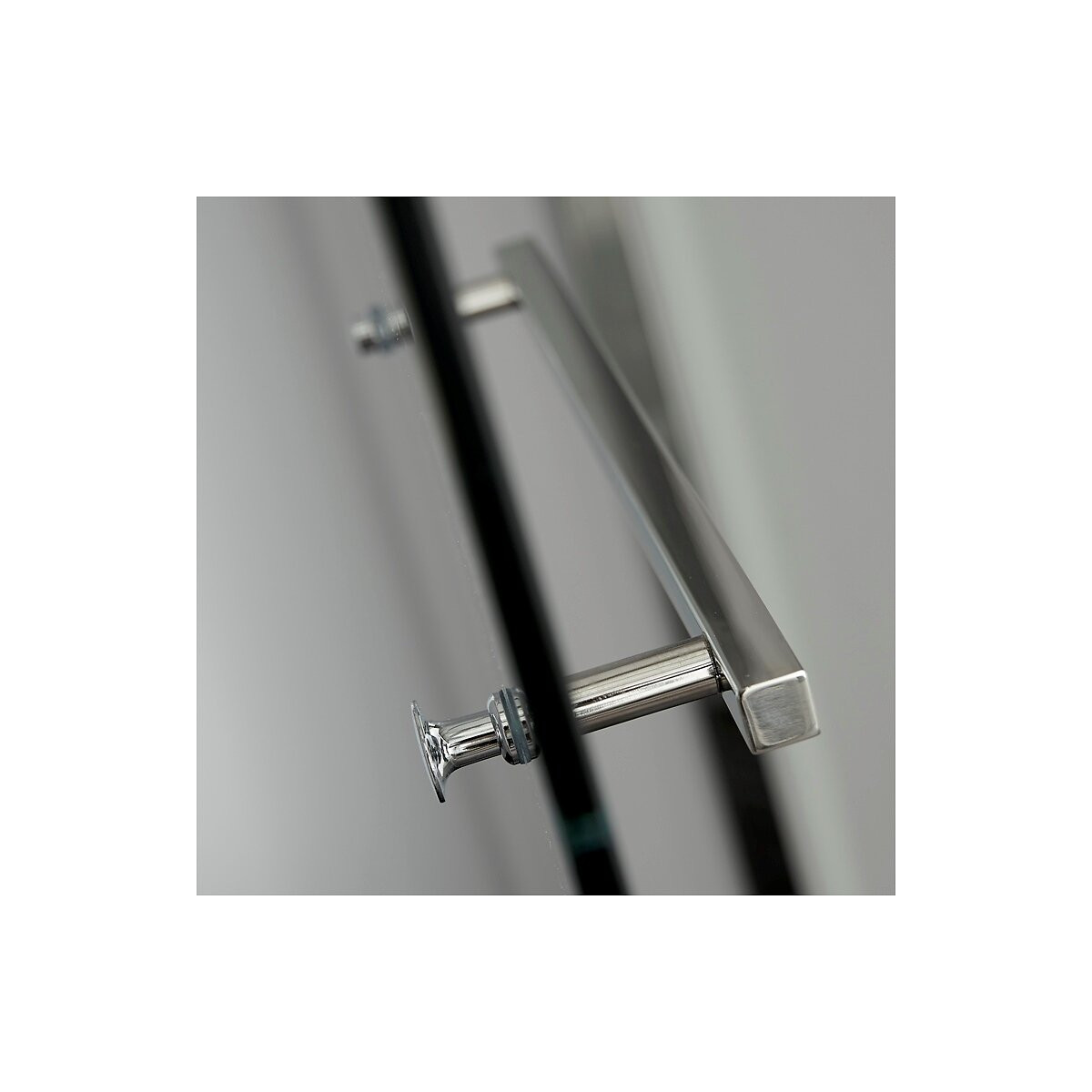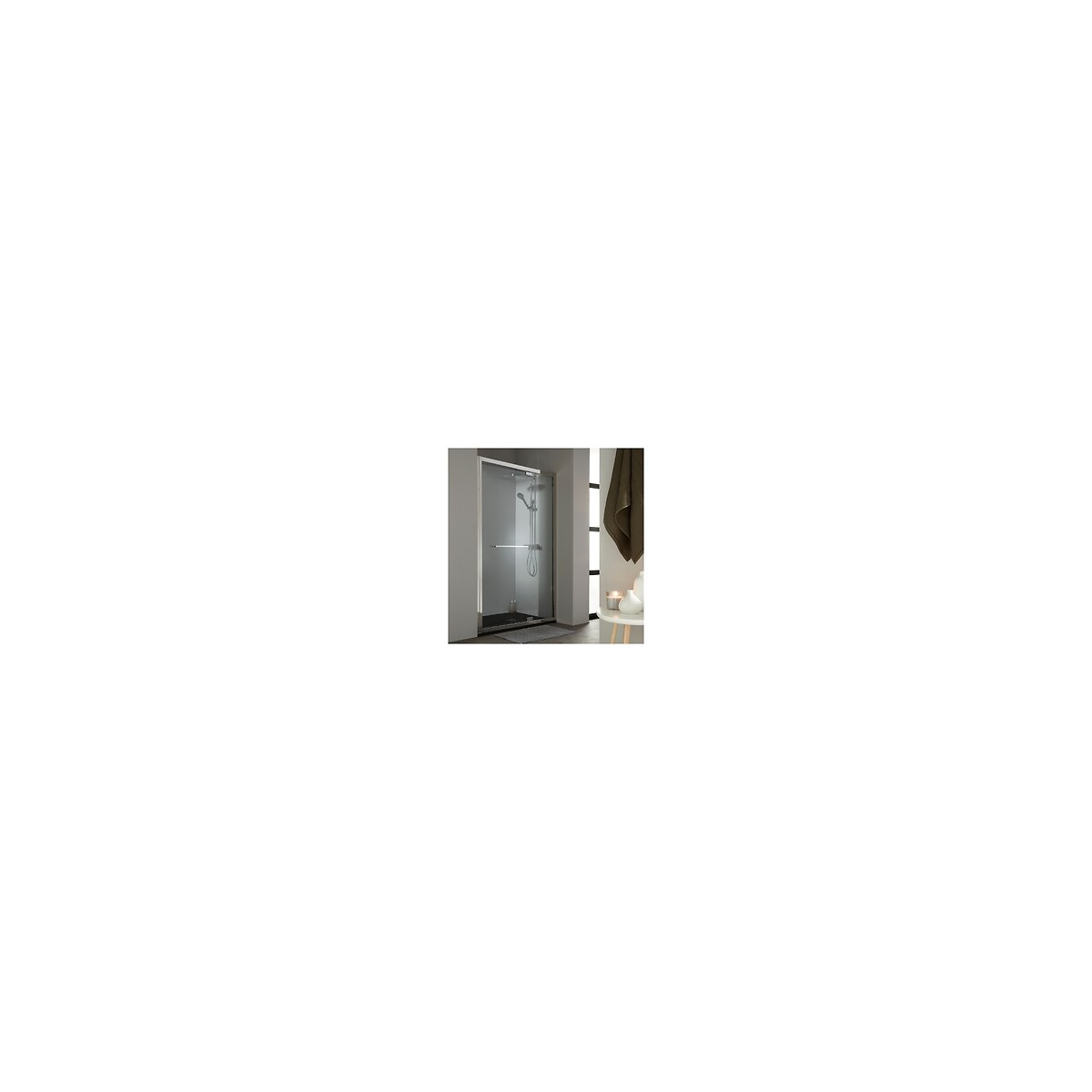 Haut de gamme Porte de douche pivotante de 120 cm Verre securit de 10 mm transparent anticalcaire Profil en inox chromé Les charnières sont en métal finition chromée La poignée fait office de porte serviette La porte est réversible, c'est-à-dire que vous pouvez choisir son sens d'ouverture Dimensions : L 120 x H 195 cm