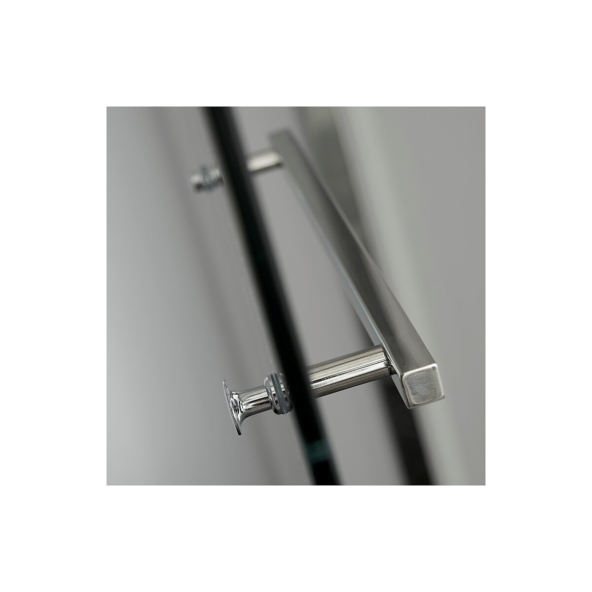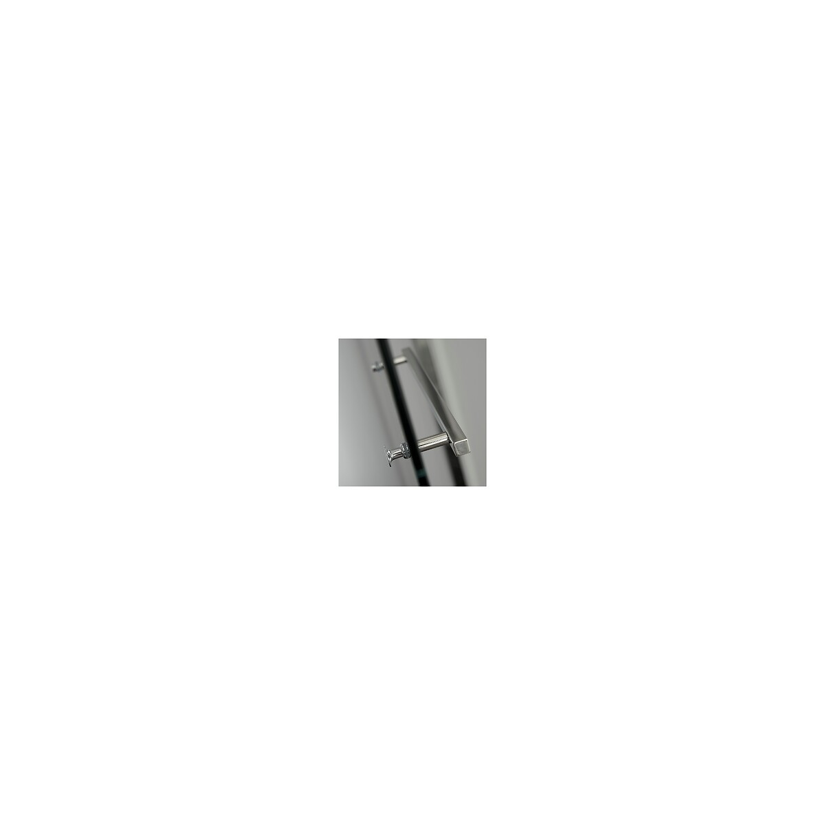 Porte de douche pivotante de 90 x 195 cm Verre securit de 10 mm transparent traité anticalcaire Profil en inox chromé Les charnières sont en métal finition chromée La poignée fait office de porte serviette La porte est réversible, c'est-à-dire que vous pouvez choisir son sens d'ouverture Dimensions : L 90 x H 195 cm
