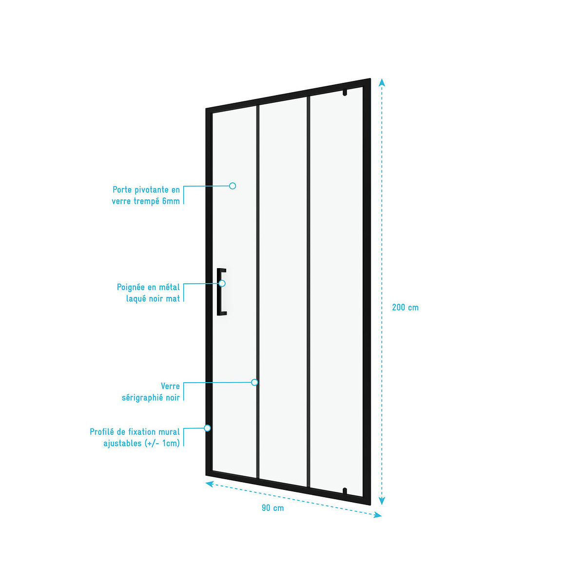 Caractéristiques techniques porte de douche pivotante Structure en aluminium laqué noir mat Profilés de fixation murale ajustables (+/-1cm) Porte pivotante en verre trempé 6mm Poignée en métal laquée noir mat Sérigraphie type industriel ligne verticale noir mat Fermeture magnétique Montage réversible Dimension: 200x90 cm Réference du produit: FAC596 Désignation du produit: CRUSHX Garantie 2 ans pièces et non main d'oeuvre. Profilé noir mat thermolaqué : Le thermolaquage est une technique de traitement spécifique réservé aux matériaux en métal ou en aluminium brut. On projette de la peinture en poudre chargée en électricité statique qui va se déposer sur toute la surface des profilés. Cette technique de pulvérisation en poudre , qui s’appelle projection électrostatique ou poudrage électrostatique, permet d'avoir un revêtement complètement uniforme sur tous les profilés. Ce type de traitement dispense l’utilisation de produits chimiques nocifs pour la santé et l’environnement comme les solvants. Après avoir été recouverte de poudre, la pièce doit passer dans un four où elle sera chauffée pendant 20 minutes à 200°C. Les avantages du thermolaquage : Cette technique possède de nombreux avantage, qui sont La surface peinte possède une dureté supérieure ce qui a pour conséquence une résistance aux chocs accrue Le thermolaquage a une meilleure résistance à la corrosion La couleur des profilés thermolaqués résiste mieux au vieillisement et tout autres élément tel que l'humidité etc. Les profilés thermolaqués présentent une meilleure finition, fini les coulures de peinture et défauts d'aspect, avec cette technique la surface est uniforme Sans solvant c'est un véritable plus pour la santé Mais aussi plus écologique (pas de solvants) Dans un souci de qualité mais aussi de sécurité nos produits répondent à toutes les normes Européennes en vigeur. Que ce soit en terme de sécurité en cas de casse, d'entretien de nos produits ou de la durée de vie de ces derniers, nos produits remplissent tous les critères. Verre trempé : Le verre trempé est un verre qui a subi un traitement afin d’améliorer ses propriétés. Nous utilisons la trempe thermique qui consiste à porter le verre à très haute température (environ à 700 °C), puis de le refroidir rapidement. Ce processus favorise l'apparition de tensions en profondeur et celle de la compression à la surface du verre. Tout cela a pour effet l’amélioration de sa résistance aux chocs. Il est de 2 à 5 fois plus résistant que le verre simple. Mais aussi diminue grandement la dangerosité du verre car en cas de casse le verre explose en de petits morceaux et non pas en de grands pans tranchants. Pour le reste il conserve les mêmes propriétés que le verre classique Norme harmonisée : EN14428:2004 Certification Européenne: Aptitude au nettoyage : EN14428 :2004+A1:2008 Clause 4.2 Résistance à l’impact / Propriétés d’éclatement: EN14428:2004+A1:2008 Clause 4.3 Durabilité : EN14428:2004+A1:2008 Clause 4.4 MyShowerRoom c’est aussi la garantie de durabilité : Nous garantissons un stocks de pièces détachées d’au moins 5 ans Notre visserie est en acier inoxydable ce qui est une garantie anticorrosion Garantie 2 ans pièces uniquement Cocorico ! MyShowerRoom est une entreprise Française et toute la conception de nos produits est également Française. Ce qui est un véritable plus pour être au plus près de ses clients et avoir une meilleure connaissance de leurs attentes. Qui sommes nous L’HISTOIRE DE MYSHOWERROOM Nous avons créé MyShowerRoom en 2003 avec l’ambition de démocratiser le design et l’innovation dans la salle de bain pour faire de cette pièce un lieu à part entière, un véritable lieu d’histoires à vivre pour toute la famille. Nos cabines de douche et meubles de salle de bain dans l’ère du temps à des tarifs très accessibles. Nos nombreux brevets garantissent l’originalité de notre gamme de cabines de douches. Et nos ingénieurs mettent en œuvre tout leur savoir-faire et toutes les technologies innovantes au service d’une simplicité d’installation et d’utilisation incomparable pour tous. ÊTRE BIENVEILLANT AVEC NOS CLIENTS Notre service client a un objectif : rendre nos clients heureux. Pour cela nous veillons à répondre dans les 24h aux demandes clients. Mais aussi de toujours apporter une solution et entière satisfaction à nos clients. CONSTRUIRE DES PRODUITS TOUJOURS PLUS PERFORMANTS Nos ingénieurs, ainsi que nos équipes terrain consacrent tous leurs efforts à créer des produits adaptés à vos besoins, et toujours plus innovants grâce à nos technologies. Notre objectif est d’être votre unique interlocuteur pour tous vos projets de salle de bain. CONCRÉTISER LES RÊVES DE CHACUN Un projet de salle de bain ? Nous le réalisons ! Lieu de détente et de relaxation par excellence, la salle de bain est une des pièces maîtresse de la maison. Chez MyShowerRoom, nous mettons tout en oeuvre afin que ce rêve devienne réalité. PROPOSER UNE GAMME COMPLÈTE DE PRODUITS Nous vous proposons grâce à notre boutique en ligne une gamme complète de produits Made in MyShowerRoom pour équiper, et accessoiriser votre salle de bain. Un catalogue que nous renouvelons régulièrement avec les dernières technologies MyShowerRoom. APPORTER UNE EXPERTISE HUMAINE Parce que l’humain passe avant tout, nous travaillons avec les meilleurs experts. La satisfaction de nos clients est notre seule et unique priorité. Chaque problème a une solution, et c’est dans cette optique que nous avons mis en place un chat pour échanger directement avec nos équipes. NOTRE CENTRE LOGISTIQUE 11 000 m² d’entrepôt 7000 palettes en stock 1 800 colis traités par jour Plus de 260 préparations de commandes quotidiennes 12 quais de chargement/déchargement CONSEILS & VENTES Une équipe disponible 5 jours sur 7 pour vous accompagner d