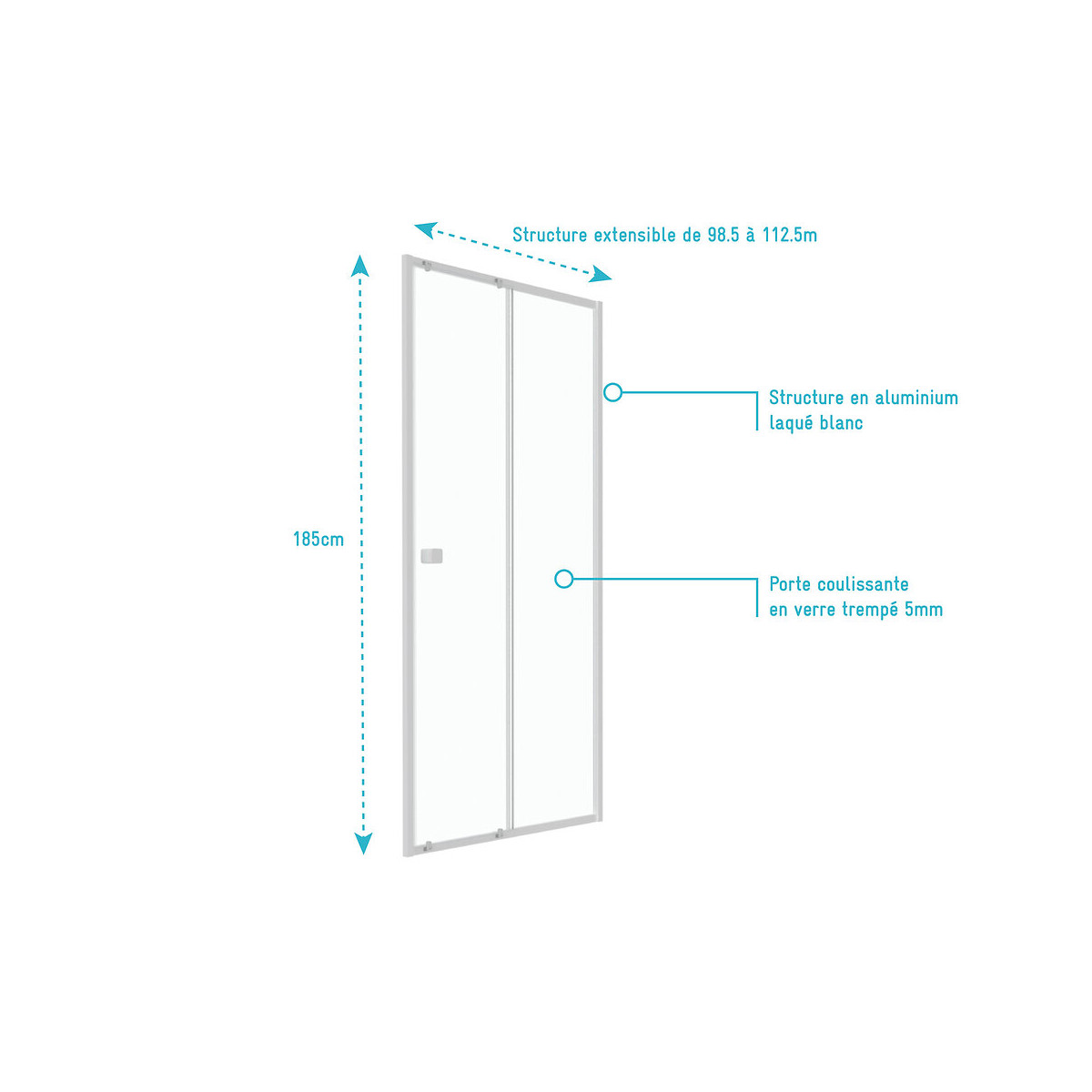 Porte de douche coulissante SLIDING 100 Caractéristiques des portes de douche : Verre trempé 5mm transparent Poignées doubles carrées blanches Structure en aluminium laqué blanc Système de fermeture magnétique 14 cm de largeur réglable ajustable 98.5 à 112.5 sur la largeur Dimensions 100X185 cm Plus produit : Profilés ajustables pour s'adapter à un maximum de surface La simplicité oui mais avec style Référence : FAC493 Désignation produit : WHITY slide 100 Garantie 2 ans pièces et non main d'oeuvre. Verre trempé : Le verre trempé est un verre qui a subi un traitement afin d’améliorer ses propriétés. Nous utilisons la trempe thermique qui consiste à porter le verre à très haute température (environ à 700 °C), puis de le refroidir rapidement. Ce processus favorise l'apparition de tensions en profondeur et celle de la compression à la surface du verre. Tout cela a pour effet l’amélioration de sa résistance aux chocs. Il est de 2 à 5 fois plus résistant que le verre simple. Mais aussi diminue grandement la dangerosité du verre car en cas de casse le verre explose en de petits morceaux et non pas en de grands pans tranchants. Pour le reste il conserve les mêmes propriétés que le verre classique Norme harmonisée : EN14428:2004 Certification Européenne: Aptitude au nettoyage : EN14428 :2004+A1:2008 Clause 4.2 Résistance à l’impact / Propriétés d’éclatement: EN14428:2004+A1:2008 Clause 4.3 Durabilité : EN14428:2004+A1:2008 Clause 4.4 MyShowerRoom c’est aussi la garantie de durabilité : Nous garantissons un stocks de pièces détachées d’au moins 5 ans Notre visserie est en acier inoxydable ce qui est une garantie anticorrosion Garantie 2 ans pièces uniquement Cocorico ! MyShowerRoom est une entreprise Française et toute la conception de nos produits est également Française. Ce qui est un véritable plus pour être au plus près de ses clients et avoir une meilleure connaissance de leurs attentes. Qui sommes nous L’HISTOIRE DE MYSHOWERROOM Nous avons créé MyShowerRoom en 2003 avec l’ambition de démocratiser le design et l’innovation dans la salle de bain pour faire de cette pièce un lieu à part entière, un véritable lieu d’histoires à vivre pour toute la famille. Nos cabines de douche et meubles de salle de bain dans l’ère du temps à des tarifs très accessibles. Nos nombreux brevets garantissent l’originalité de notre gamme de cabines de douches. Et nos ingénieurs mettent en œuvre tout leur savoir-faire et toutes les technologies innovantes au service d’une simplicité d’installation et d’utilisation incomparable pour tous. ÊTRE BIENVEILLANT AVEC NOS CLIENTS Notre service client a un objectif : rendre nos clients heureux. Pour cela nous veillons à répondre dans les 24h aux demandes clients. Mais aussi de toujours apporter une solution et entière satisfaction à nos clients. CONSTRUIRE DES PRODUITS TOUJOURS PLUS PERFORMANTS Nos ingénieurs, ainsi que nos équipes terrain consacrent tous leurs efforts à créer des produits adaptés à vos besoins, et toujours plus innovants grâce à nos technologies. Notre objectif est d’être votre unique interlocuteur pour tous vos projets de salle de bain. CONCRÉTISER LES RÊVES DE CHACUN Un projet de salle de bain ? Nous le réalisons ! Lieu de détente et de relaxation par excellence, la salle de bain est une des pièces maîtresse de la maison. Chez MyShowerRoom, nous mettons tout en oeuvre afin que ce rêve devienne réalité. PROPOSER UNE GAMME COMPLÈTE DE PRODUITS Nous vous proposons grâce à notre boutique en ligne une gamme complète de produits Made in MyShowerRoom pour équiper, et accessoiriser votre salle de bain. Un catalogue que nous renouvelons régulièrement avec les dernières technologies MyShowerRoom. APPORTER UNE EXPERTISE HUMAINE Parce que l’humain passe avant tout, nous travaillons avec les meilleurs experts. La satisfaction de nos clients est notre seule et unique priorité. Chaque problème a une solution, et c’est dans cette optique que nous avons mis en place un chat pour échanger directement avec nos équipes. NOTRE CENTRE LOGISTIQUE 11 000 m² d’entrepôt 7000 palettes en stock 1 800 colis traités par jour Plus de 260 préparations de commandes quotidiennes 12 quais de chargement/déchargement CONSEILS & VENTES Une équipe disponible 5 jours sur 7 pour vous accompagner dans vos achats. LIVRAISON GRATUITE Pour toute commande sur le site MyShowerRoom, la livraison est gratuite dans toute la France. UNE GARANTIE DE QUALITÉ Grâce à nos produits brevetés vous bénéficiez de produits uniques. Référence produit: FAC493 Retrouvez plus d'informations produit et des conseils de montage sur le site Aurlane. Remarques importantes: Ces colis sont volumineux, la livraison est effectuée par transporteur spécialisé en bas de chez vous. Les chauffeurs ne sont pas habilités à porter la marchandise, mais uniquement à la décharger. Pas de livraison à l'étage. L'adresse de livraison doit être accessible en camion poids lourd. Dans le cas contraire la marchandise sera mise à disposition au dépôt le plus proche (distance non garantie). Les rendez-vous sont gérés directement par les transporteurs. Attention à bien contrôler la marchandise à réception pour éviter tous litiges.