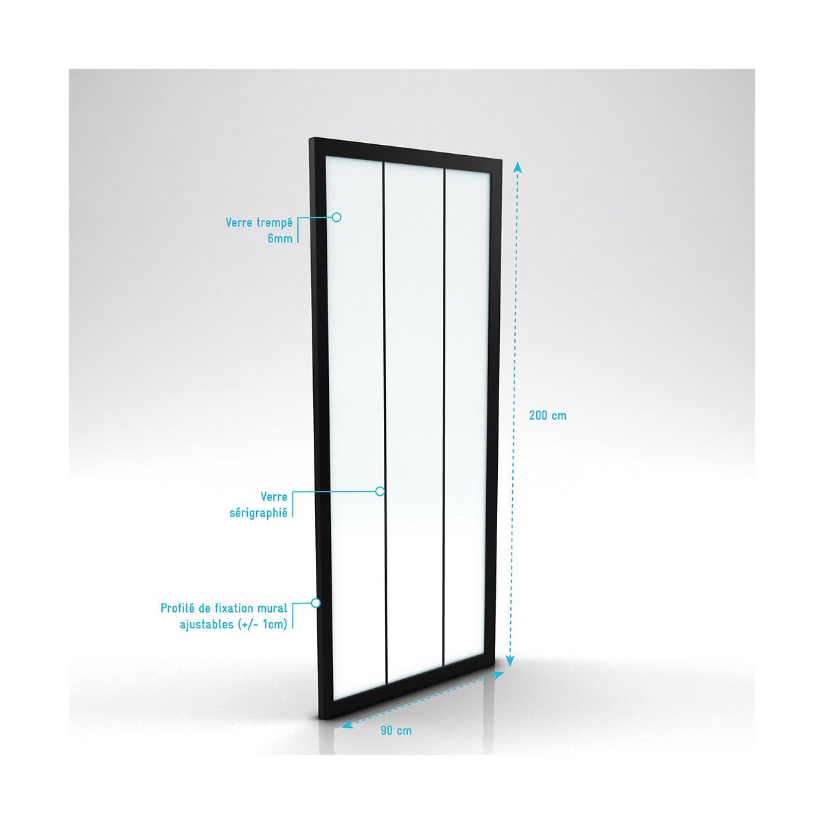 Il s'agit d'une paroi retour qui ne peut être montée seule, elle doit être ajouter à une porte de douche de la gamme CRUSHX Caractéristiques techniques Verre trempé 6mm Verre sérigraphié Profilé de fixation ajustable (+/-1 cm) Dimension: 90x200 cm Il s'agit d'une paroi retour qui ne peut être montée seule, elle doit être ajouter à une porte de douche de la gamme CRUSHX Garantie 2 ans pièces uniquement Profilé noir mat thermolaqué : Le thermolaquage est une technique de traitement spécifique réservé aux matériaux en métal ou en aluminium brut. On projette de la peinture en poudre chargée en électricité statique qui va se déposer sur toute la surface des profilés. Cette technique de pulvérisation en poudre , qui s’appelle projection électrostatique ou poudrage électrostatique, permet d'avoir un revêtement complètement uniforme sur tous les profilés. Ce type de traitement dispense l’utilisation de produits chimiques nocifs pour la santé et l’environnement comme les solvants. Après avoir été recouverte de poudre, la pièce doit passer dans un four où elle sera chauffée pendant 20 minutes à 200°C. Les avantages du thermolaquage : Cette technique possède de nombreux avantage, qui sont La surface peinte possède une dureté supérieure ce qui a pour conséquence une résistance aux chocs accrue Le thermolaquage a une meilleure résistance à la corrosion La couleur des profilés thermolaqués résiste mieux au vieillisement et tout autres élément tel que l'humidité etc. Les profilés thermolaqués présentent une meilleure finition, fini les coulures de peinture et défauts d'aspect, avec cette technique la surface est uniforme Sans solvant c'est un véritable plus pour la santé Mais aussi plus écologique (pas de solvants) Dans un souci de qualité mais aussi de sécurité nos produits répondent à toutes les normes Européennes en vigeur. Que ce soit en terme de sécurité en cas de casse, d'entretien de nos produits ou de la durée de vie de ces derniers, nos produits remplissent tous les critères. Verre trempé : Le verre trempé est un verre qui a subi un traitement afin d’améliorer ses propriétés. Nous utilisons la trempe thermique qui consiste à porter le verre à très haute température (environ à 700 °C), puis de le refroidir rapidement. Ce processus favorise l'apparition de tensions en profondeur et celle de la compression à la surface du verre. Tout cela a pour effet l’amélioration de sa résistance aux chocs. Il est de 2 à 5 fois plus résistant que le verre simple. Mais aussi diminue grandement la dangerosité du verre car en cas de casse le verre explose en de petits morceaux et non pas en de grands pans tranchants. Pour le reste il conserve les mêmes propriétés que le verre classique Norme harmonisée : EN14428:2004 Certification Européenne: Aptitude au nettoyage : EN14428 :2004+A1:2008 Clause 4.2 Résistance à l’impact / Propriétés d’éclatement: EN14428:2004+A1:2008 Clause 4.3 Durabilité : EN14428:2004+A1:2008 Clause 4.4 MyShowerRoom c’est aussi la garantie de durabilité : Nous garantissons un stock de pièces détachées d’au moins 5 ans Notre visserie est en acier inoxydable ce qui est une garantie anticorrosion Garantie 2 ans pièces uniquement Cocorico ! MyShowerRoom est une entreprise Française et toute la conception de nos produits est également Française. Ce qui est un véritable plus pour être au plus près de ses clients et avoir une meilleure connaissance de leurs attentes. Qui sommes nous L’HISTOIRE DE MYSHOWERROOM Nous avons créé MyShowerRoom en 2003 avec l’ambition de démocratiser le design et l’innovation dans la salle de bain pour faire de cette pièce un lieu à part entière, un véritable lieu d’histoires à vivre pour toute la famille. Nos cabines de douche et meubles de salle de bain dans l’ère du temps à des tarifs très accessibles. Nos nombreux brevets garantissent l’originalité de notre gamme de cabines de douches. Et nos ingénieurs mettent en œuvre tout leur savoir-faire et toutes les technologies innovantes au service d’une simplicité d’installation et d’utilisation incomparable pour tous. ÊTRE BIENVEILLANT AVEC NOS CLIENTS Notre service client a un objectif : rendre nos clients heureux. Pour cela nous veillons à répondre dans les 24h aux demandes clients. Mais aussi de toujours apporter une solution et entière satisfaction à nos clients. CONSTRUIRE DES PRODUITS TOUJOURS PLUS PERFORMANTS Nos ingénieurs, ainsi que nos équipes terrain consacrent tous leurs efforts à créer des produits adaptés à vos besoins, et toujours plus innovants grâce à nos technologies. Notre objectif est d’être votre unique interlocuteur pour tous vos projets de salle de bain. CONCRÉTISER LES RÊVES DE CHACUN Un projet de salle de bain ? Nous le réalisons ! Lieu de détente et de relaxation par excellence, la salle de bain est une des pièces maîtresse de la maison. Chez MyShowerRoom, nous mettons tout en oeuvre afin que ce rêve devienne réalité. PROPOSER UNE GAMME COMPLÈTE DE PRODUITS Nous vous proposons grâce à notre boutique en ligne une gamme complète de produits Made in MyShowerRoom pour équiper, et accessoiriser votre salle de bain. Un catalogue que nous renouvelons régulièrement avec les dernières technologies MyShowerRoom. APPORTER UNE EXPERTISE HUMAINE Parce que l’humain passe avant tout, nous travaillons avec les meilleurs experts. La satisfaction de nos clients est notre seule et unique priorité. Chaque problème a une solution, et c’est dans cette optique que nous avons mis en place un chat pour échanger directement avec nos équipes. NOTRE CENTRE LOGISTIQUE 11 000 m² d’entrepôt 7000 palettes en stock 1 800 colis traités par jour Plus de 260 préparations de commandes quotidiennes 12 quais de chargement/déchargement CONSEILS & VENTES Une équipe disponible 5 jours sur 7 pour vous accompagner dans vos achats. LIVRAI