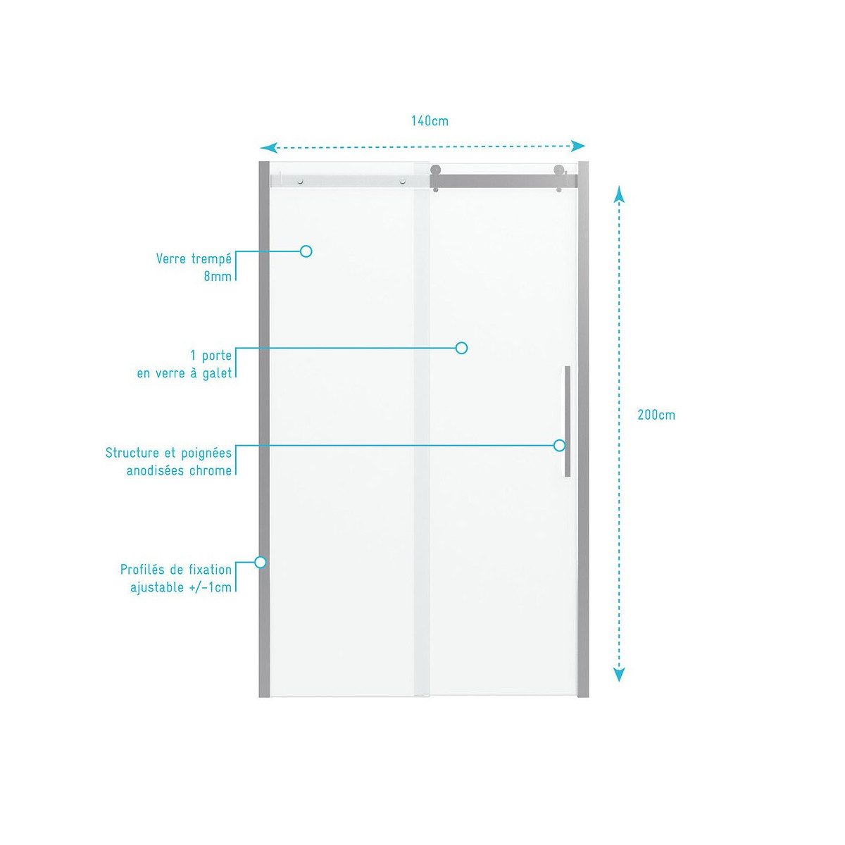 Caractéristiques Paroi de douche type industriel 1 porte coulissante en verre trempé 8mm transparent Roulement à galet chrome Profilés de fixation murale ajustables de -2cm chrome Verre trempé 8mm transparent Poignée en aluminium laquée chrome Sens d'ouverture réversible Fermeture ‘‘soft close’’ Dimensions 140x200cm Plus produit : Fermeture progressive (Soft close) fini les portes qui claquent ! Verre 8mm Systeme de roulement type industriel design Désignation : ROLLING CHROMED 140 Référence: FAC614 Garantie 2 ans pièces et non main d'oeuvre. Verre trempé : Le verre trempé est un verre qui a subi un traitement afin d’améliorer ses propriétés. Nous utilisons la trempe thermique qui consiste à porter le verre à très haute température (environ à 700 °C), puis de le refroidir rapidement. Ce processus favorise l'apparition de tensions en profondeur et celle de la compression à la surface du verre. Tout cela a pour effet l’amélioration de sa résistance aux chocs. Il est de 2 à 5 fois plus résistant que le verre simple. Mais aussi diminue grandement la dangerosité du verre car en cas de casse le verre explose en de petits morceaux et non pas en de grands pans tranchants. Pour le reste il conserve les mêmes propriétés que le verre classique Norme harmonisée : EN14428:2004 Certification Européenne: Aptitude au nettoyage : EN14428 :2004+A1:2008 Clause 4.2 Résistance à l’impact / Propriétés d’éclatement: EN14428:2004+A1:2008 Clause 4.3 Durabilité : EN14428:2004+A1:2008 Clause 4.4 MyShowerRoom c’est aussi la garantie de durabilité : Nous garantissons un stocks de pièces détachées d’au moins 5 ans Notre visserie est en acier inoxydable ce qui est une garantie anticorrosion Garantie 2 ans pièces uniquement Cocorico ! MyShowerRoom est une entreprise Française et toute la conception de nos produits est également Française. Ce qui est un véritable plus pour être au plus près de ses clients et avoir une meilleure connaissance de leurs attentes. Qui sommes nous L’HISTOIRE DE MYSHOWERROOM Nous avons créé MyShowerRoom en 2003 avec l’ambition de démocratiser le design et l’innovation dans la salle de bain pour faire de cette pièce un lieu à part entière, un véritable lieu d’histoires à vivre pour toute la famille. Nos cabines de douche et meubles de salle de bain dans l’ère du temps à des tarifs très accessibles. Nos nombreux brevets garantissent l’originalité de notre gamme de cabines de douches. Et nos ingénieurs mettent en œuvre tout leur savoir-faire et toutes les technologies innovantes au service d’une simplicité d’installation et d’utilisation incomparable pour tous. ÊTRE BIENVEILLANT AVEC NOS CLIENTS Notre service client a un objectif : rendre nos clients heureux. Pour cela nous veillons à répondre dans les 24h aux demandes clients. Mais aussi de toujours apporter une solution et entière satisfaction à nos clients. CONSTRUIRE DES PRODUITS TOUJOURS PLUS PERFORMANTS Nos ingénieurs, ainsi que nos équipes terrain consacrent tous leurs efforts à créer des produits adaptés à vos besoins, et toujours plus innovants grâce à nos technologies. Notre objectif est d’être votre unique interlocuteur pour tous vos projets de salle de bain. CONCRÉTISER LES RÊVES DE CHACUN Un projet de salle de bain ? Nous le réalisons ! Lieu de détente et de relaxation par excellence, la salle de bain est une des pièces maîtresse de la maison. Chez MyShowerRoom, nous mettons tout en oeuvre afin que ce rêve devienne réalité. PROPOSER UNE GAMME COMPLÈTE DE PRODUITS Nous vous proposons grâce à notre boutique en ligne une gamme complète de produits Made in MyShowerRoom pour équiper, et accessoiriser votre salle de bain. Un catalogue que nous renouvelons régulièrement avec les dernières technologies MyShowerRoom. APPORTER UNE EXPERTISE HUMAINE Parce que l’humain passe avant tout, nous travaillons avec les meilleurs experts. La satisfaction de nos clients est notre seule et unique priorité. Chaque problème a une solution, et c’est dans cette optique que nous avons mis en place un chat pour échanger directement avec nos équipes. NOTRE CENTRE LOGISTIQUE 11 000 m² d’entrepôt 7000 palettes en stock 1 800 colis traités par jour Plus de 260 préparations de commandes quotidiennes 12 quais de chargement/déchargement CONSEILS & VENTES Une équipe disponible 5 jours sur 7 pour vous accompagner dans vos achats. LIVRAISON GRATUITE Pour toute commande sur le site MyShowerRoom, la livraison est gratuite dans toute la France. UNE GARANTIE DE QUALITÉ Grâce à nos produits brevetés vous bénéficiez de produits uniques. Référence produit: FAC614 Retrouvez plus d'informations produit et des conseils de montage sur le site Aurlane. Remarques importantes: Ces colis sont volumineux, la livraison est effectuée par transporteur spécialisé en bas de chez vous. Les chauffeurs ne sont pas habilités à porter la marchandise, mais uniquement à la décharger. Pas de livraison à l'étage. L'adresse de livraison doit être accessible en camion poids lourd. Dans le cas contraire la marchandise sera mise à disposition au dépôt le plus proche (distance non garantie). Les rendez-vous sont gérés directement par les transporteurs. Attention à bien contrôler la marchandise à réception pour éviter tous litiges.