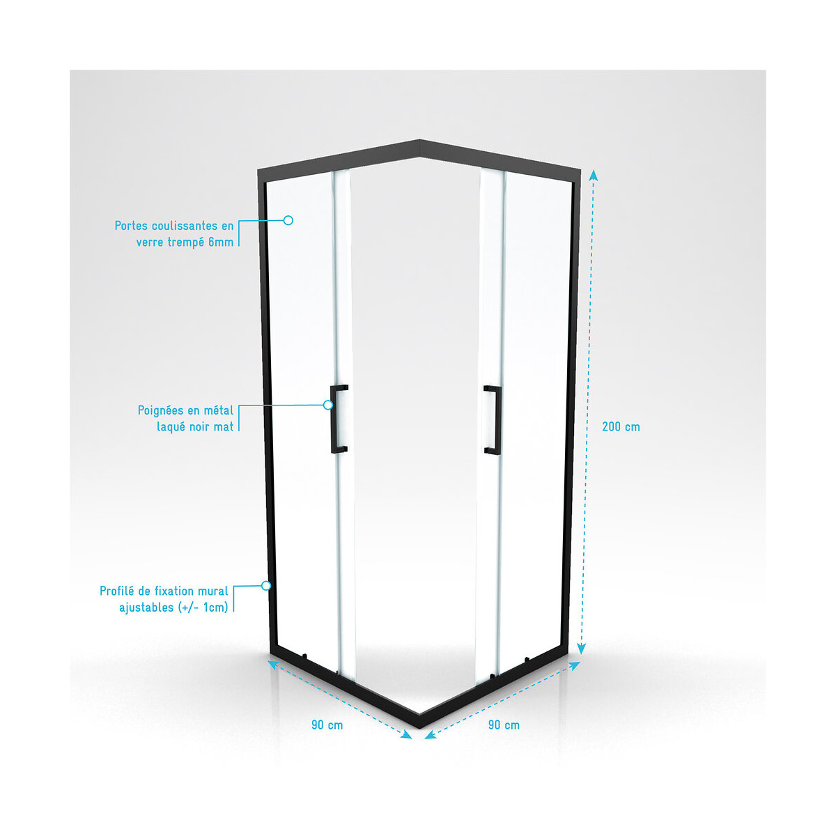 Caractéristiques Structure en aluminium laqué noir mat Profilés de fixation murale ajustables (+ / - 1 cm) Portes coulissantes en verre trempé 6 mm Poignées en métal laquées noir mat Fermeture magnétique Dimensions 90x90x200 cm PLUS PRODUIT: Très tendance, Aurlane propose toute une gamme de parois de douche aux finitions noir mat. La porte retour CRUSH en verre trempé de 6mm s'adaptera à tous les styles de salle de bain. Désignation produit : CRUSH SQUARE 90 Profilé noir mat thermolaqué : Le thermolaquage est une technique de traitement spécifique réservé aux matériaux en métal ou en aluminium brut. On projette de la peinture en poudre chargée en électricité statique qui va se déposer sur toute la surface des profilés. Cette technique de pulvérisation en poudre , qui s’appelle projection électrostatique ou poudrage électrostatique, permet d'avoir un revêtement complètement uniforme sur tous les profilés. Ce type de traitement dispense l’utilisation de produits chimiques nocifs pour la santé et l’environnement comme les solvants. Après avoir été recouverte de poudre, la pièce doit passer dans un four où elle sera chauffée pendant 20 minutes à 200°C. Les avantages du thermolaquage : Cette technique possède de nombreux avantage, qui sont La surface peinte possède une dureté supérieure ce qui a pour conséquence une résistance aux chocs accrue Le thermolaquage a une meilleure résistance à la corrosion La couleur des profilés thermolaqués résiste mieux au vieillissement et tout autres élément tel que l'humidité etc. Les profilés thermolaqués présentent une meilleure finition, fini les coulures de peinture et défauts d'aspect, avec cette technique la surface est uniforme Sans solvant c'est un véritable plus pour la santé Mais aussi plus écologique (pas de solvants) Dans un souci de qualité mais aussi de sécurité nos produits répondent à toutes les normes Européennes en vigueur. Que ce soit en terme de sécurité en cas de casse, d'entretien de nos produits ou de la durée de vie de ces derniers, nos produits remplissent tous les critères. Verre trempé : Le verre trempé est un verre qui a subi un traitement afin d’améliorer ses propriétés. Nous utilisons la trempe thermique qui consiste à porter le verre à très haute température (environ à 700 °C), puis de le refroidir rapidement. Ce processus favorise l'apparition de tensions en profondeur et celle de la compression à la surface du verre. Tout cela a pour effet l’amélioration de sa résistance aux chocs. Il est de 2 à 5 fois plus résistant que le verre simple. Mais aussi diminue grandement la dangerosité du verre car en cas de casse le verre explose en de petits morceaux et non pas en de grands pans tranchants. Pour le reste il conserve les mêmes propriétés que le verre classique Norme harmonisée : EN14428:2004 Certification Européenne: Aptitude au nettoyage : EN14428 :2004+A1:2008 Clause 4.2 Résistance à l’impact / Propriétés d’éclatement: EN14428:2004+A1:2008 Clause 4.3 Durabilité : EN14428:2004+A1:2008 Clause 4.4 MyShowerRoom c’est aussi la garantie de durabilité : Nous garantissons un stocks de pièces détachées d’au moins 5 ans Notre visserie est en acier inoxydable ce qui est une garantie anticorrosion Garantie 2 ans pièces uniquement Cocorico ! MyShowerRoom est une entreprise Française et toute la conception de nos produits est également Française. Ce qui est un véritable plus pour être au plus près de ses clients et avoir une meilleure connaissance de leurs attentes. Qui sommes nous L’HISTOIRE DE MYSHOWERROOM Nous avons créé MyShowerRoom en 2003 avec l’ambition de démocratiser le design et l’innovation dans la salle de bain pour faire de cette pièce un lieu à part entière, un véritable lieu d’histoires à vivre pour toute la famille. Nos cabines de douche et meubles de salle de bain dans l’ère du temps à des tarifs très accessibles. Nos nombreux brevets garantissent l’originalité de notre gamme de cabines de douches. Et nos ingénieurs mettent en œuvre tout leur savoir-faire et toutes les technologies innovantes au service d’une simplicité d’installation et d’utilisation incomparable pour tous. ÊTRE BIENVEILLANT AVEC NOS CLIENTS Notre service client a un objectif : rendre nos clients heureux. Pour cela nous veillons à répondre dans les 24h aux demandes clients. Mais aussi de toujours apporter une solution et entière satisfaction à nos clients. CONSTRUIRE DES PRODUITS TOUJOURS PLUS PERFORMANTS Nos ingénieurs, ainsi que nos équipes terrain consacrent tous leurs efforts à créer des produits adaptés à vos besoins, et toujours plus innovants grâce à nos technologies. Notre objectif est d’être votre unique interlocuteur pour tous vos projets de salle de bain. CONCRÉTISER LES RÊVES DE CHACUN Un projet de salle de bain ? Nous le réalisons ! Lieu de détente et de relaxation par excellence, la salle de bain est une des pièces maîtresse de la maison. Chez MyShowerRoom, nous mettons tout en oeuvre afin que ce rêve devienne réalité. PROPOSER UNE GAMME COMPLÈTE DE PRODUITS Nous vous proposons grâce à notre boutique en ligne une gamme complète de produits Made in MyShowerRoom pour équiper, et accessoiriser votre salle de bain. Un catalogue que nous renouvelons régulièrement avec les dernières technologies MyShowerRoom. APPORTER UNE EXPERTISE HUMAINE Parce que l’humain passe avant tout, nous travaillons avec les meilleurs experts. La satisfaction de nos clients est notre seule et unique priorité. Chaque problème a une solution, et c’est dans cette optique que nous avons mis en place un chat pour échanger directement avec nos équipes. NOTRE CENTRE LOGISTIQUE 11 000 m² d’entrepôt 7000 palettes en stock 1 800 colis traités par jour Plus de 260 préparations de commandes quotidiennes 12 quais de chargement/déchargement CONSEILS & VENTES Une équipe disponible 