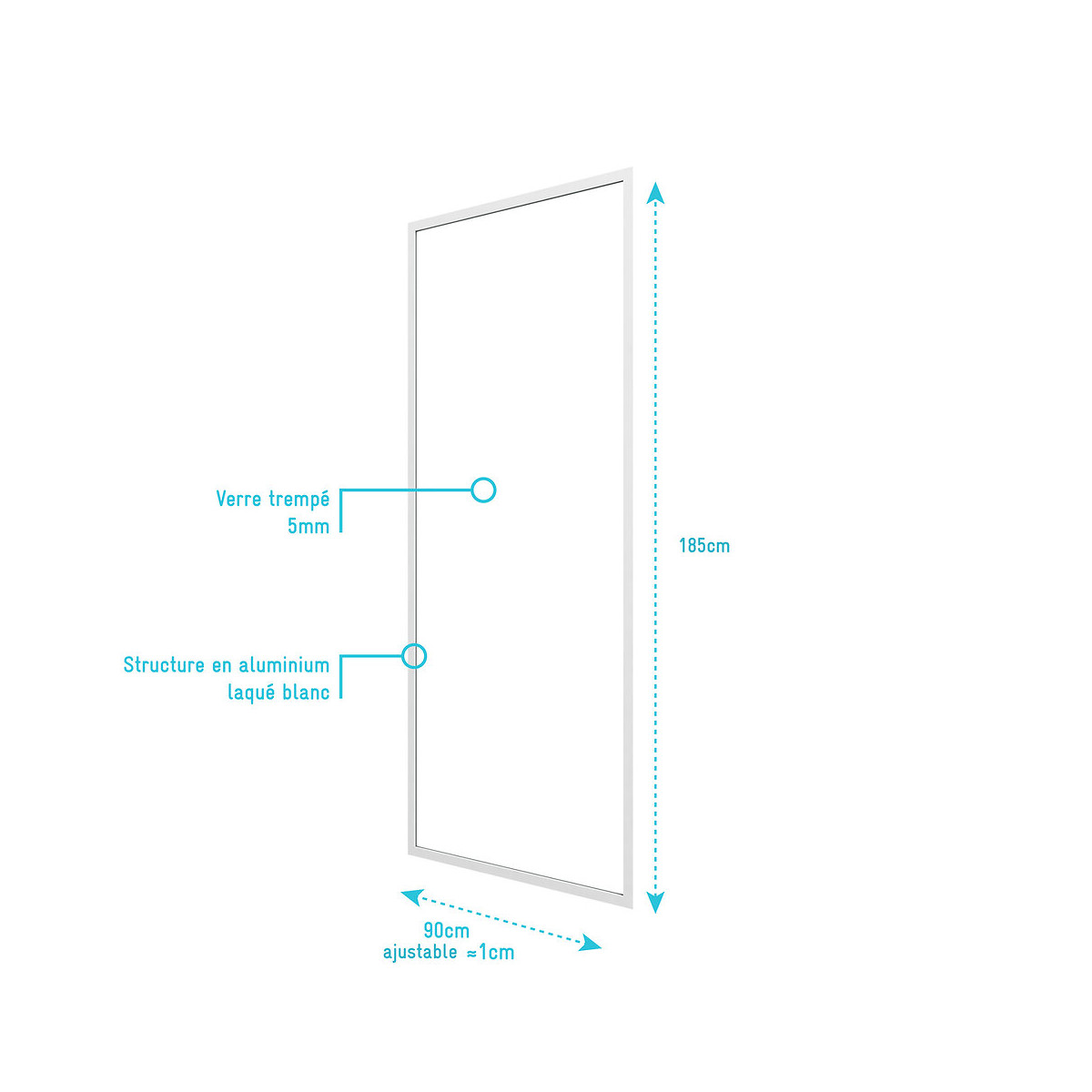 Paroi de retour Paroi porte de douche blanc RETOUR 90x185cm pour porte - verre transparent 5mm - WHITY SIDE 90 Caractéristiques de la paroi de retour: Verre trempé 5mm transparent Structure en aluminium laqué blanc Ajustable +/- 1cm Compatible uniquement avec les portes de la même gamme (pivotantes / coulissantes) Attention paroi de retour vendue seule Ne peut pas être montée seule Dimensions 90X185 cm Référence : FAC495 Désignation produit : WHITY SIDE 90 Garantie 2 ans pièces et non main d'oeuvre. Verre trempé : Le verre trempé est un verre qui a subi un traitement afin d’améliorer ses propriétés. Nous utilisons la trempe thermique qui consiste à porter le verre à très haute température (environ à 700 °C), puis de le refroidir rapidement. Ce processus favorise l'apparition de tensions en profondeur et celle de la compression à la surface du verre. Tout cela a pour effet l’amélioration de sa résistance aux chocs. Il est de 2 à 5 fois plus résistant que le verre simple. Mais aussi diminue grandement la dangerosité du verre car en cas de casse le verre explose en de petits morceaux et non pas en de grands pans tranchants. Pour le reste il conserve les mêmes propriétés que le verre classique Norme harmonisée : EN14428:2004 Certification Européenne: Aptitude au nettoyage : EN14428 :2004+A1:2008 Clause 4.2 Résistance à l’impact / Propriétés d’éclatement: EN14428:2004+A1:2008 Clause 4.3 Durabilité : EN14428:2004+A1:2008 Clause 4.4 MyShowerRoom c’est aussi la garantie de durabilité : Nous garantissons un stocks de pièces détachées d’au moins 5 ans Notre visserie est en acier inoxydable ce qui est une garantie anticorrosion Garantie 2 ans pièces uniquement Cocorico ! MyShowerRoom est une entreprise Française et toute la conception de nos produits est également Française. Ce qui est un véritable plus pour être au plus près de ses clients et avoir une meilleure connaissance de leurs attentes. Qui sommes nous L’HISTOIRE DE MYSHOWERROOM Nous avons créé MyShowerRoom en 2003 avec l’ambition de démocratiser le design et l’innovation dans la salle de bain pour faire de cette pièce un lieu à part entière, un véritable lieu d’histoires à vivre pour toute la famille. Nos cabines de douche et meubles de salle de bain dans l’ère du temps à des tarifs très accessibles. Nos nombreux brevets garantissent l’originalité de notre gamme de cabines de douches. Et nos ingénieurs mettent en œuvre tout leur savoir-faire et toutes les technologies innovantes au service d’une simplicité d’installation et d’utilisation incomparable pour tous. ÊTRE BIENVEILLANT AVEC NOS CLIENTS Notre service client a un objectif : rendre nos clients heureux. Pour cela nous veillons à répondre dans les 24h aux demandes clients. Mais aussi de toujours apporter une solution et entière satisfaction à nos clients. CONSTRUIRE DES PRODUITS TOUJOURS PLUS PERFORMANTS Nos ingénieurs, ainsi que nos équipes terrain consacrent tous leurs efforts à créer des produits adaptés à vos besoins, et toujours plus innovants grâce à nos technologies. Notre objectif est d’être votre unique interlocuteur pour tous vos projets de salle de bain. CONCRÉTISER LES RÊVES DE CHACUN Un projet de salle de bain ? Nous le réalisons ! Lieu de détente et de relaxation par excellence, la salle de bain est une des pièces maîtresse de la maison. Chez MyShowerRoom, nous mettons tout en oeuvre afin que ce rêve devienne réalité. PROPOSER UNE GAMME COMPLÈTE DE PRODUITS Nous vous proposons grâce à notre boutique en ligne une gamme complète de produits Made in MyShowerRoom pour équiper, et accessoiriser votre salle de bain. Un catalogue que nous renouvelons régulièrement avec les dernières technologies MyShowerRoom. APPORTER UNE EXPERTISE HUMAINE Parce que l’humain passe avant tout, nous travaillons avec les meilleurs experts. La satisfaction de nos clients est notre seule et unique priorité. Chaque problème a une solution, et c’est dans cette optique que nous avons mis en place un chat pour échanger directement avec nos équipes. NOTRE CENTRE LOGISTIQUE 11 000 m² d’entrepôt 7000 palettes en stock 1 800 colis traités par jour Plus de 260 préparations de commandes quotidiennes 12 quais de chargement/déchargement CONSEILS & VENTES Une équipe disponible 5 jours sur 7 pour vous accompagner dans vos achats. LIVRAISON GRATUITE Pour toute commande sur le site MyShowerRoom, la livraison est gratuite dans toute la France. UNE GARANTIE DE QUALITÉ Grâce à nos produits brevetés vous bénéficiez de produits uniques. Référence produit: FAC495 Retrouvez plus d'informations produit et des conseils de montage sur le site Aurlane. Remarques importantes: Ces colis sont volumineux, la livraison est effectuée par transporteur spécialisé en bas de chez vous. Les chauffeurs ne sont pas habilités à porter la marchandise, mais uniquement à la décharger. Pas de livraison à l'étage. L'adresse de livraison doit être accessible en camion poids lourd. Dans le cas contraire la marchandise sera mise à disposition au dépôt le plus proche (distance non garantie). Les rendez-vous sont gérés directement par les transporteurs. Attention à bien contrôler la marchandise à réception pour éviter tous litiges.