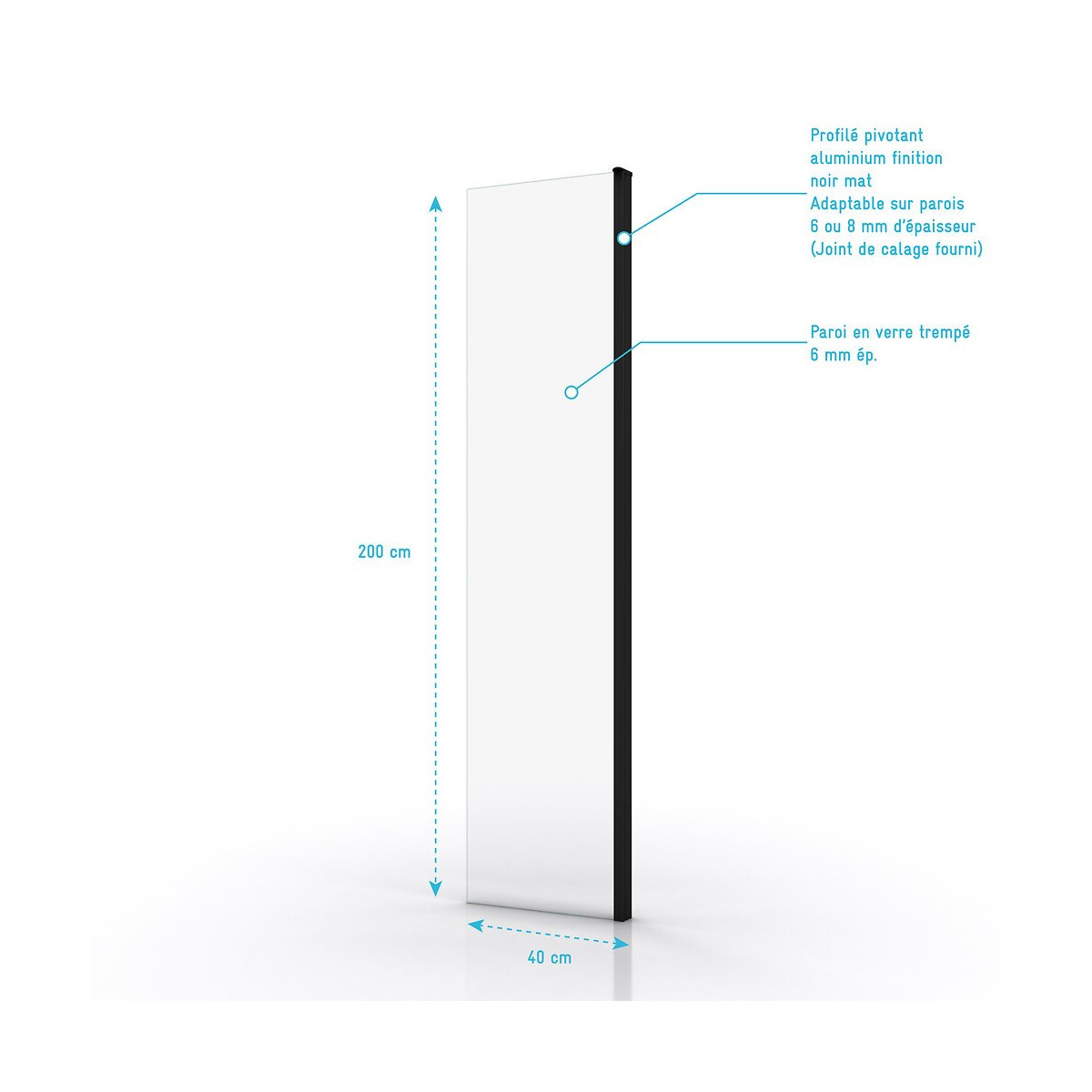 Caractéristiques Verre trempé 6mm transparent Profilé aluminium finition noir mat Adaptable sur parois 6 ou 8mm Joint de calage fourni Installation réversible Dimensions 40x200cm En option: Barre de fixation murale finition noir mat: Barre de fixation murale finition noir mat extensible Barre de fixation murale finition noir mat d'angle Paroi FREEDOM 2 DARK verre transparent de 8mm et profile noir mat Réference du produit: FAC304 Désignation du produit: FREEDOM 2 DARK PIVOT Garantie 2 ans pièces et non main d'oeuvre. Profilé noir mat thermolaqué : Le thermolaquage est une technique de traitement spécifique réservé aux matériaux en métal ou en aluminium brut. On projette de la peinture en poudre chargée en électricité statique qui va se déposer sur toute la surface des profilés. Cette technique de pulvérisation en poudre , qui s’appelle projection électrostatique ou poudrage électrostatique, permet d'avoir un revêtement complètement uniforme sur tous les profilés. Ce type de traitement dispense l’utilisation de produits chimiques nocifs pour la santé et l’environnement comme les solvants. Après avoir été recouverte de poudre, la pièce doit passer dans un four où elle sera chauffée pendant 20 minutes à 200°C. Les avantages du thermolaquage : Cette technique possède de nombreux avantage, qui sont La surface peinte possède une dureté supérieure ce qui a pour conséquence une résistance aux chocs accrue Le thermolaquage a une meilleure résistance à la corrosion La couleur des profilés thermolaqués résiste mieux au vieillisement et tout autres élément tel que l'humidité etc. Les profilés thermolaqués présentent une meilleure finition, fini les coulures de peinture et défauts d'aspect, avec cette technique la surface est uniforme Sans solvant c'est un véritable plus pour la santé Mais aussi plus écologique (pas de solvants) Dans un souci de qualité mais aussi de sécurité nos produits répondent à toutes les normes Européennes en vigeur. Que ce soit en terme de sécurité en cas de casse, d'entretien de nos produits ou de la durée de vie de ces derniers, nos produits remplissent tous les critères. Verre trempé : Le verre trempé est un verre qui a subi un traitement afin d’améliorer ses propriétés. Nous utilisons la trempe thermique qui consiste à porter le verre à très haute température (environ à 700 °C), puis de le refroidir rapidement. Ce processus favorise l'apparition de tensions en profondeur et celle de la compression à la surface du verre. Tout cela a pour effet l’amélioration de sa résistance aux chocs. Il est de 2 à 5 fois plus résistant que le verre simple. Mais aussi diminue grandement la dangerosité du verre car en cas de casse le verre explose en de petits morceaux et non pas en de grands pans tranchants. Pour le reste il conserve les mêmes propriétés que le verre classique Norme harmonisée : EN14428:2004 Certification Européenne: Aptitude au nettoyage : EN14428 :2004+A1:2008 Clause 4.2 Résistance à l’impact / Propriétés d’éclatement: EN14428:2004+A1:2008 Clause 4.3 Durabilité : EN14428:2004+A1:2008 Clause 4.4 MyShowerRoom c’est aussi la garantie de durabilité : Nous garantissons un stocks de pièces détachées d’au moins 5 ans Notre visserie est en acier inoxydable ce qui est une garantie anticorrosion Garantie 2 ans pièces uniquement Cocorico ! MyShowerRoom est une entreprise Française et toute la conception de nos produits est également Française. Ce qui est un véritable plus pour être au plus près de ses clients et avoir une meilleure connaissance de leurs attentes. Qui sommes nous L’HISTOIRE DE MYSHOWERROOM Nous avons créé MyShowerRoom en 2003 avec l’ambition de démocratiser le design et l’innovation dans la salle de bain pour faire de cette pièce un lieu à part entière, un véritable lieu d’histoires à vivre pour toute la famille. Nos cabines de douche et meubles de salle de bain dans l’ère du temps à des tarifs très accessibles. Nos nombreux brevets garantissent l’originalité de notre gamme de cabines de douches. Et nos ingénieurs mettent en œuvre tout leur savoir-faire et toutes les technologies innovantes au service d’une simplicité d’installation et d’utilisation incomparable pour tous. ÊTRE BIENVEILLANT AVEC NOS CLIENTS Notre service client a un objectif : rendre nos clients heureux. Pour cela nous veillons à répondre dans les 24h aux demandes clients. Mais aussi de toujours apporter une solution et entière satisfaction à nos clients. CONSTRUIRE DES PRODUITS TOUJOURS PLUS PERFORMANTS Nos ingénieurs, ainsi que nos équipes terrain consacrent tous leurs efforts à créer des produits adaptés à vos besoins, et toujours plus innovants grâce à nos technologies. Notre objectif est d’être votre unique interlocuteur pour tous vos projets de salle de bain. CONCRÉTISER LES RÊVES DE CHACUN Un projet de salle de bain ? Nous le réalisons ! Lieu de détente et de relaxation par excellence, la salle de bain est une des pièces maîtresse de la maison. Chez MyShowerRoom, nous mettons tout en oeuvre afin que ce rêve devienne réalité. PROPOSER UNE GAMME COMPLÈTE DE PRODUITS Nous vous proposons grâce à notre boutique en ligne une gamme complète de produits Made in MyShowerRoom pour équiper, et accessoiriser votre salle de bain. Un catalogue que nous renouvelons régulièrement avec les dernières technologies MyShowerRoom. APPORTER UNE EXPERTISE HUMAINE Parce que l’humain passe avant tout, nous travaillons avec les meilleurs experts. La satisfaction de nos clients est notre seule et unique priorité. Chaque problème a une solution, et c’est dans cette optique que nous avons mis en place un chat pour échanger directement avec nos équipes. NOTRE CENTRE LOGISTIQUE 11 000 m² d’entrepôt 7000 palettes en stock 1 800 colis traités par jour Plus de 260 préparations de commandes quotidiennes 12 quais de chargement/d