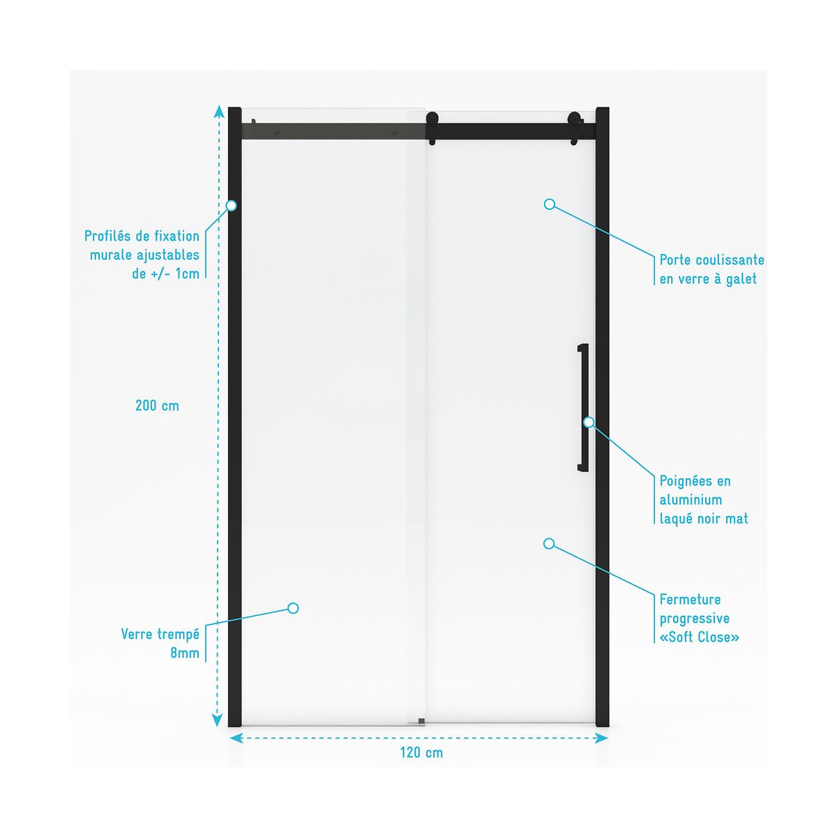 Caractéristiques Paroi de douche type industriel 1 porte coulissante en verre trempé 8mm transparent Roulement à galet noir mat Profilés de fixation murale ajustables de -2cm noir mat Verre trempé 8mm transparent Poignée en aluminium laquée noir mat Sens d'ouverture réversible Fermeture ‘‘soft close’’ Dimensions 120x200cm Plus produit : Fermeture progressive (Soft close) fini les portes qui claquent ! Verre 8mm Systeme de roulement type industriel design Référence: FAC357 Garantie 2 ans pièces et non main d'oeuvre. Profilé noir mat thermolaqué : Le thermolaquage est une technique de traitement spécifique réservé aux matériaux en métal ou en aluminium brut. On projette de la peinture en poudre chargée en électricité statique qui va se déposer sur toute la surface des profilés. Cette technique de pulvérisation en poudre , qui s’appelle projection électrostatique ou poudrage électrostatique, permet d'avoir un revêtement complètement uniforme sur tous les profilés. Ce type de traitement dispense l’utilisation de produits chimiques nocifs pour la santé et l’environnement comme les solvants. Après avoir été recouverte de poudre, la pièce doit passer dans un four où elle sera chauffée pendant 20 minutes à 200°C. Les avantages du thermolaquage : Cette technique possède de nombreux avantage, qui sont La surface peinte possède une dureté supérieure ce qui a pour conséquence une résistance aux chocs accrue Le thermolaquage a une meilleure résistance à la corrosion La couleur des profilés thermolaqués résiste mieux au vieillisement et tout autres élément tel que l'humidité etc. Les profilés thermolaqués présentent une meilleure finition, fini les coulures de peinture et défauts d'aspect, avec cette technique la surface est uniforme Sans solvant c'est un véritable plus pour la santé Mais aussi plus écologique (pas de solvants) Dans un souci de qualité mais aussi de sécurité nos produits répondent à toutes les normes Européennes en vigeur. Que ce soit en terme de sécurité en cas de casse, d'entretien de nos produits ou de la durée de vie de ces derniers, nos produits remplissent tous les critères. Verre trempé : Le verre trempé est un verre qui a subi un traitement afin d’améliorer ses propriétés. Nous utilisons la trempe thermique qui consiste à porter le verre à très haute température (environ à 700 °C), puis de le refroidir rapidement. Ce processus favorise l'apparition de tensions en profondeur et celle de la compression à la surface du verre. Tout cela a pour effet l’amélioration de sa résistance aux chocs. Il est de 2 à 5 fois plus résistant que le verre simple. Mais aussi diminue grandement la dangerosité du verre car en cas de casse le verre explose en de petits morceaux et non pas en de grands pans tranchants. Pour le reste il conserve les mêmes propriétés que le verre classique Norme harmonisée : EN14428:2004 Certification Européenne: Aptitude au nettoyage : EN14428 :2004+A1:2008 Clause 4.2 Résistance à l’impact / Propriétés d’éclatement: EN14428:2004+A1:2008 Clause 4.3 Durabilité : EN14428:2004+A1:2008 Clause 4.4 MyShowerRoom c’est aussi la garantie de durabilité : Nous garantissons un stocks de pièces détachées d’au moins 5 ans Notre visserie est en acier inoxydable ce qui est une garantie anticorrosion Garantie 2 ans pièces uniquement Cocorico ! MyShowerRoom est une entreprise Française et toute la conception de nos produits est également Française. Ce qui est un véritable plus pour être au plus près de ses clients et avoir une meilleure connaissance de leurs attentes. Qui sommes nous L’HISTOIRE DE MYSHOWERROOM Nous avons créé MyShowerRoom en 2003 avec l’ambition de démocratiser le design et l’innovation dans la salle de bain pour faire de cette pièce un lieu à part entière, un véritable lieu d’histoires à vivre pour toute la famille. Nos cabines de douche et meubles de salle de bain dans l’ère du temps à des tarifs très accessibles. Nos nombreux brevets garantissent l’originalité de notre gamme de cabines de douches. Et nos ingénieurs mettent en œuvre tout leur savoir-faire et toutes les technologies innovantes au service d’une simplicité d’installation et d’utilisation incomparable pour tous. ÊTRE BIENVEILLANT AVEC NOS CLIENTS Notre service client a un objectif : rendre nos clients heureux. Pour cela nous veillons à répondre dans les 24h aux demandes clients. Mais aussi de toujours apporter une solution et entière satisfaction à nos clients. CONSTRUIRE DES PRODUITS TOUJOURS PLUS PERFORMANTS Nos ingénieurs, ainsi que nos équipes terrain consacrent tous leurs efforts à créer des produits adaptés à vos besoins, et toujours plus innovants grâce à nos technologies. Notre objectif est d’être votre unique interlocuteur pour tous vos projets de salle de bain. CONCRÉTISER LES RÊVES DE CHACUN Un projet de salle de bain ? Nous le réalisons ! Lieu de détente et de relaxation par excellence, la salle de bain est une des pièces maîtresse de la maison. Chez MyShowerRoom, nous mettons tout en oeuvre afin que ce rêve devienne réalité. PROPOSER UNE GAMME COMPLÈTE DE PRODUITS Nous vous proposons grâce à notre boutique en ligne une gamme complète de produits Made in MyShowerRoom pour équiper, et accessoiriser votre salle de bain. Un catalogue que nous renouvelons régulièrement avec les dernières technologies MyShowerRoom. APPORTER UNE EXPERTISE HUMAINE Parce que l’humain passe avant tout, nous travaillons avec les meilleurs experts. La satisfaction de nos clients est notre seule et unique priorité. Chaque problème a une solution, et c’est dans cette optique que nous avons mis en place un chat pour échanger directement avec nos équipes. NOTRE CENTRE LOGISTIQUE 11 000 m² d’entrepôt 7000 palettes en stock 1 800 colis traités par jour Plus de 260 préparations de commandes quotidiennes 12 quais de cha
