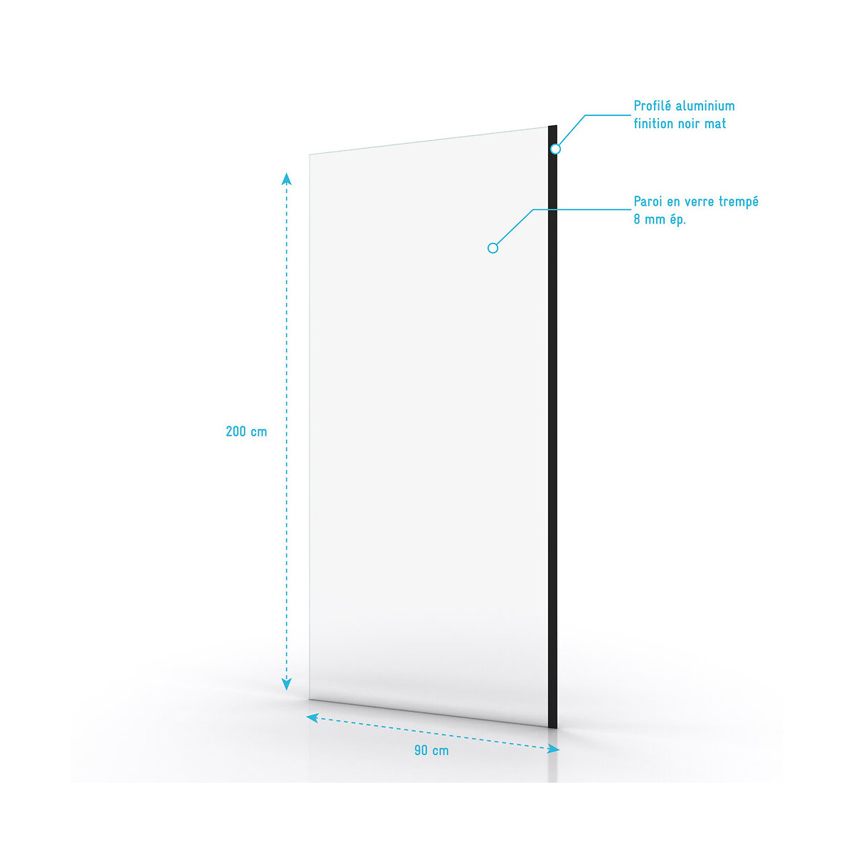 Caractéristiques de la paroi : Verre trempé 8mm transparent Profilé aluminium finition noir mat Fixation mural ajustable jusqu’à - 1cm (largeur totale de 89 à 90cm) Installation réversible Barre de fixation non incluse, vendue séparément Dimensions 90x200cm En option: Barre de fixation mural finition noir mat Barre de fixation mural finition noir mat extensible Barre de fixation mural finition noir mat d'angle Référence: FAC302 Garantie 2 ans pièces et non main d'oeuvre. Profilé noir mat thermolaqué : Le thermolaquage est une technique de traitement spécifique réservé aux matériaux en métal ou en aluminium brut. On projette de la peinture en poudre chargée en électricité statique qui va se déposer sur toute la surface des profilés. Cette technique de pulvérisation en poudre , qui s’appelle projection électrostatique ou poudrage électrostatique, permet d'avoir un revêtement complètement uniforme sur tous les profilés. Ce type de traitement dispense l’utilisation de produits chimiques nocifs pour la santé et l’environnement comme les solvants. Après avoir été recouverte de poudre, la pièce doit passer dans un four où elle sera chauffée pendant 20 minutes à 200°C. Les avantages du thermolaquage : Cette technique possède de nombreux avantage, qui sont La surface peinte possède une dureté supérieure ce qui a pour conséquence une résistance aux chocs accrue Le thermolaquage a une meilleure résistance à la corrosion La couleur des profilés thermolaqués résiste mieux au vieillisement et tout autres élément tel que l'humidité etc. Les profilés thermolaqués présentent une meilleure finition, fini les coulures de peinture et défauts d'aspect, avec cette technique la surface est uniforme Sans solvant c'est un véritable plus pour la santé Mais aussi plus écologique (pas de solvants) Dans un souci de qualité mais aussi de sécurité nos produits répondent à toutes les normes Européennes en vigeur. Que ce soit en terme de sécurité en cas de casse, d'entretien de nos produits ou de la durée de vie de ces derniers, nos produits remplissent tous les critères. Verre trempé : Le verre trempé est un verre qui a subi un traitement afin d’améliorer ses propriétés. Nous utilisons la trempe thermique qui consiste à porter le verre à très haute température (environ à 700 °C), puis de le refroidir rapidement. Ce processus favorise l'apparition de tensions en profondeur et celle de la compression à la surface du verre. Tout cela a pour effet l’amélioration de sa résistance aux chocs. Il est de 2 à 5 fois plus résistant que le verre simple. Mais aussi diminue grandement la dangerosité du verre car en cas de casse le verre explose en de petits morceaux et non pas en de grands pans tranchants. Pour le reste il conserve les mêmes propriétés que le verre classique Norme harmonisée : EN14428:2004 Certification Européenne: Aptitude au nettoyage : EN14428 :2004+A1:2008 Clause 4.2 Résistance à l’impact / Propriétés d’éclatement: EN14428:2004+A1:2008 Clause 4.3 Durabilité : EN14428:2004+A1:2008 Clause 4.4 MyShowerRoom c’est aussi la garantie de durabilité : Nous garantissons un stocks de pièces détachées d’au moins 5 ans Notre visserie est en acier inoxydable ce qui est une garantie anticorrosion Garantie 2 ans pièces uniquement Cocorico ! MyShowerRoom est une entreprise Française et toute la conception de nos produits est également Française. Ce qui est un véritable plus pour être au plus près de ses clients et avoir une meilleure connaissance de leurs attentes. Qui sommes nous L’HISTOIRE DE MYSHOWERROOM Nous avons créé MyShowerRoom en 2003 avec l’ambition de démocratiser le design et l’innovation dans la salle de bain pour faire de cette pièce un lieu à part entière, un véritable lieu d’histoires à vivre pour toute la famille. Nos cabines de douche et meubles de salle de bain dans l’ère du temps à des tarifs très accessibles. Nos nombreux brevets garantissent l’originalité de notre gamme de cabines de douches. Et nos ingénieurs mettent en œuvre tout leur savoir-faire et toutes les technologies innovantes au service d’une simplicité d’installation et d’utilisation incomparable pour tous. ÊTRE BIENVEILLANT AVEC NOS CLIENTS Notre service client a un objectif : rendre nos clients heureux. Pour cela nous veillons à répondre dans les 24h aux demandes clients. Mais aussi de toujours apporter une solution et entière satisfaction à nos clients. CONSTRUIRE DES PRODUITS TOUJOURS PLUS PERFORMANTS Nos ingénieurs, ainsi que nos équipes terrain consacrent tous leurs efforts à créer des produits adaptés à vos besoins, et toujours plus innovants grâce à nos technologies. Notre objectif est d’être votre unique interlocuteur pour tous vos projets de salle de bain. CONCRÉTISER LES RÊVES DE CHACUN Un projet de salle de bain ? Nous le réalisons ! Lieu de détente et de relaxation par excellence, la salle de bain est une des pièces maîtresse de la maison. Chez MyShowerRoom, nous mettons tout en oeuvre afin que ce rêve devienne réalité. PROPOSER UNE GAMME COMPLÈTE DE PRODUITS Nous vous proposons grâce à notre boutique en ligne une gamme complète de produits Made in MyShowerRoom pour équiper, et accessoiriser votre salle de bain. Un catalogue que nous renouvelons régulièrement avec les dernières technologies MyShowerRoom. APPORTER UNE EXPERTISE HUMAINE Parce que l’humain passe avant tout, nous travaillons avec les meilleurs experts. La satisfaction de nos clients est notre seule et unique priorité. Chaque problème a une solution, et c’est dans cette optique que nous avons mis en place un chat pour échanger directement avec nos équipes. NOTRE CENTRE LOGISTIQUE 11 000 m² d’entrepôt 7000 palettes en stock 1 800 colis traités par jour Plus de 260 préparations de commandes quotidiennes 12 quais de chargement/déchargement CONSEILS & VENTES Une équipe