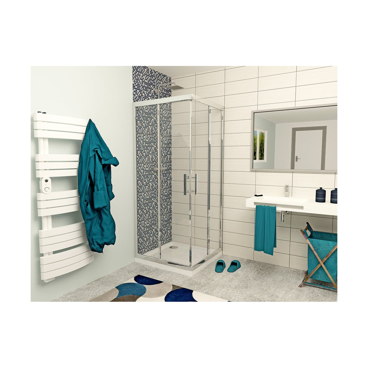 La gamme de façades EKLA propose une large gamme de configurations dans diverses dimensions : parois accès d'angle, quart de cercle, coulissantes, pivotantes, pliantes et retours fixes. Vous trouverez ainsi réponse à toutes vos problématiques d'installation et pourrait réaliser votre projet de salle d'eau. La fermeture des portes est assurée par un aimant. Les façades EKLA se montent de plein pied ou sur receveur. La façade coulissante pour accès d'angle 90x90x185cm est en verre trempé 6mm. Traitée anticalcaire une face, elle permet un entretien facile. Elle est équipée de roulettes à billes déclipsables. D'un design sobre avec poignées allongées, finition chromé, cette façade s'installe dans un angle de votre salle de bain. Les profilés sont également chromé. La fermeture de la porte est assurée par un aimant. Pour faciliter l'installation de votre façade de douche le profilé associé est ajustable : -12,5/+2,5mm. Ce produit de la collection Zen à Vivre vous assure un confort sans égal et vous permet profiter de votre intérieur en toute serenité.