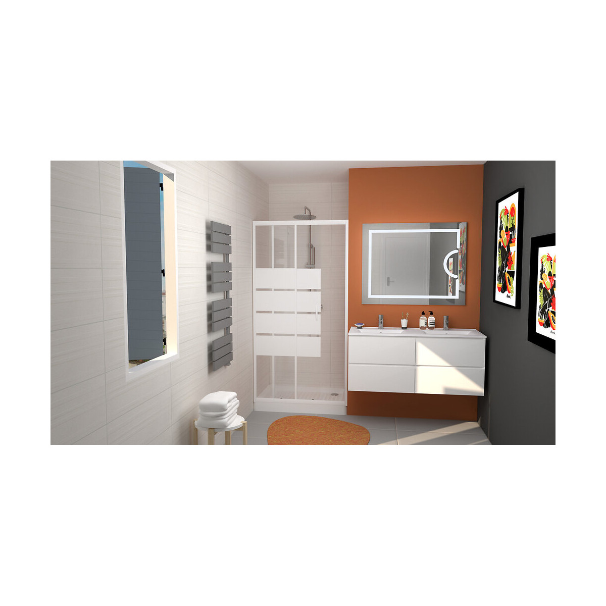 La gamme de façades SHIVA propose un large choix de configurations dans diverses dimensions : parois accès d'angle, quart de cercle, coulissantes, pivotantes, pliantes et retours fixes. Vous trouverez ainsi réponse à toutes vos problématiques d'installation et pourrait réaliser votre projet de salle d'eau. Toutes les façades de la gamme SHIVA sont ornées d'un motif sérigraphié 4 bandes givrés positionné en brise vue. La fermeture des portes est assurée par un aimant. La façade coulissante accès de face 100x190cm est en verre trempé 5mm. Traitée anticalcaire une face, elle permet un entretien facile. Elle est équipée de roulettes à billes déclipsables. D'un design sobre avec poignées allongées en ABS peint gris, cette façade s'installe dans un angle de votre salle de bain. Les profilés de cette façade sont en aluminium laqué blanc. Pour faciliter l'installation de votre façade de douche le profilé associé est ajustable : +/-15mm. Ce produit de la collection Zen à Vivre vous assure un confort sans égal et vous permet profiter de votre intérieur en toute serenité.