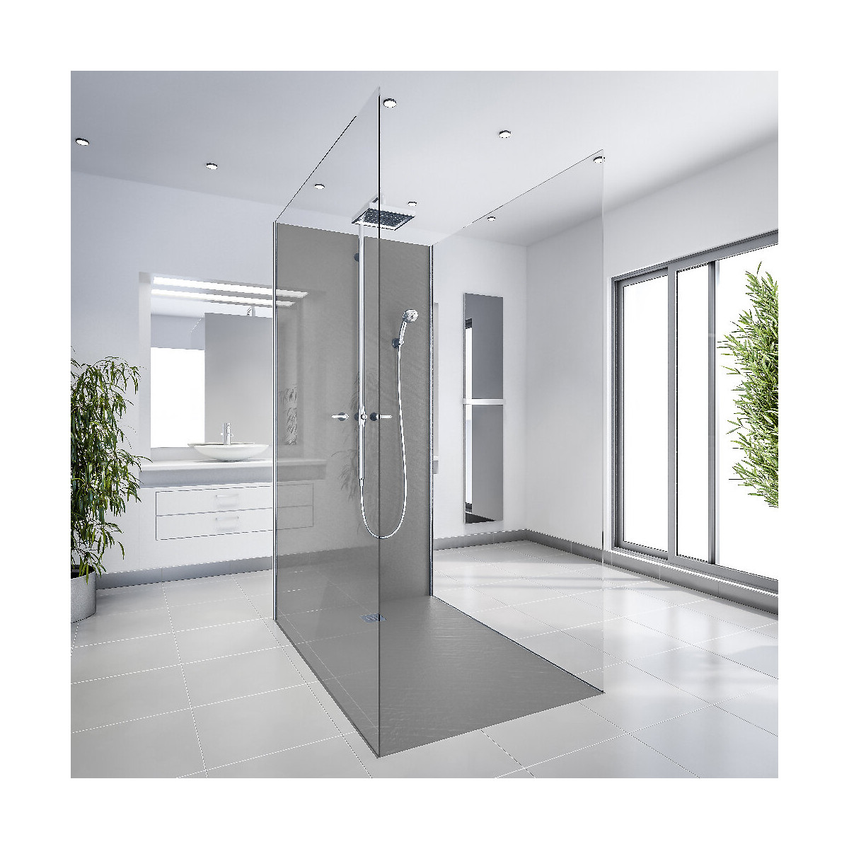 Solid surface anti bactérien texturé comme une pierre naturelle Pleine masse Monté sur une natte étanche périphérique 200 x 100 cm Flexible pour s'adapter aux murs Recoupable avec un disque Percable Montage sur ancien carrelage possibleSpécifications techniques
