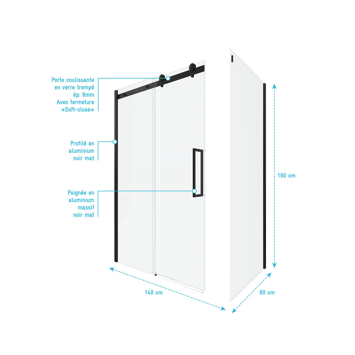 Caractéristiques de la porte de douche coulissante : Paroi de douche type industriel 1 porte coulissante en verre trempé 8mm transparent Roulement à galet noir mat Profilés de fixation murale ajustables de -2cm noir mat Verre trempé 8mm transparent Poignée en aluminium laquée noir mat Sens d'ouverture réversible Fermeture ‘‘soft close’’ Dimensions 140x200cm Caractéristiques de la paroi de retour : 1 Paroi de retour de douche type industriel en verre trempé 8mm transparent Profilés de fixation murale ajustables de -1cm noir mat Dimensions 80x200cm Plus produit : Fermeture progressive (Soft close) fini les portes qui claquent ! Verre 8mm Systeme de roulement type industriel design Référence : FAC628 Désignation produit : RAILROAD DARK 140 FRONT + RAILROAD DARK 80 RETOUR Garantie 2 ans pièces et non main d'oeuvre. Profilé noir mat thermolaqué : Le thermolaquage est une technique de traitement spécifique réservé aux matériaux en métal ou en aluminium brut. On projette de la peinture en poudre chargée en électricité statique qui va se déposer sur toute la surface des profilés. Cette technique de pulvérisation en poudre , qui s’appelle projection électrostatique ou poudrage électrostatique, permet d'avoir un revêtement complètement uniforme sur tous les profilés. Ce type de traitement dispense l’utilisation de produits chimiques nocifs pour la santé et l’environnement comme les solvants. Après avoir été recouverte de poudre, la pièce doit passer dans un four où elle sera chauffée pendant 20 minutes à 200°C. Les avantages du thermolaquage : Cette technique possède de nombreux avantage, qui sont La surface peinte possède une dureté supérieure ce qui a pour conséquence une résistance aux chocs accrue Le thermolaquage a une meilleure résistance à la corrosion La couleur des profilés thermolaqués résiste mieux au vieillissement et tout autres élément tel que l'humidité etc. Les profilés thermolaqués présentent une meilleure finition, fini les coulures de peinture et défauts d'aspect, avec cette technique la surface est uniforme Sans solvant c'est un véritable plus pour la santé Mais aussi plus écologique (pas de solvants) Dans un souci de qualité mais aussi de sécurité nos produits répondent à toutes les normes Européennes en vigeur. Que ce soit en terme de sécurité en cas de casse, d'entretien de nos produits ou de la durée de vie de ces derniers, nos produits remplissent tous les critères. Verre trempé : Le verre trempé est un verre qui a subi un traitement afin d’améliorer ses propriétés. Nous utilisons la trempe thermique qui consiste à porter le verre à très haute température (environ à 700 °C), puis de le refroidir rapidement. Ce processus favorise l'apparition de tensions en profondeur et celle de la compression à la surface du verre. Tout cela a pour effet l’amélioration de sa résistance aux chocs. Il est de 2 à 5 fois plus résistant que le verre simple. Mais aussi diminue grandement la dangerosité du verre car en cas de casse le verre explose en de petits morceaux et non pas en de grands pans tranchants. Pour le reste il conserve les mêmes propriétés que le verre classique Norme harmonisée : EN14428:2004 Certification Européenne: Aptitude au nettoyage : EN14428 :2004+A1:2008 Clause 4.2 Résistance à l’impact / Propriétés d’éclatement: EN14428:2004+A1:2008 Clause 4.3 Durabilité : EN14428:2004+A1:2008 Clause 4.4 MyShowerRoom c’est aussi la garantie de durabilité : Nous garantissons un stocks de pièces détachées d’au moins 5 ans Notre visserie est en acier inoxydable ce qui est une garantie anticorrosion Garantie 2 ans pièces uniquement Cocorico ! MyShowerRoom est une entreprise Française et toute la conception de nos produits est également Française. Ce qui est un véritable plus pour être au plus près de ses clients et avoir une meilleure connaissance de leurs attentes. Qui sommes nous L’HISTOIRE DE MYSHOWERROOM Nous avons créé MyShowerRoom en 2003 avec l’ambition de démocratiser le design et l’innovation dans la salle de bain pour faire de cette pièce un lieu à part entière, un véritable lieu d’histoires à vivre pour toute la famille. Nos cabines de douche et meubles de salle de bain dans l’ère du temps à des tarifs très accessibles. Nos nombreux brevets garantissent l’originalité de notre gamme de cabines de douches. Et nos ingénieurs mettent en œuvre tout leur savoir-faire et toutes les technologies innovantes au service d’une simplicité d’installation et d’utilisation incomparable pour tous. ÊTRE BIENVEILLANT AVEC NOS CLIENTS Notre service client a un objectif : rendre nos clients heureux. Pour cela nous veillons à répondre dans les 24h aux demandes clients. Mais aussi de toujours apporter une solution et entière satisfaction à nos clients. CONSTRUIRE DES PRODUITS TOUJOURS PLUS PERFORMANTS Nos ingénieurs, ainsi que nos équipes terrain consacrent tous leurs efforts à créer des produits adaptés à vos besoins, et toujours plus innovants grâce à nos technologies. Notre objectif est d’être votre unique interlocuteur pour tous vos projets de salle de bain. CONCRÉTISER LES RÊVES DE CHACUN Un projet de salle de bain ? Nous le réalisons ! Lieu de détente et de relaxation par excellence, la salle de bain est une des pièces maîtresse de la maison. Chez MyShowerRoom, nous mettons tout en oeuvre afin que ce rêve devienne réalité. PROPOSER UNE GAMME COMPLÈTE DE PRODUITS Nous vous proposons grâce à notre boutique en ligne une gamme complète de produits Made in MyShowerRoom pour équiper, et accessoiriser votre salle de bain. Un catalogue que nous renouvelons régulièrement avec les dernières technologies MyShowerRoom. APPORTER UNE EXPERTISE HUMAINE Parce que l’humain passe avant tout, nous travaillons avec les meilleurs experts. La satisfaction de nos clients est notre seule et unique priorité. Chaque 