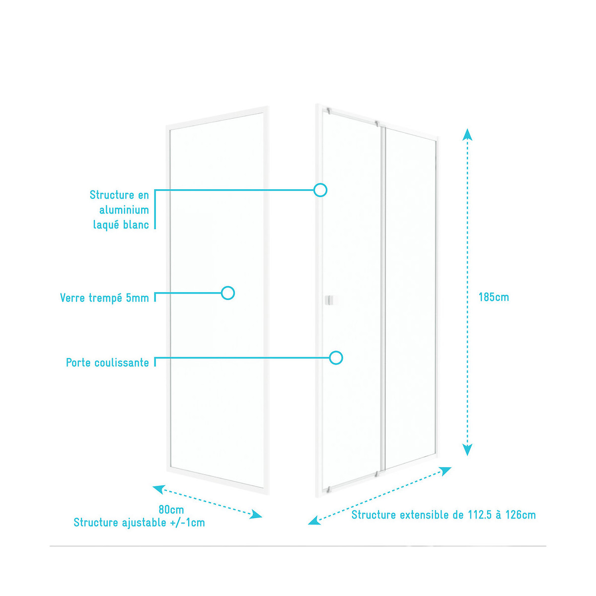 Porte de douche coulissante WHITY 120 SLIDING Caractéristiques des portes de douche : Verre trempé 5mm transparent Poignées doubles carrées blanches Structure en aluminium laqué blanc Système de fermeture magnétique 14 cm de largeur réglable Dimensions 120X185 cm Plus produit : Profilés ajustables pour s'adapter à un maximum de surface La simplicité oui mais avec style Caractéristiques paroi RETOUR : Verre trempé 5mm transparent Structure en aluminium laqué blanc Paroi de retour compatible uniquement avec les parois coulissantes / pivotantes de la même gamme, ne peut être utilisée seule Attention paroi de retour vendue seule Ne peut pas être montée seule Ajustable +/- 1cm Montage réversible Dimensions 80X185 cm Désignation produit : PACK PAROI WHITY slide 120 + RETOUR WHITY SIDE 80 Verre trempé : Le verre trempé est un verre qui a subi un traitement afin d’améliorer ses propriétés. Nous utilisons la trempe thermique qui consiste à porter le verre à très haute température (environ à 700 °C), puis de le refroidir rapidement. Ce processus favorise l'apparition de tensions en profondeur et celle de la compression à la surface du verre. Tout cela a pour effet l’amélioration de sa résistance aux chocs. Il est de 2 à 5 fois plus résistant que le verre simple. Mais aussi diminue grandement la dangerosité du verre car en cas de casse le verre explose en de petits morceaux et non pas en de grands pans tranchants. Pour le reste il conserve les mêmes propriétés que le verre classique Norme harmonisée : EN14428:2004 Certification Européenne: Aptitude au nettoyage : EN14428 :2004+A1:2008 Clause 4.2 Résistance à l’impact / Propriétés d’éclatement: EN14428:2004+A1:2008 Clause 4.3 Durabilité : EN14428:2004+A1:2008 Clause 4.4 MyShowerRoom c’est aussi la garantie de durabilité : Nous garantissons un stocks de pièces détachées d’au moins 5 ans Notre visserie est en acier inoxydable ce qui est une garantie anticorrosion Garantie 2 ans pièces uniquement Cocorico ! MyShowerRoom est une entreprise Française et toute la conception de nos produits est également Française. Ce qui est un véritable plus pour être au plus près de ses clients et avoir une meilleure connaissance de leurs attentes. Qui sommes nous L’HISTOIRE DE MYSHOWERROOM Nous avons créé MyShowerRoom en 2003 avec l’ambition de démocratiser le design et l’innovation dans la salle de bain pour faire de cette pièce un lieu à part entière, un véritable lieu d’histoires à vivre pour toute la famille. Nos cabines de douche et meubles de salle de bain dans l’ère du temps à des tarifs très accessibles. Nos nombreux brevets garantissent l’originalité de notre gamme de cabines de douches. Et nos ingénieurs mettent en œuvre tout leur savoir-faire et toutes les technologies innovantes au service d’une simplicité d’installation et d’utilisation incomparable pour tous. ÊTRE BIENVEILLANT AVEC NOS CLIENTS Notre service client a un objectif : rendre nos clients heureux. Pour cela nous veillons à répondre dans les 24h aux demandes clients. Mais aussi de toujours apporter une solution et entière satisfaction à nos clients. CONSTRUIRE DES PRODUITS TOUJOURS PLUS PERFORMANTS Nos ingénieurs, ainsi que nos équipes terrain consacrent tous leurs efforts à créer des produits adaptés à vos besoins, et toujours plus innovants grâce à nos technologies. Notre objectif est d’être votre unique interlocuteur pour tous vos projets de salle de bain. CONCRÉTISER LES RÊVES DE CHACUN Un projet de salle de bain ? Nous le réalisons ! Lieu de détente et de relaxation par excellence, la salle de bain est une des pièces maîtresse de la maison. Chez MyShowerRoom, nous mettons tout en oeuvre afin que ce rêve devienne réalité. PROPOSER UNE GAMME COMPLÈTE DE PRODUITS Nous vous proposons grâce à notre boutique en ligne une gamme complète de produits Made in MyShowerRoom pour équiper, et accessoiriser votre salle de bain. Un catalogue que nous renouvelons régulièrement avec les dernières technologies MyShowerRoom. APPORTER UNE EXPERTISE HUMAINE Parce que l’humain passe avant tout, nous travaillons avec les meilleurs experts. La satisfaction de nos clients est notre seule et unique priorité. Chaque problème a une solution, et c’est dans cette optique que nous avons mis en place un chat pour échanger directement avec nos équipes. NOTRE CENTRE LOGISTIQUE 11 000 m² d’entrepôt 7000 palettes en stock 1 800 colis traités par jour Plus de 260 préparations de commandes quotidiennes 12 quais de chargement/déchargement CONSEILS & VENTES Une équipe disponible 5 jours sur 7 pour vous accompagner dans vos achats. LIVRAISON GRATUITE Pour toute commande sur le site MyShowerRoom, la livraison est gratuite dans toute la France. UNE GARANTIE DE QUALITÉ Grâce à nos produits brevetés vous bénéficiez de produits uniques. Référence produit: PACF024 Retrouvez plus d'informations produit et des conseils de montage sur le site Aurlane. Remarques importantes: Ces colis sont volumineux, la livraison est effectuée par transporteur spécialisé en bas de chez vous. Les chauffeurs ne sont pas habilités à porter la marchandise, mais uniquement à la décharger. Pas de livraison à l'étage. L'adresse de livraison doit être accessible en camion poids lourd. Dans le cas contraire la marchandise sera mise à disposition au dépôt le plus proche (distance non garantie). Les rendez-vous sont gérés directement par les transporteurs. Attention à bien contrôler la marchandise à réception pour éviter tous litiges.