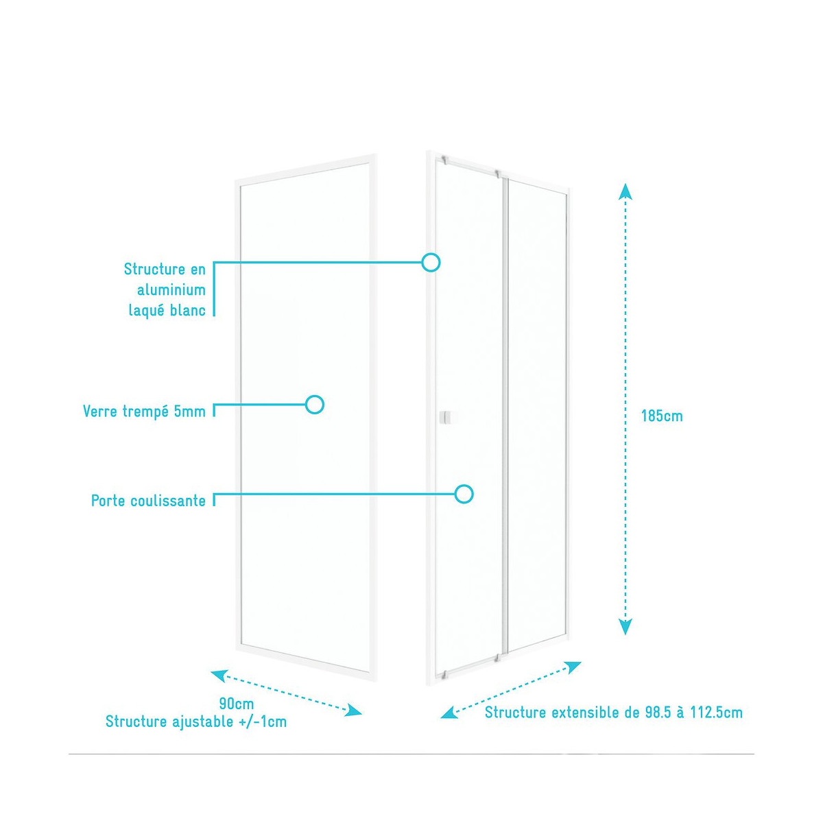 Porte de douche coulissante WHITY slide 100 Caractéristiques des portes de douche : Verre trempé 5mm transparent Poignées doubles carrées blanches Structure en aluminium laqué blanc Système de fermeture magnétique 14 cm de largeur réglable ajustable 98.5 à 112.5 sur la largeur Dimensions 100X185 cm Plus produit : Profilés ajustables pour s'adapter à un maximum de surface La simplicité oui mais avec style Garantie 2 ans pièces et non main d'oeuvre. Caractéristiques de la paroi de retour: Verre trempé 5mm transparent Structure en aluminium laqué blanc Ajustable +/- 1cm Compatible uniquement avec les portes de la même gamme (pivotantes / coulissantes) Attention paroi de retour vendue seule Ne peut pas être montée seule Dimensions 90X185 cm Désignation produit : PACK PAROI SPOT 100 SLIDING + RETOUR SPOT SIDE 90 Garantie 2 ans pièces uniquement. Verre trempé : Le verre trempé est un verre qui a subi un traitement afin d’améliorer ses propriétés. Nous utilisons la trempe thermique qui consiste à porter le verre à très haute température (environ à 700 °C), puis de le refroidir rapidement. Ce processus favorise l'apparition de tensions en profondeur et celle de la compression à la surface du verre. Tout cela a pour effet l’amélioration de sa résistance aux chocs. Il est de 2 à 5 fois plus résistant que le verre simple. Mais aussi diminue grandement la dangerosité du verre car en cas de casse le verre explose en de petits morceaux et non pas en de grands pans tranchants. Pour le reste il conserve les mêmes propriétés que le verre classique Norme harmonisée : EN14428:2004 Certification Européenne: Aptitude au nettoyage : EN14428 :2004+A1:2008 Clause 4.2 Résistance à l’impact / Propriétés d’éclatement: EN14428:2004+A1:2008 Clause 4.3 Durabilité : EN14428:2004+A1:2008 Clause 4.4 MyShowerRoom c’est aussi la garantie de durabilité : Nous garantissons un stocks de pièces détachées d’au moins 5 ans Notre visserie est en acier inoxydable ce qui est une garantie anticorrosion Garantie 2 ans pièces uniquement Cocorico ! MyShowerRoom est une entreprise Française et toute la conception de nos produits est également Française. Ce qui est un véritable plus pour être au plus près de ses clients et avoir une meilleure connaissance de leurs attentes. Qui sommes nous L’HISTOIRE DE MYSHOWERROOM Nous avons créé MyShowerRoom en 2003 avec l’ambition de démocratiser le design et l’innovation dans la salle de bain pour faire de cette pièce un lieu à part entière, un véritable lieu d’histoires à vivre pour toute la famille. Nos cabines de douche et meubles de salle de bain dans l’ère du temps à des tarifs très accessibles. Nos nombreux brevets garantissent l’originalité de notre gamme de cabines de douches. Et nos ingénieurs mettent en œuvre tout leur savoir-faire et toutes les technologies innovantes au service d’une simplicité d’installation et d’utilisation incomparable pour tous. ÊTRE BIENVEILLANT AVEC NOS CLIENTS Notre service client a un objectif : rendre nos clients heureux. Pour cela nous veillons à répondre dans les 24h aux demandes clients. Mais aussi de toujours apporter une solution et entière satisfaction à nos clients. CONSTRUIRE DES PRODUITS TOUJOURS PLUS PERFORMANTS Nos ingénieurs, ainsi que nos équipes terrain consacrent tous leurs efforts à créer des produits adaptés à vos besoins, et toujours plus innovants grâce à nos technologies. Notre objectif est d’être votre unique interlocuteur pour tous vos projets de salle de bain. CONCRÉTISER LES RÊVES DE CHACUN Un projet de salle de bain ? Nous le réalisons ! Lieu de détente et de relaxation par excellence, la salle de bain est une des pièces maîtresse de la maison. Chez MyShowerRoom, nous mettons tout en oeuvre afin que ce rêve devienne réalité. PROPOSER UNE GAMME COMPLÈTE DE PRODUITS Nous vous proposons grâce à notre boutique en ligne une gamme complète de produits Made in MyShowerRoom pour équiper, et accessoiriser votre salle de bain. Un catalogue que nous renouvelons régulièrement avec les dernières technologies MyShowerRoom. APPORTER UNE EXPERTISE HUMAINE Parce que l’humain passe avant tout, nous travaillons avec les meilleurs experts. La satisfaction de nos clients est notre seule et unique priorité. Chaque problème a une solution, et c’est dans cette optique que nous avons mis en place un chat pour échanger directement avec nos équipes. NOTRE CENTRE LOGISTIQUE 11 000 m² d’entrepôt 7000 palettes en stock 1 800 colis traités par jour Plus de 260 préparations de commandes quotidiennes 12 quais de chargement/déchargement CONSEILS & VENTES Une équipe disponible 5 jours sur 7 pour vous accompagner dans vos achats. LIVRAISON GRATUITE Pour toute commande sur le site MyShowerRoom, la livraison est gratuite dans toute la France. UNE GARANTIE DE QUALITÉ Grâce à nos produits brevetés vous bénéficiez de produits uniques. Référence produit: PACF023 Retrouvez plus d'informations produit et des conseils de montage sur le site Aurlane. Remarques importantes: Ces colis sont volumineux, la livraison est effectuée par transporteur spécialisé en bas de chez vous. Les chauffeurs ne sont pas habilités à porter la marchandise, mais uniquement à la décharger. Pas de livraison à l'étage. L'adresse de livraison doit être accessible en camion poids lourd. Dans le cas contraire la marchandise sera mise à disposition au dépôt le plus proche (distance non garantie). Les rendez-vous sont gérés directement par les transporteurs. Attention à bien contrôler la marchandise à réception pour éviter tous litiges.
