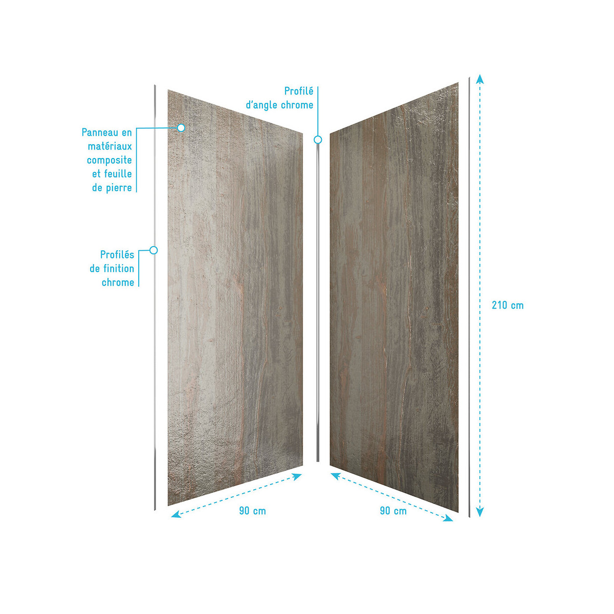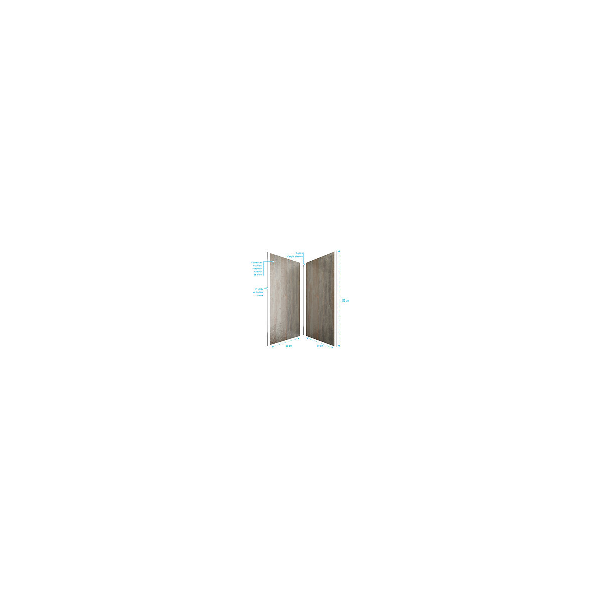 Ce pack comprend 2 panneaux muraux STONE'IT Wood Stone 90 (90 + 90 cm) + un profilé d'angle CHROME et 2 profilés de finition CHROME Rénover sa douche en quelques heures c’est facile avec les panneaux muraux, et en plus c’est très déco! Vous désirez habiller votre salle de bains facilement et sans utiliser de carrelage : Nous vous proposons les panneaux muraux STONE'IT Wood Stone. Plus produit: La pose est extrêmement facile et rapide et ne nécessite pas de gros outillage. Les travaux sont bien moins contraignants et salissants que la pose du carrelage. Important : Tous nos panneaux sont garantis 10 ans. Matériaux: Les panneaux STONE'IT sont des matériaux composites formés d’une fine feuille de mica. Cette strate est renforcée avec de la résine polyester et de la fibre de verre. C’est ce qu’on appelle la stratification. Cet assemblage bénéficie non seulement de l’aspect brut, authentique et très décoratif de la pierre mais aussi de la flexibilité et de la légèreté du polyester. Installation: Les panneaux muraux sont collés à l’aide de mastic PU ou de silicone pour garantir le maintien et l’étanchéité de votre douche. Des bandes de ruban adhésif double face permettent de maintenir le panneau le temps du séchage de la colle. Dimension du 1er panneau STONE'IT Wood Stone : 90x210 cm Dimension du 2eme panneau STONE'IT Wood Stone : 90x210 cm PROFILE D'ANGLE : Le profilé Les profilés de d'angles permettent de raccorder les panneaux muraux entre eux à 90° (Angle droit). Livrés en 210cm de longueur mais recoupables. Coloris du profilé : CHROME Dimension du profilé 15x15x2100 mm PROFILE DE FINITION : Les profilés Les profilés de finition permettent d'assurer une finition parfaite des bords. Livrés en 210cm de longueur mais recoupables. Coloris du profilé : CHROME Dimension du profilé 10x5x2100 mm Référence du pack: PACP249 Désignation du produit: STONE'IT Wood Stone Garantie 2 ans pièces et non main d'oeuvre. Profilé noir mat thermolaqué : Le thermolaquage est une technique de traitement spécifique réservé aux matériaux en métal ou en aluminium brut. On projette de la peinture en poudre chargée en électricité statique qui va se déposer sur toute la surface des profilés. Cette technique de pulvérisation en poudre , qui s’appelle projection électrostatique ou poudrage électrostatique, permet d'avoir un revêtement complètement uniforme sur tous les profilés. Ce type de traitement dispense l’utilisation de produits chimiques nocifs pour la santé et l’environnement comme les solvants. Après avoir été recouverte de poudre, la pièce doit passer dans un four où elle sera chauffée pendant 20 minutes à 200°C. Les avantages du thermolaquage : Cette technique possède de nombreux avantage, qui sont La surface peinte possède une dureté supérieure ce qui a pour conséquence une résistance aux chocs accrue Le thermolaquage a une meilleure résistance à la corrosion La couleur des profilés thermolaqués résiste mieux au vieillisement et tout autres élément tel que l'humidité etc. Les profilés thermolaqués présentent une meilleure finition, fini les coulures de peinture et défauts d'aspect, avec cette technique la surface est uniforme Sans solvant c'est un véritable plus pour la santé Mais aussi plus écologique (pas de solvants) Dans un souci de qualité mais aussi de sécurité nos produits répondent à toutes les normes Européennes en vigeur. Que ce soit en terme de sécurité en cas de casse, d'entretien de nos produits ou de la durée de vie de ces derniers, nos produits remplissent tous les critères. Verre trempé : Le verre trempé est un verre qui a subi un traitement afin d’améliorer ses propriétés. Nous utilisons la trempe thermique qui consiste à porter le verre à très haute température (environ à 700 °C), puis de le refroidir rapidement. Ce processus favorise l'apparition de tensions en profondeur et celle de la compression à la surface du verre. Tout cela a pour effet l’amélioration de sa résistance aux chocs. Il est de 2 à 5 fois plus résistant que le verre simple. Mais aussi diminue grandement la dangerosité du verre car en cas de casse le verre explose en de petits morceaux et non pas en de grands pans tranchants. Pour le reste il conserve les mêmes propriétés que le verre classique Norme harmonisée : EN14428:2004 Certification Européenne: Aptitude au nettoyage : EN14428 :2004+A1:2008 Clause 4.2 Résistance à l’impact / Propriétés d’éclatement: EN14428:2004+A1:2008 Clause 4.3 Durabilité : EN14428:2004+A1:2008 Clause 4.4 MyShowerRoom c’est aussi la garantie de durabilité : Nous garantissons un stocks de pièces détachées d’au moins 5 ans Notre visserie est en acier inoxydable ce qui est une garantie anticorrosion Garantie 2 ans pièces uniquement Cocorico ! MyShowerRoom est une entreprise Française et toute la conception de nos produits est également Française. Ce qui est un véritable plus pour être au plus près de ses clients et avoir une meilleure connaissance de leurs attentes. Qui sommes nous L’HISTOIRE DE MYSHOWERROOM Nous avons créé MyShowerRoom en 2003 avec l’ambition de démocratiser le design et l’innovation dans la salle de bain pour faire de cette pièce un lieu à part entière, un véritable lieu d’histoires à vivre pour toute la famille. Nos cabines de douche et meubles de salle de bain dans l’ère du temps à des tarifs très accessibles. Nos nombreux brevets garantissent l’originalité de notre gamme de cabines de douches. Et nos ingénieurs mettent en œuvre tout leur savoir-faire et toutes les technologies innovantes au service d’une simplicité d’installation et d’utilisation incomparable pour tous. ÊTRE BIENVEILLANT AVEC NOS CLIENTS Notre service client a un objectif : rendre nos clients heureux. Pour cela nous veillons à répondre dans les 24h aux demandes clients. Mais aussi de toujours apporter une s