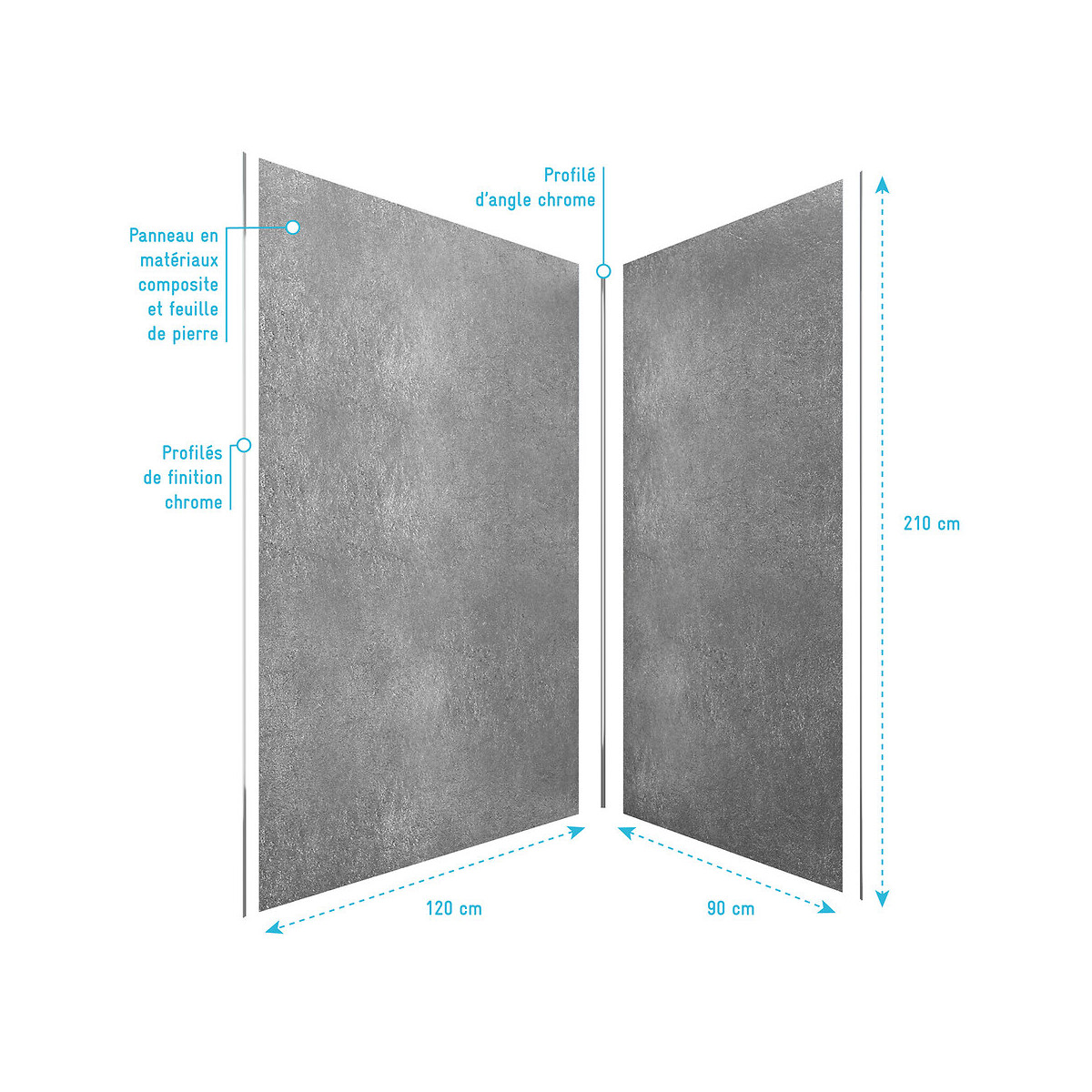 Ce pack comprend 2 panneaux muraux STONE'IT SILVER GREY (90 + 120 cm) + un profilé d'angle CHROME et 2 profilés de finition CHROME Rénover sa douche en quelques heures c’est facile avec les panneaux muraux, et en plus c’est très déco! Vous désirez habiller votre salle de bains facilement et sans utiliser de carrelage : Nous vous proposons les panneaux muraux STONE'IT Silver Grey. Plus produit: La pose est extrêmement facile et rapide et ne nécessite pas de gros outillage. Les travaux sont bien moins contraignants et salissants que la pose du carrelage. Important : Tous nos panneaux sont garantis 10 ans. Matériaux: Les panneaux STONE'IT sont des matériaux composites formés d’une fine feuille de pierre de mica. Cette strate est renforcée avec de la résine polyester et de la fibre de verre. C’est ce qu’on appelle la stratification. Cet assemblage bénéficie non seulement de l’aspect brut, authentique et très décoratif de la pierre mais aussi de la flexibilité et de la légèreté du polyester. Installation: Les panneaux muraux sont collés à l’aide de mastic PU ou de silicone pour garantir le maintien et l’étanchéité de votre douche. Des bandes de ruban adhésif double face permettent de maintenir le panneau le temps du séchage de la colle. Dimension du 1er panneau STONE'IT SILVER GREY : 90x210 cm Dimension du 2eme panneau STONE'IT SILVER GREY : 120x210 cm PROFILE D'ANGLE : Le profilé Les profilés de d'angles permettent de raccorder les panneaux muraux entre eux à 90° (Angle droit). Livrés en 210cm de longueur mais recoupables. Coloris du profilé : CHROME Dimension du profilé 15x15x2100 mm PROFILE DE FINITION : Les profilés Les profilés de finition permettent d'assurer une finition parfaite des bords. Livrés en 210cm de longueur mais recoupables. Coloris du profilé : CHROME Dimension du profilé 10x5x2100 mm Référence du pack: PACP245 Désignation du produit: STONE'IT SILVER GREY Garantie 2 ans pièces et non main d'oeuvre. Profilé noir mat thermolaqué : Le thermolaquage est une technique de traitement spécifique réservé aux matériaux en métal ou en aluminium brut. On projette de la peinture en poudre chargée en électricité statique qui va se déposer sur toute la surface des profilés. Cette technique de pulvérisation en poudre , qui s’appelle projection électrostatique ou poudrage électrostatique, permet d'avoir un revêtement complètement uniforme sur tous les profilés. Ce type de traitement dispense l’utilisation de produits chimiques nocifs pour la santé et l’environnement comme les solvants. Après avoir été recouverte de poudre, la pièce doit passer dans un four où elle sera chauffée pendant 20 minutes à 200°C. Les avantages du thermolaquage : Cette technique possède de nombreux avantage, qui sont La surface peinte possède une dureté supérieure ce qui a pour conséquence une résistance aux chocs accrue Le thermolaquage a une meilleure résistance à la corrosion La couleur des profilés thermolaqués résiste mieux au vieillisement et tout autres élément tel que l'humidité etc. Les profilés thermolaqués présentent une meilleure finition, fini les coulures de peinture et défauts d'aspect, avec cette technique la surface est uniforme Sans solvant c'est un véritable plus pour la santé Mais aussi plus écologique (pas de solvants) Dans un souci de qualité mais aussi de sécurité nos produits répondent à toutes les normes Européennes en vigeur. Que ce soit en terme de sécurité en cas de casse, d'entretien de nos produits ou de la durée de vie de ces derniers, nos produits remplissent tous les critères. Verre trempé : Le verre trempé est un verre qui a subi un traitement afin d’améliorer ses propriétés. Nous utilisons la trempe thermique qui consiste à porter le verre à très haute température (environ à 700 °C), puis de le refroidir rapidement. Ce processus favorise l'apparition de tensions en profondeur et celle de la compression à la surface du verre. Tout cela a pour effet l’amélioration de sa résistance aux chocs. Il est de 2 à 5 fois plus résistant que le verre simple. Mais aussi diminue grandement la dangerosité du verre car en cas de casse le verre explose en de petits morceaux et non pas en de grands pans tranchants. Pour le reste il conserve les mêmes propriétés que le verre classique Norme harmonisée : EN14428:2004 Certification Européenne: Aptitude au nettoyage : EN14428 :2004+A1:2008 Clause 4.2 Résistance à l’impact / Propriétés d’éclatement: EN14428:2004+A1:2008 Clause 4.3 Durabilité : EN14428:2004+A1:2008 Clause 4.4 MyShowerRoom c’est aussi la garantie de durabilité : Nous garantissons un stocks de pièces détachées d’au moins 5 ans Notre visserie est en acier inoxydable ce qui est une garantie anticorrosion Garantie 2 ans pièces uniquement Cocorico ! MyShowerRoom est une entreprise Française et toute la conception de nos produits est également Française. Ce qui est un véritable plus pour être au plus près de ses clients et avoir une meilleure connaissance de leurs attentes. Qui sommes nous L’HISTOIRE DE MYSHOWERROOM Nous avons créé MyShowerRoom en 2003 avec l’ambition de démocratiser le design et l’innovation dans la salle de bain pour faire de cette pièce un lieu à part entière, un véritable lieu d’histoires à vivre pour toute la famille. Nos cabines de douche et meubles de salle de bain dans l’ère du temps à des tarifs très accessibles. Nos nombreux brevets garantissent l’originalité de notre gamme de cabines de douches. Et nos ingénieurs mettent en œuvre tout leur savoir-faire et toutes les technologies innovantes au service d’une simplicité d’installation et d’utilisation incomparable pour tous. ÊTRE BIENVEILLANT AVEC NOS CLIENTS Notre service client a un objectif : rendre nos clients heureux. Pour cela nous veillons à répondre dans les 24h aux demandes clients. Mais aussi de toujours 