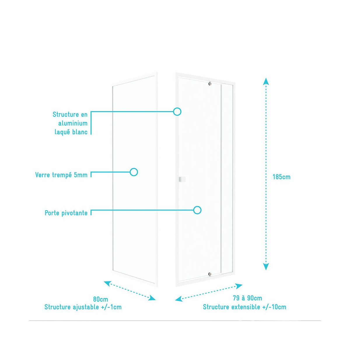 Caractéristiques de la porte de douche : Verre trempé 5mm transparent Structure en aluminium laqué blanc Poignées carrées blanche Pivot blanc Fermeture magnétique Montage réversible Dimensions 79-90x185 cm Plus produit : Profilés ajustables pour s'adapter à un maximum de surface La simplicité oui mais avec style Caractéristiques de la paroi de retour : Verre trempé 5mm transparent Structure en aluminium laqué blanc Ajustable +/- 1cm Montage réversible Dimensions 80X185 cm Réference du produit: PACF026 Désignation du produit: WHITY PIVOT 80-90 Garantie 2 ans pièces et non main d'oeuvre. Verre trempé : Le verre trempé est un verre qui a subi un traitement afin d’améliorer ses propriétés. Nous utilisons la trempe thermique qui consiste à porter le verre à très haute température (environ à 700 °C), puis de le refroidir rapidement. Ce processus favorise l'apparition de tensions en profondeur et celle de la compression à la surface du verre. Tout cela a pour effet l’amélioration de sa résistance aux chocs. Il est de 2 à 5 fois plus résistant que le verre simple. Mais aussi diminue grandement la dangerosité du verre car en cas de casse le verre explose en de petits morceaux et non pas en de grands pans tranchants. Pour le reste il conserve les mêmes propriétés que le verre classique Norme harmonisée : EN14428:2004 Certification Européenne: Aptitude au nettoyage : EN14428 :2004+A1:2008 Clause 4.2 Résistance à l’impact / Propriétés d’éclatement: EN14428:2004+A1:2008 Clause 4.3 Durabilité : EN14428:2004+A1:2008 Clause 4.4 MyShowerRoom c’est aussi la garantie de durabilité : Nous garantissons un stocks de pièces détachées d’au moins 5 ans Notre visserie est en acier inoxydable ce qui est une garantie anticorrosion Garantie 2 ans pièces uniquement Cocorico ! MyShowerRoom est une entreprise Française et toute la conception de nos produits est également Française. Ce qui est un véritable plus pour être au plus près de ses clients et avoir une meilleure connaissance de leurs attentes. Qui sommes nous L’HISTOIRE DE MYSHOWERROOM Nous avons créé MyShowerRoom en 2003 avec l’ambition de démocratiser le design et l’innovation dans la salle de bain pour faire de cette pièce un lieu à part entière, un véritable lieu d’histoires à vivre pour toute la famille. Nos cabines de douche et meubles de salle de bain dans l’ère du temps à des tarifs très accessibles. Nos nombreux brevets garantissent l’originalité de notre gamme de cabines de douches. Et nos ingénieurs mettent en œuvre tout leur savoir-faire et toutes les technologies innovantes au service d’une simplicité d’installation et d’utilisation incomparable pour tous. ÊTRE BIENVEILLANT AVEC NOS CLIENTS Notre service client a un objectif : rendre nos clients heureux. Pour cela nous veillons à répondre dans les 24h aux demandes clients. Mais aussi de toujours apporter une solution et entière satisfaction à nos clients. CONSTRUIRE DES PRODUITS TOUJOURS PLUS PERFORMANTS Nos ingénieurs, ainsi que nos équipes terrain consacrent tous leurs efforts à créer des produits adaptés à vos besoins, et toujours plus innovants grâce à nos technologies. Notre objectif est d’être votre unique interlocuteur pour tous vos projets de salle de bain. CONCRÉTISER LES RÊVES DE CHACUN Un projet de salle de bain ? Nous le réalisons ! Lieu de détente et de relaxation par excellence, la salle de bain est une des pièces maîtresse de la maison. Chez MyShowerRoom, nous mettons tout en oeuvre afin que ce rêve devienne réalité. PROPOSER UNE GAMME COMPLÈTE DE PRODUITS Nous vous proposons grâce à notre boutique en ligne une gamme complète de produits Made in MyShowerRoom pour équiper, et accessoiriser votre salle de bain. Un catalogue que nous renouvelons régulièrement avec les dernières technologies MyShowerRoom. APPORTER UNE EXPERTISE HUMAINE Parce que l’humain passe avant tout, nous travaillons avec les meilleurs experts. La satisfaction de nos clients est notre seule et unique priorité. Chaque problème a une solution, et c’est dans cette optique que nous avons mis en place un chat pour échanger directement avec nos équipes. NOTRE CENTRE LOGISTIQUE 11 000 m² d’entrepôt 7000 palettes en stock 1 800 colis traités par jour Plus de 260 préparations de commandes quotidiennes 12 quais de chargement/déchargement CONSEILS & VENTES Une équipe disponible 5 jours sur 7 pour vous accompagner dans vos achats. LIVRAISON GRATUITE Pour toute commande sur le site MyShowerRoom, la livraison est gratuite dans toute la France. UNE GARANTIE DE QUALITÉ Grâce à nos produits brevetés vous bénéficiez de produits uniques. Référence produit: PACF026 Retrouvez plus d'informations produit et des conseils de montage sur le site Aurlane. Remarques importantes: Ces colis sont volumineux, la livraison est effectuée par transporteur spécialisé en bas de chez vous. Les chauffeurs ne sont pas habilités à porter la marchandise, mais uniquement à la décharger. Pas de livraison à l'étage. L'adresse de livraison doit être accessible en camion poids lourd. Dans le cas contraire la marchandise sera mise à disposition au dépôt le plus proche (distance non garantie). Les rendez-vous sont gérés directement par les transporteurs. Attention à bien contrôler la marchandise à réception pour éviter tous litiges.