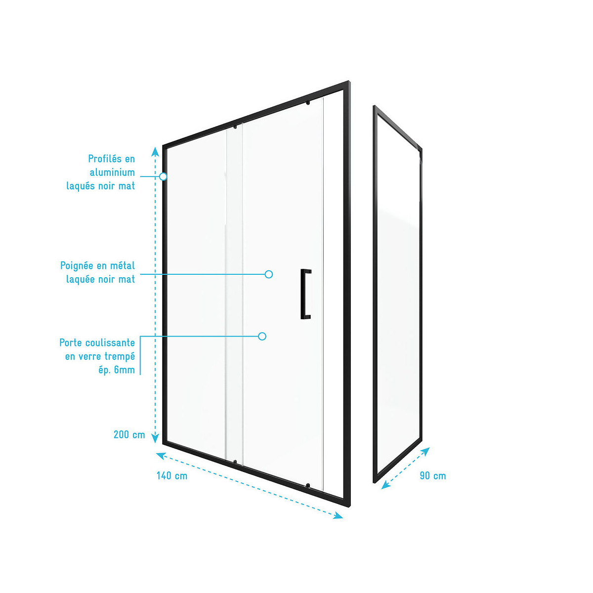 Caractéristiques de la paroi retour : Structure en aluminium laqué noir mat Verre trempé 6 mm Montage réversible Dimensions 90x200 cm Caractéristiques de la paroi coulissante : Structure en aluminium laqué noir mat Verre trempé 6 mm Montage réversible Dimensions 140x200 cm Référence : FAC623 Garantie 2 ans pièces et non main d'oeuvre. Profilé noir mat thermolaqué : Le thermolaquage est une technique de traitement spécifique réservé aux matériaux en métal ou en aluminium brut. On projette de la peinture en poudre chargée en électricité statique qui va se déposer sur toute la surface des profilés. Cette technique de pulvérisation en poudre , qui s’appelle projection électrostatique ou poudrage électrostatique, permet d'avoir un revêtement complètement uniforme sur tous les profilés. Ce type de traitement dispense l’utilisation de produits chimiques nocifs pour la santé et l’environnement comme les solvants. Après avoir été recouverte de poudre, la pièce doit passer dans un four où elle sera chauffée pendant 20 minutes à 200°C. Les avantages du thermolaquage : Cette technique possède de nombreux avantage, qui sont La surface peinte possède une dureté supérieure ce qui a pour conséquence une résistance aux chocs accrue Le thermolaquage a une meilleure résistance à la corrosion La couleur des profilés thermolaqués résiste mieux au vieillisement et tout autres élément tel que l'humidité etc. Les profilés thermolaqués présentent une meilleure finition, fini les coulures de peinture et défauts d'aspect, avec cette technique la surface est uniforme Sans solvant c'est un véritable plus pour la santé Mais aussi plus écologique (pas de solvants) Dans un souci de qualité mais aussi de sécurité nos produits répondent à toutes les normes Européennes en vigeur. Que ce soit en terme de sécurité en cas de casse, d'entretien de nos produits ou de la durée de vie de ces derniers, nos produits remplissent tous les critères. Verre trempé : Le verre trempé est un verre qui a subi un traitement afin d’améliorer ses propriétés. Nous utilisons la trempe thermique qui consiste à porter le verre à très haute température (environ à 700 °C), puis de le refroidir rapidement. Ce processus favorise l'apparition de tensions en profondeur et celle de la compression à la surface du verre. Tout cela a pour effet l’amélioration de sa résistance aux chocs. Il est de 2 à 5 fois plus résistant que le verre simple. Mais aussi diminue grandement la dangerosité du verre car en cas de casse le verre explose en de petits morceaux et non pas en de grands pans tranchants. Pour le reste il conserve les mêmes propriétés que le verre classique Norme harmonisée : EN14428:2004 Certification Européenne: Aptitude au nettoyage : EN14428 :2004+A1:2008 Clause 4.2 Résistance à l’impact / Propriétés d’éclatement: EN14428:2004+A1:2008 Clause 4.3 Durabilité : EN14428:2004+A1:2008 Clause 4.4 MyShowerRoom c’est aussi la garantie de durabilité : Nous garantissons un stocks de pièces détachées d’au moins 5 ans Notre visserie est en acier inoxydable ce qui est une garantie anticorrosion Garantie 2 ans pièces uniquement Cocorico ! MyShowerRoom est une entreprise Française et toute la conception de nos produits est également Française. Ce qui est un véritable plus pour être au plus près de ses clients et avoir une meilleure connaissance de leurs attentes. Qui sommes nous L’HISTOIRE DE MYSHOWERROOM Nous avons créé MyShowerRoom en 2003 avec l’ambition de démocratiser le design et l’innovation dans la salle de bain pour faire de cette pièce un lieu à part entière, un véritable lieu d’histoires à vivre pour toute la famille. Nos cabines de douche et meubles de salle de bain dans l’ère du temps à des tarifs très accessibles. Nos nombreux brevets garantissent l’originalité de notre gamme de cabines de douches. Et nos ingénieurs mettent en œuvre tout leur savoir-faire et toutes les technologies innovantes au service d’une simplicité d’installation et d’utilisation incomparable pour tous. ÊTRE BIENVEILLANT AVEC NOS CLIENTS Notre service client a un objectif : rendre nos clients heureux. Pour cela nous veillons à répondre dans les 24h aux demandes clients. Mais aussi de toujours apporter une solution et entière satisfaction à nos clients. CONSTRUIRE DES PRODUITS TOUJOURS PLUS PERFORMANTS Nos ingénieurs, ainsi que nos équipes terrain consacrent tous leurs efforts à créer des produits adaptés à vos besoins, et toujours plus innovants grâce à nos technologies. Notre objectif est d’être votre unique interlocuteur pour tous vos projets de salle de bain. CONCRÉTISER LES RÊVES DE CHACUN Un projet de salle de bain ? Nous le réalisons ! Lieu de détente et de relaxation par excellence, la salle de bain est une des pièces maîtresse de la maison. Chez MyShowerRoom, nous mettons tout en oeuvre afin que ce rêve devienne réalité. PROPOSER UNE GAMME COMPLÈTE DE PRODUITS Nous vous proposons grâce à notre boutique en ligne une gamme complète de produits Made in MyShowerRoom pour équiper, et accessoiriser votre salle de bain. Un catalogue que nous renouvelons régulièrement avec les dernières technologies MyShowerRoom. APPORTER UNE EXPERTISE HUMAINE Parce que l’humain passe avant tout, nous travaillons avec les meilleurs experts. La satisfaction de nos clients est notre seule et unique priorité. Chaque problème a une solution, et c’est dans cette optique que nous avons mis en place un chat pour échanger directement avec nos équipes. NOTRE CENTRE LOGISTIQUE 11 000 m² d’entrepôt 7000 palettes en stock 1 800 colis traités par jour Plus de 260 préparations de commandes quotidiennes 12 quais de chargement/déchargement CONSEILS & VENTES Une équipe disponible 5 jours sur 7 pour vous accompagner dans vos achats. LIVRAISON GRATUITE Pour toute commande sur le site MyShowerRoom, la livraiso