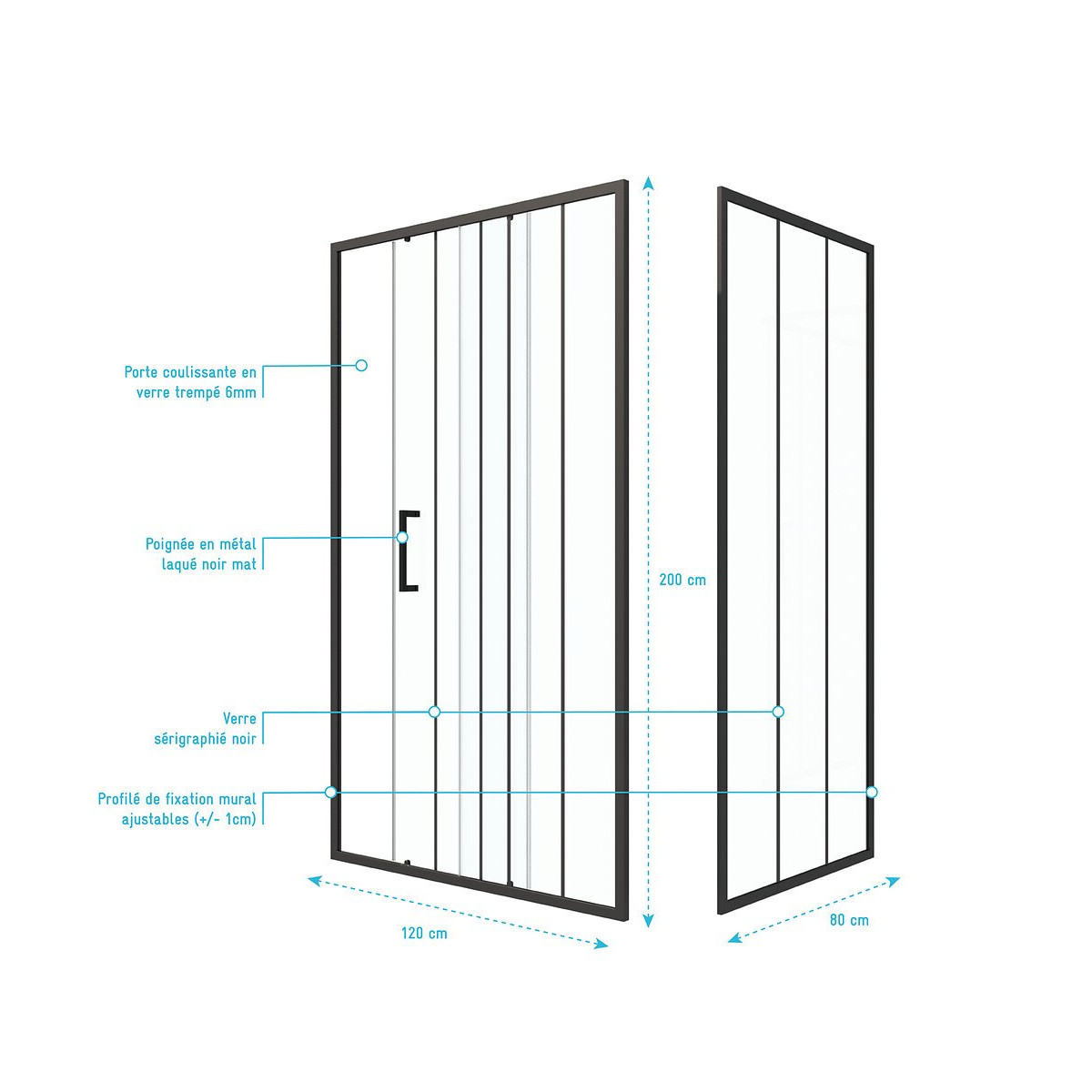 PACK Porte de douche coulissante CRUSHX 120 + paroi de retour CRUSHX RETOUR 80 Caractéristique des portes : Porte coulissante en verre trempé 6mm Poignée en métal laqué noir mat Verre sérigraphié noir Profilé de fixation mural ajustable (+/-1cm) Dimensions de la porte coulissante : 120x200 cm Dimensions de la porte de retour : 80x200 cm Réference du produit:PACF013 Désignation du produit:CRUSHX 120 + CRUSHX RETOUR Garantie 2 ans pièces et non main d'oeuvre. Profilé noir mat thermolaqué : Le thermolaquage est une technique de traitement spécifique réservé aux matériaux en métal ou en aluminium brut. On projette de la peinture en poudre chargée en électricité statique qui va se déposer sur toute la surface des profilés. Cette technique de pulvérisation en poudre , qui s’appelle projection électrostatique ou poudrage électrostatique, permet d'avoir un revêtement complètement uniforme sur tous les profilés. Ce type de traitement dispense l’utilisation de produits chimiques nocifs pour la santé et l’environnement comme les solvants. Après avoir été recouverte de poudre, la pièce doit passer dans un four où elle sera chauffée pendant 20 minutes à 200°C. Les avantages du thermolaquage : Cette technique possède de nombreux avantage, qui sont La surface peinte possède une dureté supérieure ce qui a pour conséquence une résistance aux chocs accrue Le thermolaquage a une meilleure résistance à la corrosion La couleur des profilés thermolaqués résiste mieux au vieillisement et tout autres élément tel que l'humidité etc. Les profilés thermolaqués présentent une meilleure finition, fini les coulures de peinture et défauts d'aspect, avec cette technique la surface est uniforme Sans solvant c'est un véritable plus pour la santé Mais aussi plus écologique (pas de solvants) Dans un souci de qualité mais aussi de sécurité nos produits répondent à toutes les normes Européennes en vigeur. Que ce soit en terme de sécurité en cas de casse, d'entretien de nos produits ou de la durée de vie de ces derniers, nos produits remplissent tous les critères. Verre trempé : Le verre trempé est un verre qui a subi un traitement afin d’améliorer ses propriétés. Nous utilisons la trempe thermique qui consiste à porter le verre à très haute température (environ à 700 °C), puis de le refroidir rapidement. Ce processus favorise l'apparition de tensions en profondeur et celle de la compression à la surface du verre. Tout cela a pour effet l’amélioration de sa résistance aux chocs. Il est de 2 à 5 fois plus résistant que le verre simple. Mais aussi diminue grandement la dangerosité du verre car en cas de casse le verre explose en de petits morceaux et non pas en de grands pans tranchants. Pour le reste il conserve les mêmes propriétés que le verre classique Norme harmonisée : EN14428:2004 Certification Européenne: Aptitude au nettoyage : EN14428 :2004+A1:2008 Clause 4.2 Résistance à l’impact / Propriétés d’éclatement: EN14428:2004+A1:2008 Clause 4.3 Durabilité : EN14428:2004+A1:2008 Clause 4.4 MyShowerRoom c’est aussi la garantie de durabilité : Nous garantissons un stocks de pièces détachées d’au moins 5 ans Notre visserie est en acier inoxydable ce qui est une garantie anticorrosion Garantie 2 ans pièces uniquement Cocorico ! MyShowerRoom est une entreprise Française et toute la conception de nos produits est également Française. Ce qui est un véritable plus pour être au plus près de ses clients et avoir une meilleure connaissance de leurs attentes. Qui sommes nous L’HISTOIRE DE MYSHOWERROOM Nous avons créé MyShowerRoom en 2003 avec l’ambition de démocratiser le design et l’innovation dans la salle de bain pour faire de cette pièce un lieu à part entière, un véritable lieu d’histoires à vivre pour toute la famille. Nos cabines de douche et meubles de salle de bain dans l’ère du temps à des tarifs très accessibles. Nos nombreux brevets garantissent l’originalité de notre gamme de cabines de douches. Et nos ingénieurs mettent en œuvre tout leur savoir-faire et toutes les technologies innovantes au service d’une simplicité d’installation et d’utilisation incomparable pour tous. ÊTRE BIENVEILLANT AVEC NOS CLIENTS Notre service client a un objectif : rendre nos clients heureux. Pour cela nous veillons à répondre dans les 24h aux demandes clients. Mais aussi de toujours apporter une solution et entière satisfaction à nos clients. CONSTRUIRE DES PRODUITS TOUJOURS PLUS PERFORMANTS Nos ingénieurs, ainsi que nos équipes terrain consacrent tous leurs efforts à créer des produits adaptés à vos besoins, et toujours plus innovants grâce à nos technologies. Notre objectif est d’être votre unique interlocuteur pour tous vos projets de salle de bain. CONCRÉTISER LES RÊVES DE CHACUN Un projet de salle de bain ? Nous le réalisons ! Lieu de détente et de relaxation par excellence, la salle de bain est une des pièces maîtresse de la maison. Chez MyShowerRoom, nous mettons tout en oeuvre afin que ce rêve devienne réalité. PROPOSER UNE GAMME COMPLÈTE DE PRODUITS Nous vous proposons grâce à notre boutique en ligne une gamme complète de produits Made in MyShowerRoom pour équiper, et accessoiriser votre salle de bain. Un catalogue que nous renouvelons régulièrement avec les dernières technologies MyShowerRoom. APPORTER UNE EXPERTISE HUMAINE Parce que l’humain passe avant tout, nous travaillons avec les meilleurs experts. La satisfaction de nos clients est notre seule et unique priorité. Chaque problème a une solution, et c’est dans cette optique que nous avons mis en place un chat pour échanger directement avec nos équipes. NOTRE CENTRE LOGISTIQUE 11 000 m² d’entrepôt 7000 palettes en stock 1 800 colis traités par jour Plus de 260 préparations de commandes quotidiennes 12 quais de chargement/déchargement CONSEILS & VENTES Une équipe disponible 5 jo