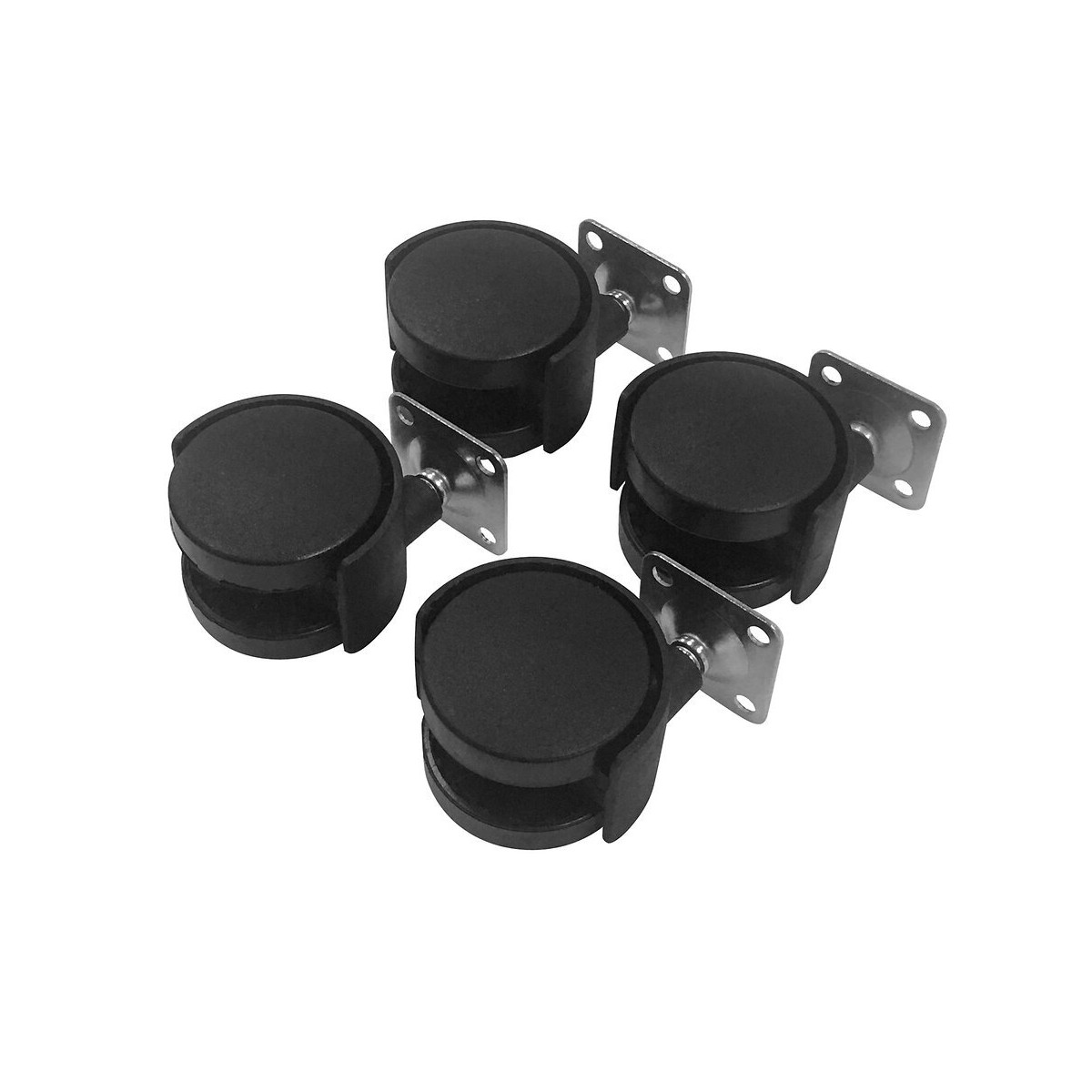 Lot de 4 roulettes pivotantes noires diamètre 50 mm. Plastique noir