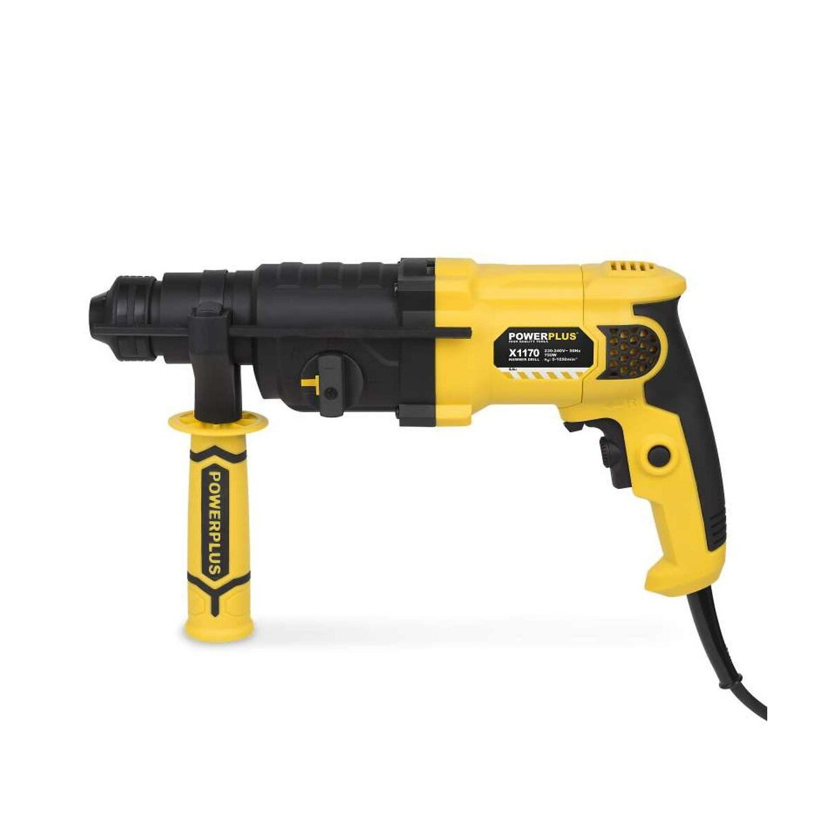 Informations Techniques Vitesse de rotation n: 0-1050 min-1 Niveau de puissance acoustique LwA: 102 dB A Capacité de forage acier: 13 mm Type de mandrin13mm SDS+ adapteur Tension nominale CA Un: 230-240 V Diamètre: 26 mm Capacité de forage béton: 26 mm Force d'impact joules: 3 Joules Longueur du câble: 3 m Capacité de forage bois: 40 mm Coups par minute: 4900 strks/min Fréquence nominale fn: 50 Hz Puissance nominale Pn: 750 W Classe de protection: CLASS II Accessoires inclus: 2 Burins SDS: 1 x pointed / 1 x flat 14mm x 25cm 3 Forets SDS: Diamètre: 8, 10, 12 mm x 15 cm de long Poignée auxiliaire Mandrin à clé avec adaptateur SDSSpécifications techniques