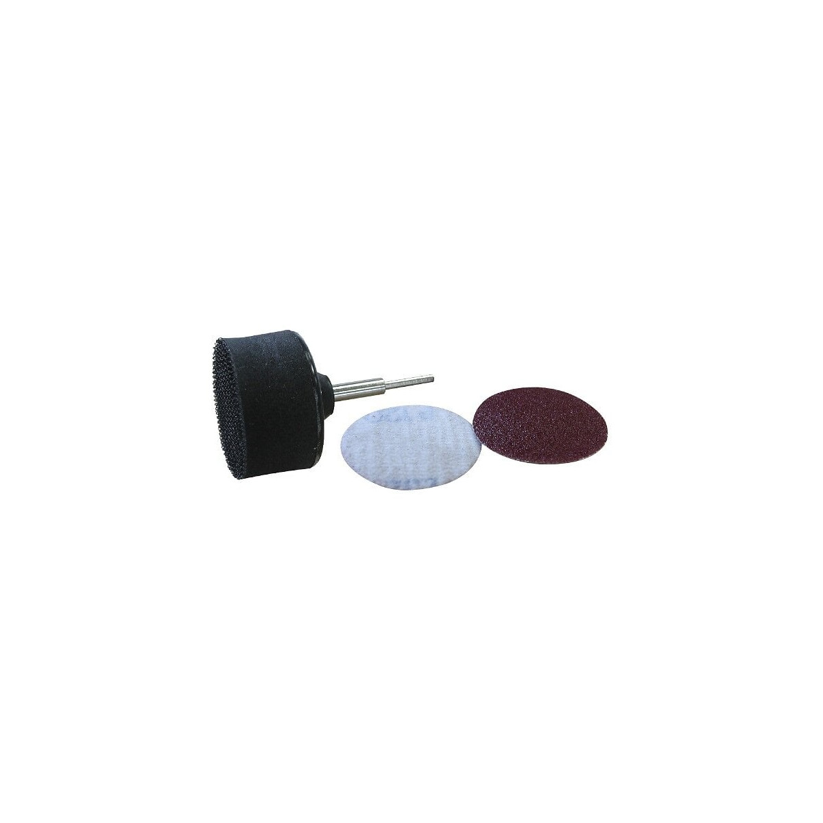 Souples et épais, pour le ponçage des surfaces irrégulières en bois, métal, plastique. 1 porte-disques + 2 disques scratch. Diamètre : 50 mm, grain : 80 et 120.