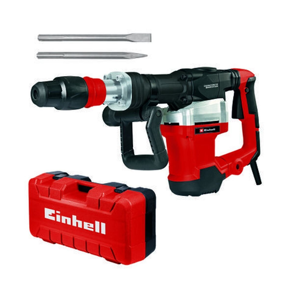 Le marteau démolisseur TE-DH 32 Einhell applique une puissance de 1 500 W au niveau du burin, et permet d’atteindre une performance de démolition élevée grâce à une force de frappe de 32 J. Le marteau démolisseur est sollicité lorsqu'il s’agit de s’attaquer aux structures de construction, notamment pour démolir, abattre ou défoncer des matériaux particulièrement solides et résistants comme la pierre, le béton ou la brique. Le marteau démolisseur est immédiatement opérationnel grâce au pointeau et au burin plat fournis de série dans le coffret de transport et de rangement E-Box très pratique. Les + du produit Haute performance de démolition grâce à une force de frappe de 32 J Mandrin SDS max robuste pour un changement d'outil rapide Poignée principale anti-vibration pour une utilisation avec un minimum de vibrations Les garnitures en revêtement souple Softgrip amortissent les vibrations, y compris au niveau de la poignée auxiliaire Poignée auxiliaire réglable à 180° verticalement et à 360° horizontalement Les balais de charbon à coupure automatique permettent d'éviter une défaillance de l’outil. Construction robuste et durable pour un fonctionnement continu dans des conditions difficiles Câble sous gaine caoutchouc robuste de 4 mètres de longueur pour une mobilité maximale Directement opérationnel grâce au pointeau et au burin plat fournis de série Outil vendu dans le coffret de transport et de rangement E-Box très pratique Caractéristiques techniques Alimentation secteur : 230-240 V | 50 Hz Puissance : 1500 W Fréquence de frappe : 1900 min^-1 Puissance de frappe : 32 J Câble d'alimentation : 400 cm | H07RN-F Porte-outil SDS-Max Longueur : 700 mm Largeur : 260 mm Hauteur : 360 mm Poids du produit : 10.3 kg