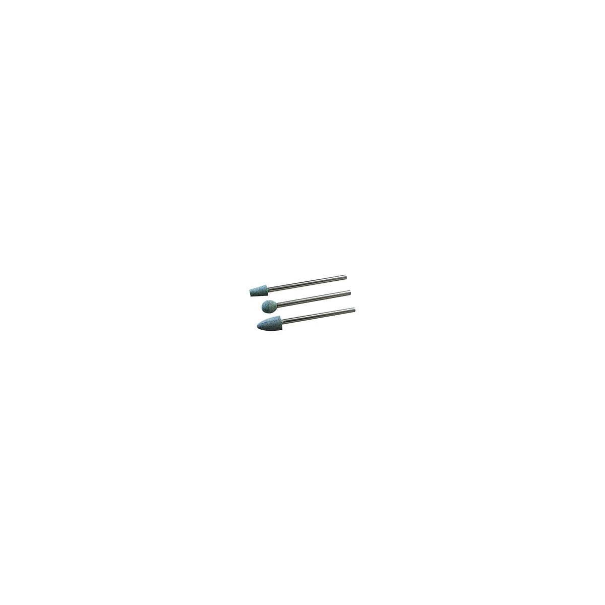 Assortiment de meules au carbure de silicium de formes différentes : Composition : conique 5 x 8 mm - sphérique 4,5 mm - ogive 6 x 10 mm.