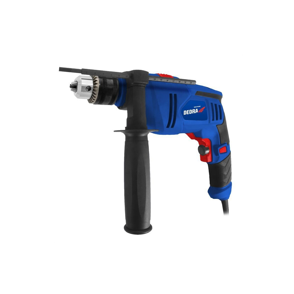 La perceuse à percussion est un outil électrique de base qui peut être utilisé pour les travaux de rénovation et de montage à domicile. La perceuse à percussion vous permet de percer des trous dans les murs et, après avoir désactivé la percussion, également dans le bois, le métal et le plastique. La vitesse peut être réglée salon besoins, CARACTÉRISTIQUES TECHNIQUES: Puissance : 700W, Vitesse : 0-2300 tr/min, Diamètre maximal de perçage dans le métal : 10mm, Diamètre maximal de perçage dans le bois : 30 mm, Diamètre maximal de perçage dans le béton : 13mm, Diamètre du mandrin: 13 mm, Poids : 1,76 kg, Verrouillage de l'interrupteur pour un fonctionnement en continu, Vitesse réglable à l'aide du bouton sur la gâchette de l'interrupteur, Limitation de la profondeur de perçage, Poignée latérale pour un meilleur contrôle de l'outil, Poignée principale caoutchoutée pour une prise en main sûre