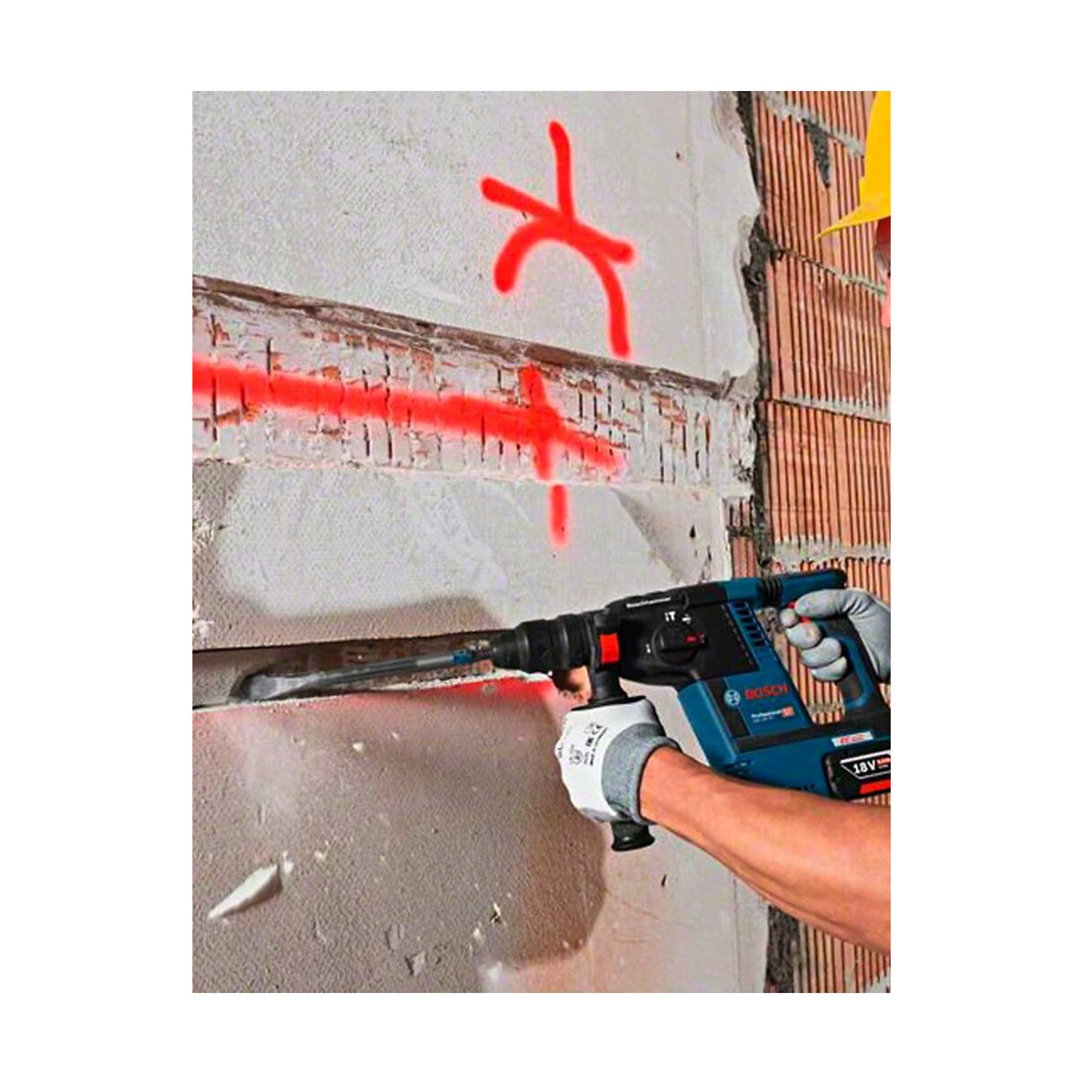 Perforateur BOSCH GBH 18V-26 F Professional - Perforateur universel avec mandrin interchangeable de la gamme des perforateurs sans-fil SDS plus - Fonction KickBack Control et électronique EPC (Electronic Precision Control) pour une meilleure maîtrise de l'outil et une meilleure protection de l'utilisateur - Force de frappe de 2,6 J pour une progression de perçage rapide et une capacité de burinage élevée - Conçu pour les applications de perçage et burinage dans le béton, la maçonnerie, le bois et le métal - Dispose également de la fonction Constant Speed, d'un moteur sans charbon, d'une électronique de protection du moteur (EMP), d'un éclairage LED, d'un embrayage de sécurité, d'un variateur de vitesse, de la fonction Vario Lock et du système Vibration Control - Compatible avec divers dispositifs d'aspiration de poussière ainsi qu'avec toutes les batteries et tous les chargeurs 18 V de Bosch Professional (Professional 18V System)