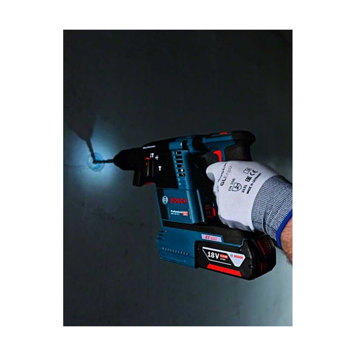 Perforateur BOSCH GBH 18V-26 F Professional - Perforateur universel avec mandrin interchangeable de la gamme des perforateurs sans-fil SDS plus - Fonction KickBack Control et électronique EPC (Electronic Precision Control) pour une meilleure maîtrise de l'outil et une meilleure protection de l'utilisateur - Force de frappe de 2,6 J pour une progression de perçage rapide et une capacité de burinage élevée - Conçu pour les applications de perçage et burinage dans le béton, la maçonnerie, le bois et le métal - Dispose également de la fonction Constant Speed, d'un moteur sans charbon, d'une électronique de protection du moteur (EMP), d'un éclairage LED, d'un embrayage de sécurité, d'un variateur de vitesse, de la fonction Vario Lock et du système Vibration Control - Compatible avec divers dispositifs d'aspiration de poussière ainsi qu'avec toutes les batteries et tous les chargeurs 18 V de Bosch Professional (Professional 18V System)