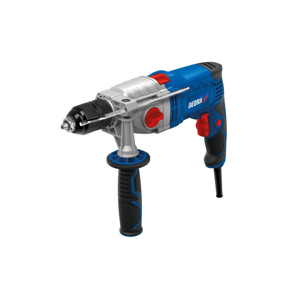 La perceuse à percussion sur secteur est un outil électrique pratique avec une transmission à deux vitesses. Elle est adaptée au perçage de trous dans le béton, le bois et le métal, CARACTÉRISTIQUES TECHNIQUES: Type d'alimentation : électrique, Vitesse : 2600 tr/min, Vitesse : 3200 tours/minute, Nombre de vitesses : 2, Diamètre du mandrin: 13 mm, Poids : 3 kg, Diamètre maximal de perçage dans le métal : 10mm, Diamètre maximal de perçage dans le bois : 40 mm, Diamètre maximal de perçage dans le béton : 16mm, Longueur du câble : 3m, 2 modes de fonctionnement - perçage avec ou sans percussion, Présélection de la vitesse de perçage , Verrouillage de l'interrupteur, Changement de sens de rotation, Limitation de la profondeur de perçage