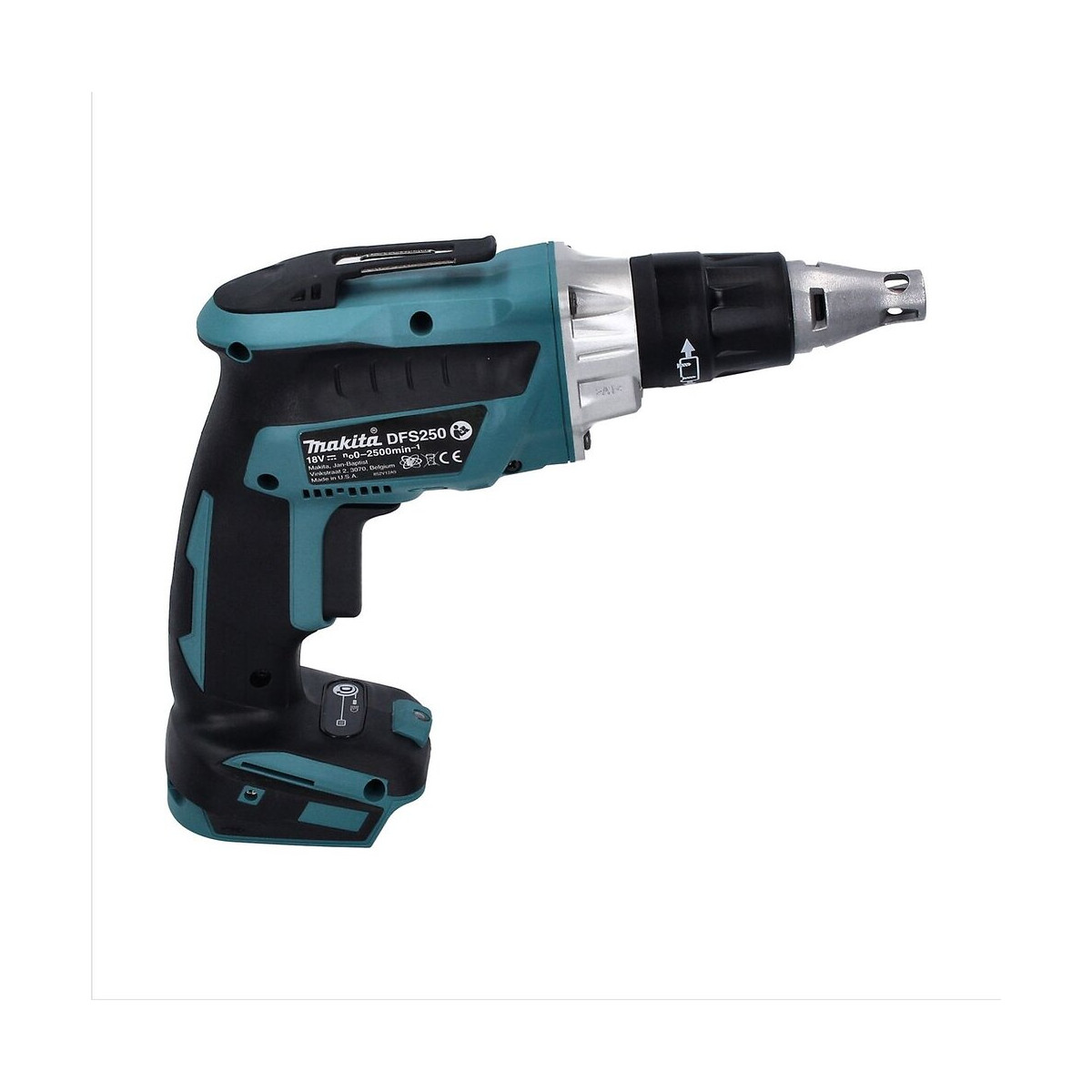 Contenu du paquet: - 1x Makita DFS 250 Z Visseuse plaque de plâtre sans fil 18 V Brushless - 1x Clip de ceinture - 1x Bit Phillips PH2 - 1x Support magnétique 1/4" 60 mm - sans batterie, sans chargeur, sans Coffret de transport Description du produit: Le Visseuse plaque de plâtre sans fil Makita est particulièrement adapté à la construction de cloisons sèches. Grâce à sa précision, à sa légèreté et à son réglage de profondeur à une main, ce tournevis est facile à manipuler. La technologie Push&Drive garantit que le moteur ne démarre en mode verrouillage que lorsque l'embout du tournevis est engagé et qu'une pression est appliquée. Cela permet d'avoir un environnement de travail plus silencieux et d'économiser la batterie. Le moteur sans balais intégré fonctionne sans balais de carbone. Cela signifie qu'il n'est pas nécessaire d'entretenir l'outil et qu'il a une faible consommation d'énergie. La batterie dure donc aussi plus longtemps. Cette machine compacte, légère et ergonomique est dotée d'un interrupteur de verrouillage pour un fonctionnement continu et d'un porte-insert magnétique. De plus, il y a un réglage de la profondeur pour faciliter le vissage. Une poignée ergonomique avec un revêtement souple assure un grand confort de travail. De plus, un puissant éclairage LED photoluminescent est installé. Il fonctionne en rotation gauche et droite et sa vitesse est infiniment variable. Makita est un des principaux fabricants d'outils électriques, une longue tradition et des normes de qualité très élevées distinguent l'entreprise. Spécifications techniques: Fabricant : Makita Désignation du fabricant : DFS 250 Tension de la batterie : 18 V Vitesses : 0 - 2500 tours/minute Vis autotaraudeuses max : 6 mm Ø Vis à aggloméré max : 5 mm Ø Porte-outil (douille hexagonale) : 1/4". Niveau de pression acoustique : 72 dB(A) Facteur K (son) : 3 dB (A) Vibrations : 2,5 m/s^2 Facteur K (vibrations) : 1,5 m/s^2 Poids (appareil uniquement) : 1,5 Kg