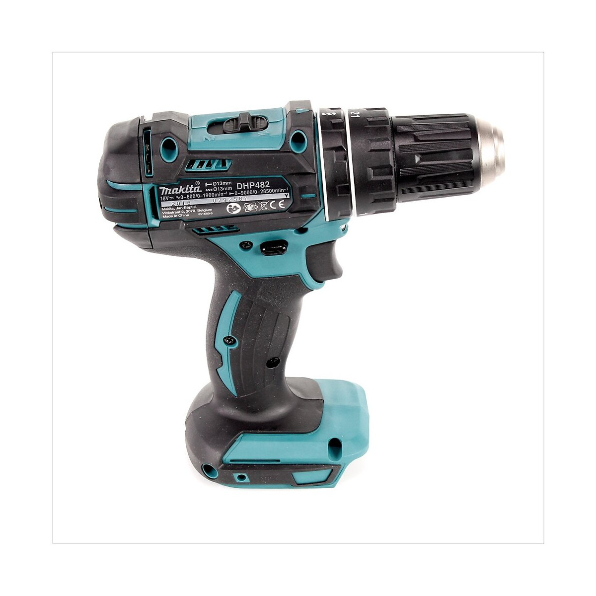 Contenu du paquet: - 1x Makita DHP 482 Z 18 V Li-Ion Perceuse visseuse à percussion sans fil - 1x Boîtier de transport Makpac II - 1x Système de compartiment Makpac pour DHP - 1x Clip de ceinture - sans Batterie, ni Chargeur Description du produit: La perceuse visseuse à percussion sans fil Makita DHP 482 est caractérisée par sa pignonnerie entièrement métallique, et par la puissance du moteur à 4 pôles avec inverseur de sens de rotation, et d'un frein électronique du moteur. La machine est dotée de la technologie XPT (eXtreme Technology Protection) limitant les infiltrations d'eau et de poussières, et d'une double LED intégrée pour travailler dans des endroits les plus sombres. La perceuse visseuse à percussion sans fil Makita DHP 482 possède une vitesse variable à mesure que l’on accroît la pression exercée sur la gâchette, assurant ainsi un contrôle parfait en fonction du travail à effectuer. La machine est dotée d’une poignée à revêtement Soft Grip en caoutchouc en forme ergonomique qui s'adapte comme un gant pour réduire la fatigue de l'opérateur. La perceuse visseuse à percussion sans fil Makita DHP 482 est équipée d'un système de protection des batteries contre les surcharges, les décharge en profondeur et les surchauffes. Spécifications techniques: Vitesse à vide V1: 0-600 tr/min Vitesse à vide V2: 0-1900 tr/min Frappe V1: 0-9000 cps/min Frappe V2: 0-28500 cps/min Ø max. dans le bois: 38 mm Ø max. dans l'acier: 13 mm Ø max. dans le béton: 13 mm Couple de serrage max. (élast.): 36 Nm Couple de serrage max. (franc): 62 Nm Capacité du mandrin: 1,5 - 13 mm Tension: 18 V Dimensions (LxBxH): 198x79x249 mm Poids sans batterie: 1,5 kg