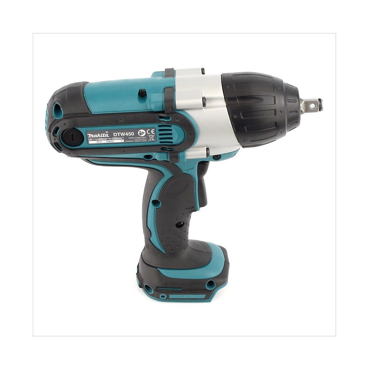 Contenu du paquet: - 1x Makita DTW 450 18 V Li-Ion Boulonneuse à chocs sans fil - sans Accessoires, ni Batteries, ni Chargeur Description du produit: La boulonneuse à chocs sans fil Makita DTW 450 est caractérisée par sa puissance offrant un couple de serrage élevé de 440 Nm et par sa maniabilité. La machine est dotée d’une poignée souple caoutchoutée en forme ergonomique pour un meilleur prise en main, et d'un interrupteur à bascule sur la poignée centrale facilitant l'alternance de montage et démontage. La boulonneuse à chocs sans fil Makita DTW 450 comporte un amortisseur en caoutchouc isolant la batterie des vibrations. Spécifications techniques: Vitesse à vide max.: 1.600 tr/min Cadence de chocs: 2.220 cps/min Couple de serrage max. (franc): 440 Nm Capacité : boulon standard: M12 - M22 Capacité : boulon HR: M12 - M16 Emmanchement carré: 1/2“ Tension: 18 V Pression sonore (LpA): 94 dB(A)