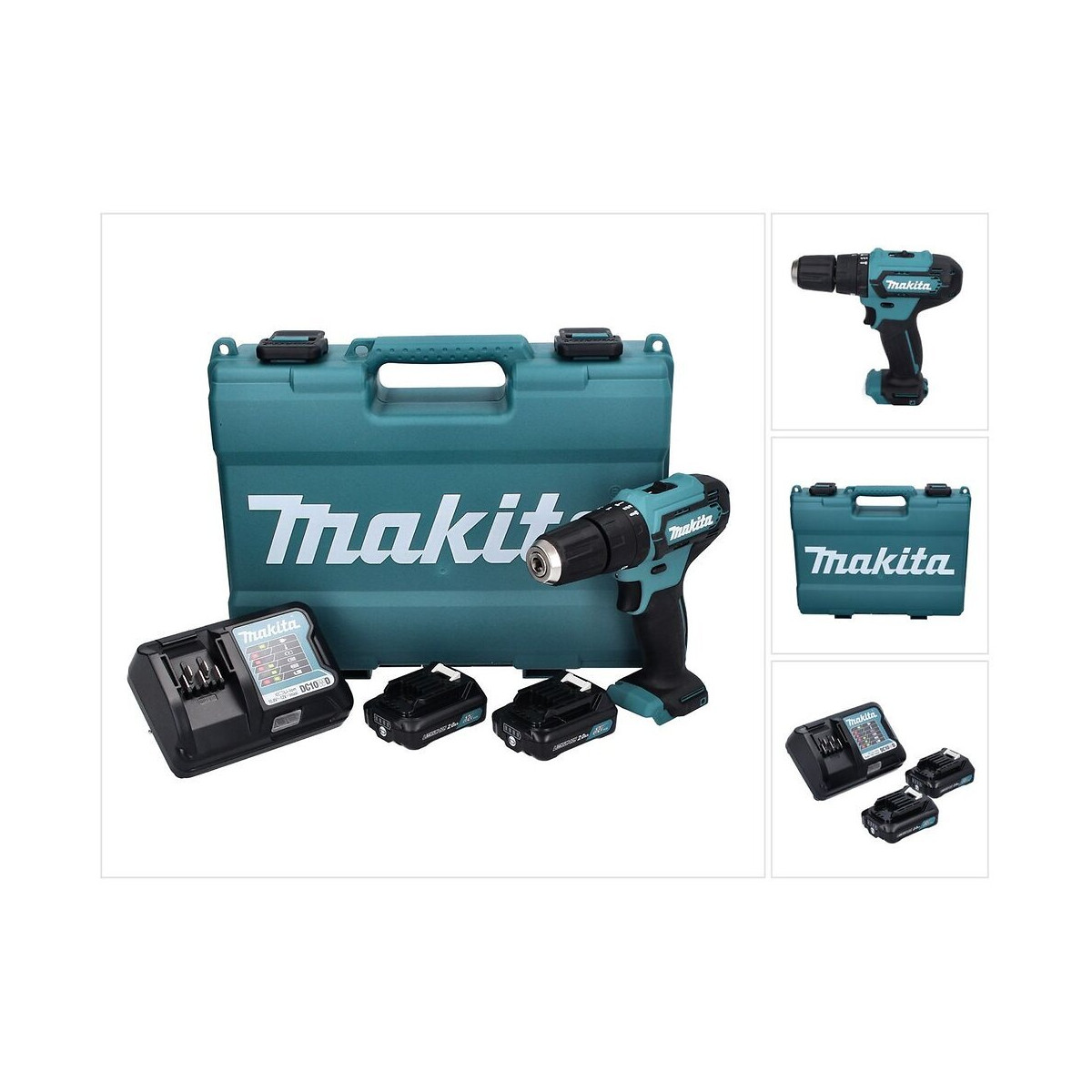 Contenu du paquet: - 1x Makita HP 333 DWAE Perceuse-Visseuse à percussion 12 V 30 Nm - 2x Batteries BL 1021 B 12V 2,0Ah Li-Ion ( 197396-9 ) - 1x Chargeur DC 10 WD pourr 10,8 - 12V Li-Ion Akkus ( 197343-0 ) - 1x Clip de ceinture - 1x Coffret ( 821661-1 ) Description du produit: La perceuse-visseuse à percussion Makita HP 333 DWAE est un ensemble complet et sans souci pour tout le monde. La foreuse à percussion bien faite couvre toutes les applications. Qu'il s'agisse de percer, de visser ou de percer par impact, cette visseuse sans fil universelle est une véritable machine polyvalente. La tension de 12 volts est conçue pour toutes sortes de travaux. Que ce soit pour un usage privé, pour le bricoleur ambitieux ou pour les artisans. Le HP 333 possède deux niveaux de couple réglables, une lampe LED et un démarrage en douceur. Avec le porte-foret de 10 mm maximum, une large gamme d'accessoires est disponible. Grâce aux deux piles de 2,0 ampères incluses, l'une peut fonctionner, et l'autre se recharge à temps. La perceuse à percussion, les deux batteries et le chargeur tiennent tous dans la mallette pour un rangement rapide, soigné et peu encombrant. Makita est un des principaux fabricants d'outils électriques, une longue tradition ainsi que des concepts raffinés distinguent l'entreprise Spécifications techniques: Fabricant : Makita Désignation du fabricant : HP 333 DWAE Tension : 12 V Type de batterie : CXT Vitesse de ralenti : 0 à 450/ 0 à 1700 tr/min Couple doux : 14 Nm Couple fort : 30 Nm Forage dans le béton Ø : 8 mm Perçage dans l'acier Ø : 10 mm Perçage dans le bois Ø : 21 mm porte-foret max. : 10 mm