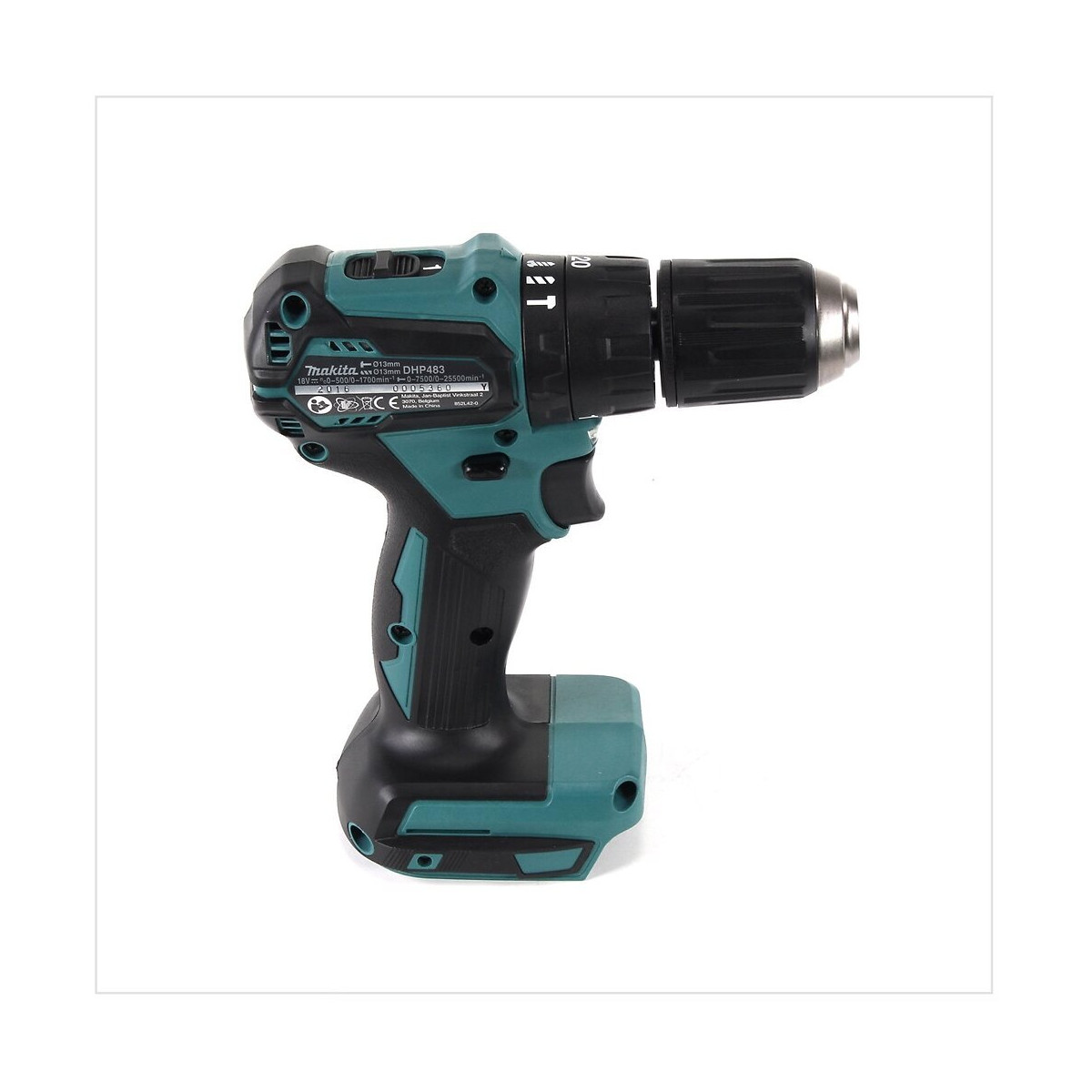 Contenu du paquet: - 1x Makita DHP 483 18 V Li-Ion Perceuse visseuse à percussion sans fil - 1x Boîtier de transport Makita Makpac 2 - 1x Insert Makpac - sans Accessoires, ni Batteries, ni Chargeur Description du produit: La perceuse visseuse à percussion sans fil Makita DHP 483 possède un moteur sans balais (Brushless) pour une durée de vie plus long et pour plus de puissance par rapport a un moteur classique. Le réglage du couple est précis avec 20 positions + position perçage, la vitesse de l’outil augmente à mesure que l'on accroît la pression exercée sur la gâchette. La machine est équipée d'un frein électrique arrêtant la machine dès qu'on lâche la gâchette. Le mandrin monobague de 13 mm est équipé d'un mécanisme de verrouillage automatique pour un échange facile des forêts et des embouts. La perceuse visseuse à percussion sans fil Makita DHP 483 comporte une poignée à revêtement Soft Grip en caoutchouc en forme ergonomique qui s'adapte comme un gant pour une meilleure prise en main et d'une LED intégrée pour travailler dans des endroits les plus sombres. Spécifications techniques: Tension de la batterie: 18 Volt Vitesse à vide 1er vitesse: 0 - 500 tr/min Vitesse à vide 2ème vitesse: 0 - 1 700 tr/min Cadence de chocs 1er vitesse: 0 - 7.500 cps/min Cadence de chocs 2ème vitesse: 0 - 25.500 cps/min Capacité du mandrin: 1,5 - 13 mm Diamètre maximal bois: 36 mm Diamètre maximal acier: 13 mm Diamètre maximal brique: 13mm Couple maximum (serrage franc): 40 Nm Couple maximum (serrage progressif): 23 Nm Poids sans batterie: 1000 g