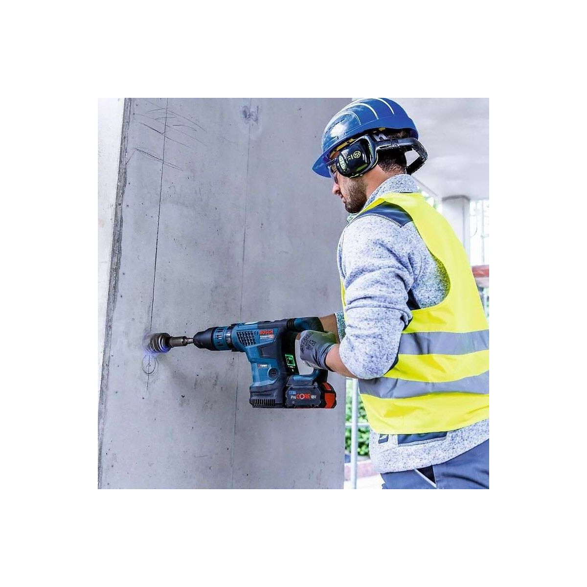 AVANTAGES PRODUIT Perforateur sans-fil BITURBO avec SDS max BOSCH GBH 18V-36 C Professional Le perforateur SDS max sans-fil GBH 18V-36 C Professional de Bosch bénéficie d'une endurance extrême Extrêmement compact : nettement plus compact que n'importe quel autre perforateur SDS max sans-fil du marché Puissance maximale et poids minimum : excellent rapport poids/performance avec 6,1 kg et 7,0 J grâce à la technologie BITURBO Brushless et à la batterie ProCORE18V Hautement intelligent : interface utilisateur et Bluetooth Connectivity, démarrage progressif et interrupteur blocable pour marche continue lors des travaux de burinage Son interface utilisateur avec Bluetooth Connectivity permettant de connaître l'état de l'outil en temps réel et de sélectionner plusieurs modes ainsi que de nouvelles fonctions électroniques telles que le démarrage progressif pour les perçages et burinages et l'interrupteur blocable pour marche continue lors des travaux de burinage en font le perforateur le plus intelligent du marché. CARACTERISTIQUES TECHNIQUES Perforateur sans-fil BITURBO avec SDS max BOSCH GBH 18V-36 C Professional Force de frappe, max. : 7 J Fréquence de frappe à vitesse de rotation nominale : 0 – 2.900 cps/min Vitesse de rotation nominale : 0 – 500 tr/min Tension de la batterie : 18 V Poids sans batterie : 5,1 kg Porte-outils : SDS Max Dimensions de l'outil (longueur) : 460 mm Dimensions de l'emballage (longueur x largeur x hauteur) : 411 x 619 x 145 mm ACCESSOIRES 1 module Bluetooth Low Energy GCY 42 Professional 1 Poignée supplémentaire 1 Chiffon 1 Tube de graisse 1 Coffret de transport