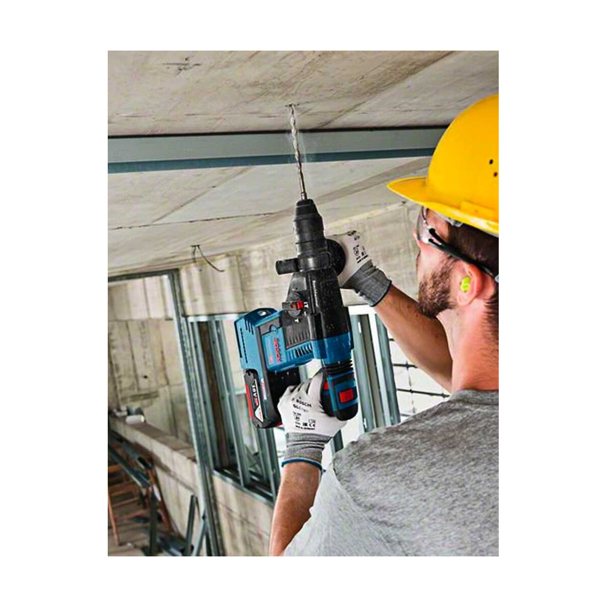 Perforateur BOSCH GBH 18V-26 F Professional - Perforateur universel avec mandrin interchangeable de la gamme des perforateurs sans-fil SDS plus - Fonction KickBack Control et électronique EPC (Electronic Precision Control) pour une meilleure maîtrise de l'outil et une meilleure protection de l'utilisateur - Force de frappe de 2,6 J pour une progression de perçage rapide et une capacité de burinage élevée - Conçu pour les applications de perçage et burinage dans le béton, la maçonnerie, le bois et le métal - Dispose également de la fonction Constant Speed, d'un moteur sans charbon, d'une électronique de protection du moteur (EMP), d'un éclairage LED, d'un embrayage de sécurité, d'un variateur de vitesse, de la fonction Vario Lock et du système Vibration Control - Compatible avec divers dispositifs d'aspiration de poussière ainsi qu'avec toutes les batteries et tous les chargeurs 18 V de Bosch Professional (Professional 18V System)