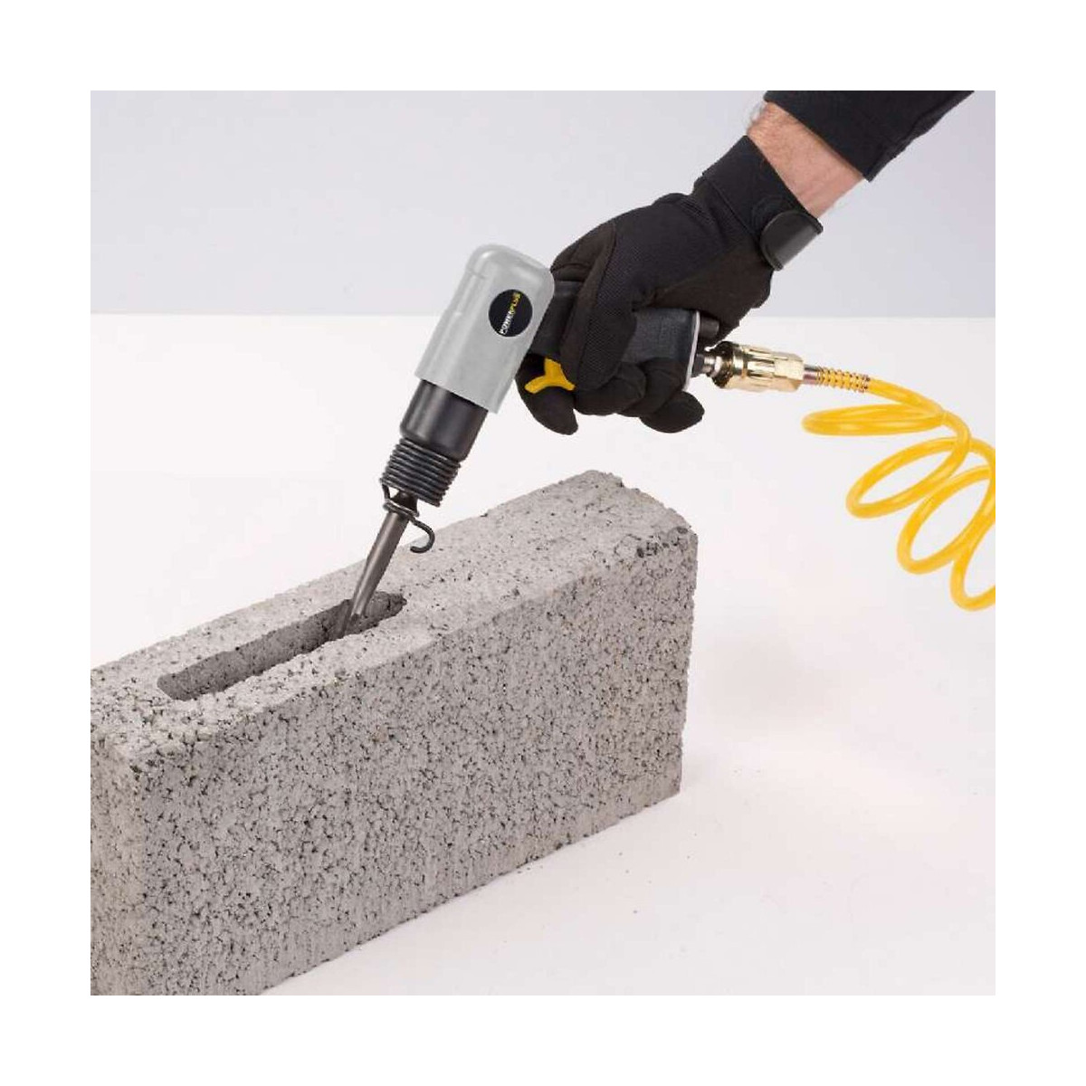 Description détaillée du produit: - produit: marteau burineur et perforateur - marque: Powerplus - univers: outillage pneumatique - utilisation: cisailler, buriner, racler et découper des pièces métalliques - composition: aluminium Caractéristique du produit: - marteau léger et résistant - vitesse: 4500 tous / min - pression: 6,2 bar - dimensions: 26 x 24 cm Inclus avec le produit: - 4 burins de 125 mm - 1 rouleau de ruban d'étanchéité - 1 bidon d'huile vide - 2 raccords mâles euro + orion