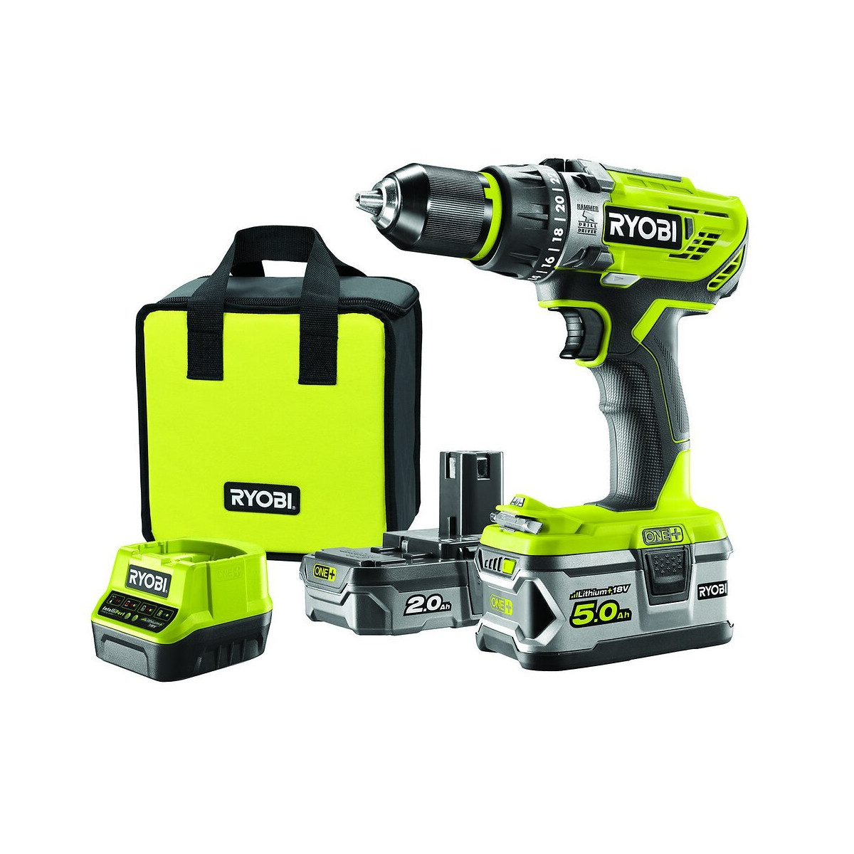 Perceuse-visseuse à percussion 18V - 50 Nm - 500-1800 tr/min - mandrin métal 13 mm- 2 batteries Lithium+ 1 x 5,0 Ah / 1 x 2,0 Ah - chargeur 2,0 A - livrée en sac de transport