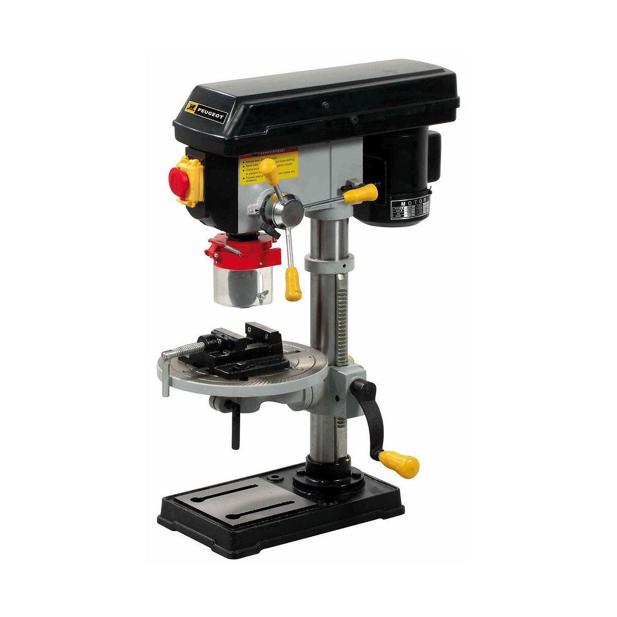 Le perçeuse colonne PEUGEOT ENERGYDrill-13B 350 W est puissante et très complète. Elle est livrée avec un étau et la visserie de fixation. Caractéristiques : 5 vitesses de 620 à 2620 tr/min Livrée avec étau et visserie de fixation Moteur coque métal bobinage cuivre Large table 290 x 290 mm avec crémaillère et manivelle Système de commande pour droitier et gaucher Sécurité à l’ouverture du carter poulies (coupe circuit) Course de broche 65 mm Hauteur totale 680 mm