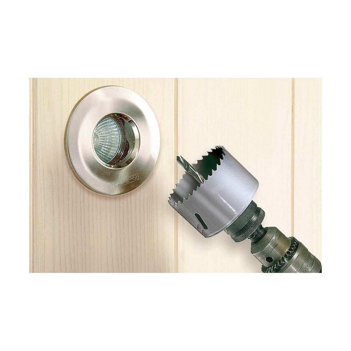 Coffret de 6 trépans BIM diamètre 40, 54, 65, 68, 74, 86 mm. 1 axe avec foret centreur, pour perceuses. Pour bois et métaux maximum. mm RPM diamètre 40 mm 2100 - diamètre 54 mm 2000 - diamètre 65 mm - 1850 - diamètre 68 mm 1800 - diamètre 74 mm 1800 - diamètre 86 mm 1500. Pour métaux non-ferreux maximum. mm RPM diamètre 40 mm 220 - diamètre 54 mm 160 - diamètre 65 mm - 130 - diamètre 68 mm 130 - diamètre 74 mm 120 - diamètre 86 mm 100. Profondeur de coupe 40 mm. Pour bois, contreplaqués, acier, métaux non-ferreux, plastiques et plaques de plâtre. Pour l'encastrement des boîtiers électriques et spots halogènes. Label TUV.