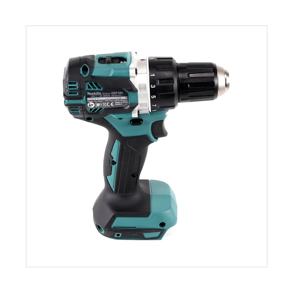 AVANTAGES Perceuse Visseuse MAKITA DDF484Z Perceuse Visseuse à moteur Brushless, rapide (2000 tr/min) et compacte (182 mm) pour travaux lourds. Moteur BL: Puissant, compacité de la machine accrues, rendement supérieur et maintenance réduite par rapport aux moteurs classiques. Robuste grâce à son carter d'engrenage en aluminium et sa pignonnerie entièrement métallique. Technologie XPT limitant les infiltrations d'eau et poussières Double éclairage LED intégré pour un travail plus aisé dans les endroits sombres Crochet ceinture positionnable gauche et droite Poignée à revêtement Soft Grip pour plus de confort CARACTERISTIQUES TECHNIQUES Perceuse Visseuse MAKITA DDF484Z Puissance Tension 18 V Batterie Composition chimique batterie Li-Ion Batt. compatibles 18V Li-Ion 1,5 à 6 Vitesse linéaire ou périphérique Nombre de vitesses 2 Régime Vitesse à vide V1/V2 0 à 500 / 0 à 2000 tr/min Vitesse à vide V1 0 à 500 tr/min Vitesse à vide V2 0 à 2000 tr/min Capacité de serrage Couple de serrage max. (élast/franc) 36 / 54 Nm Couple de serrage max. (élast.) 36 Nm Couple de serrage max. (franc) 54 Nm Capacité de perçage / burinage Ø max. dans l'acier 13 mm Ø max. dans le bois 38 mm Ø max. dans acier/bois 13 / 38 mm Outillage à utiliser Capacité maximale du mandrin 13 mm Niveaux d'exposition et de vibrations Vibration 3ax perçage (ah) <2,5 m/s² Pression sonore (Lpa) 76 dB (A) Général Dimensions (L x l x h) 172 x 79 x 261 mm Poids net EPTA 1,8 kg ACCESSOIRES 1 Crochet ceinture