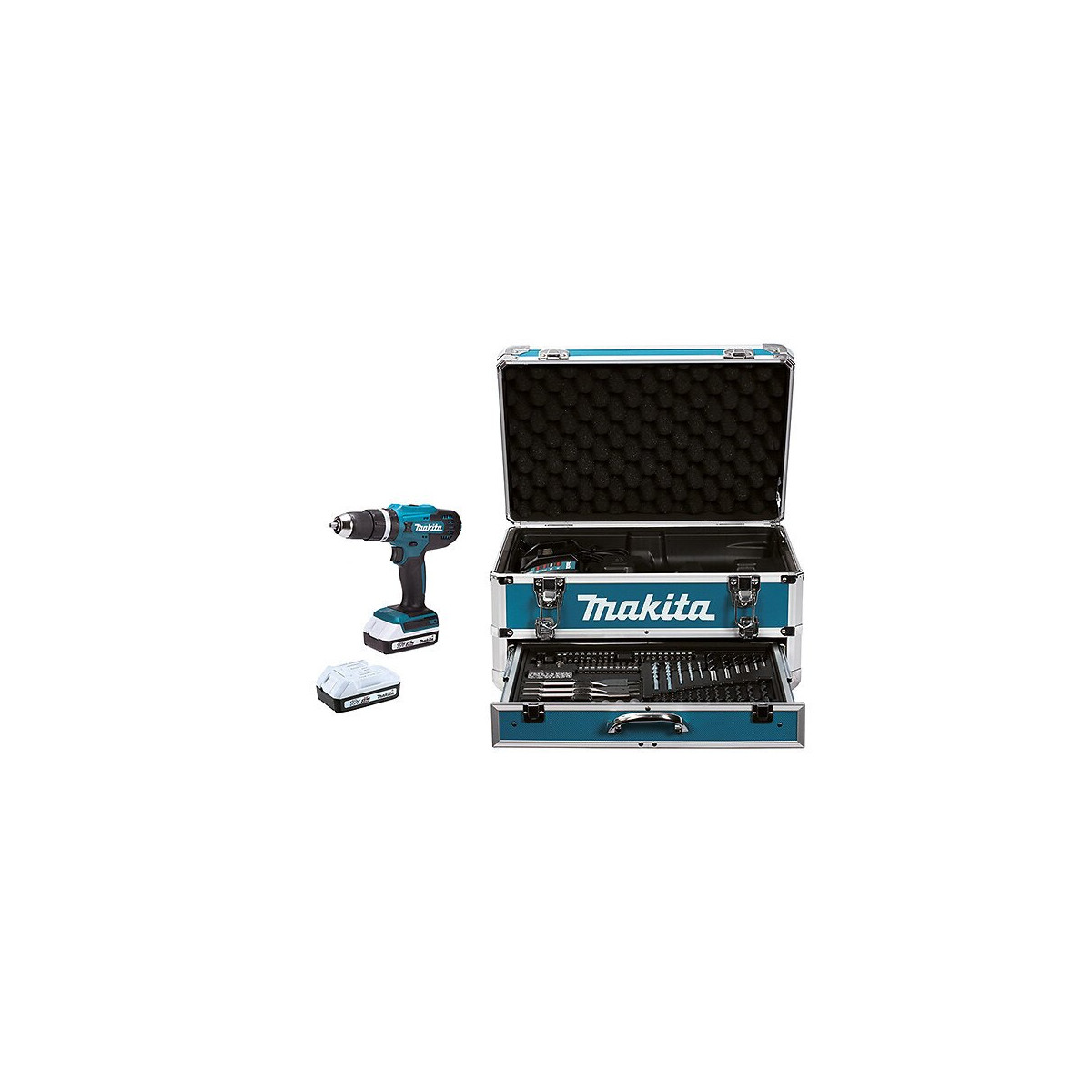 Capacité de batterie 2 Ah, ,Temps de charge en moyenne 60 min, ,Nombre de batteries fournies 2, ,Vitesse à vide V1 0 à 400 tr/m, ,Vitesse à vide V2 0 à 1400 tr/min, ,Frappe V1 0 à 6000 cps/min Frappe V2 0 à 21000 cps/min, ,Frappe V1 0 à 6000 cps/min Frappe V2 0 à 21000 cps/min, ,Ø max. dans le béton 13 mm Ø max. dans l'acier 13 mm Ø max. dans le bois 36 mm, ,Capacité maximale du mandrin 13 mm, ,Taux de vibration triaxial (ah ) 2,5 m/s² Vibration 3ax perçage (ah) 2,5 m/s² Vibration perçage percussion (ah ) 7 m/s² Marge d'incertitude vibration (K) 1,5 m/s² Pression sonore (Lpa) 81 dB (A) Puissance sonore (Lwa) 92 dB (A). Perceuse visseuse à percussion 2 vitesses, compacte et ultra légère Mandrin auto-serrant 13 mm mono bague Réglage précis du couple en 16 positions + position perçage + position perçage à percussion 2 vitesses à engrenages métalliques garantissant fiabilité et efficacité lors du perçage et du vissage Meilleur contrôle grâce au frein électrique, la machine s'arrête au relachement de la gâchette Inverseur de sens de rotation Ergonomie Soft Grip pour une meilleure prise en mainSpécifications techniques