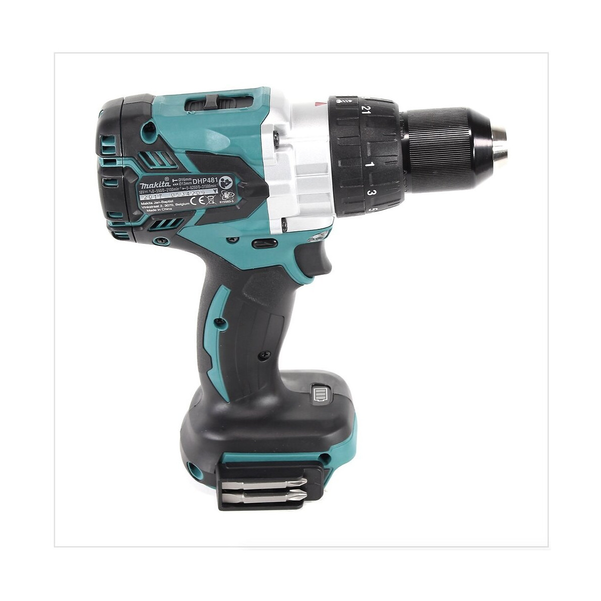 Perceuse à Percussion MAKITA DHP481 - Moteur Brushless BL : plus efficace, réduit la friction et la surchauffe du moteur augmentant ainsi la durée de vie de la batterie - Deux vitesses mécaniques et vitesse de déclenchement variable pour une plus grande précision au début du perçage et du vissage - 21 positions de couple de serrage : jusqu'à 10 Nm en position 21 - Mandrin autobloquant, une seule action qui facilite le changement d'accessoires - LED haute luminosité parfaites pour les espaces à visibilité réduite - Poignée plus longue, permet une adhérence plus ferme sur les travaux qui nécessitent un couple élevé
