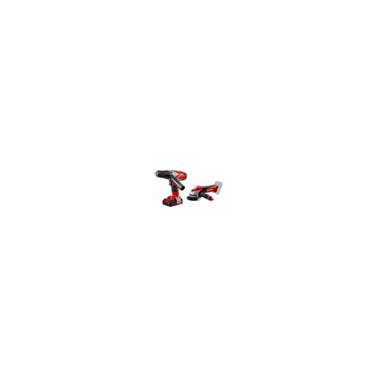 Kit Perceuse visseuse à percussion sans fil TE-CD 18-2 Li-i + Meuleuse d'angle sans Fil TE-AG 18 Li Solo Einhell Perceuse visseuse à percussion sans fil EINHELL TE-CD 18-2 Li-i Kit - 18 V / 1,5Ah - 48 Nm -Couple 23+1+1 -Mandrin Monobloc auto-serrant - Quick-stop - temps de charge 30 min env. - 2 vitesses I : 0-320 tr/min, II : 0-1350 tr/min - réglable électronique - Livré en coffret plastique avec 1 batterie et 1 chargeur + Meuleuse d'angle sans fil TE-AG 18 Li Solo - "SoftGrip" - Ø115 mm - vitesse à vide 8500 tours/min - démarrage progressif - protection du disque réglable sans outils - clé de fixation intégrée dans la deuxième poignéeSpécifications techniques