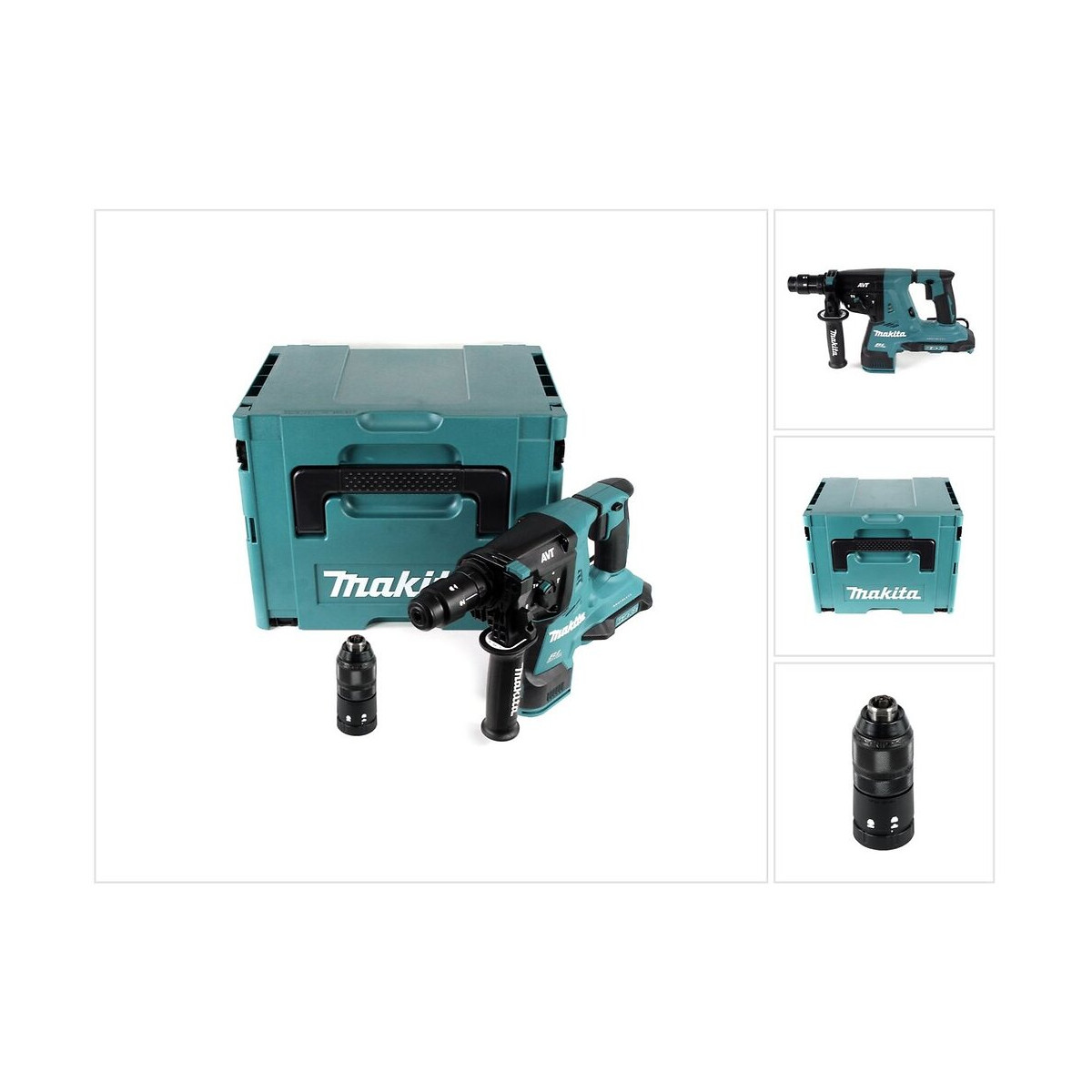 Contenu du paquet: - 1x Makita DHR 281 ZJ Perforateur-burineur sans fil - 1x Coffret de transport Makpac - 1x Butée de profondeur - 1x Graisse de perçage 100ml - 1x Mandrin de changement rapide Makita 1,5mm - 13mm - 1x Serviette de nettoyage Makita - Sans chargeur ni batterie Description du produit: Le perforateur-burineur DHR 281 de Makita de grande puissance est alimenté par deux batteries Makita de 18 volts pour répondre aux exigences les plus élevées. Ce perforateur-burineur séduit par son moteur sans balai(Brushless), ce qui a un effet très positif sur la durée de vie et l'endurance de ce dernier. Un limiteur de couple à friction protège l'utilisateur en cas de blocage du marteau perforateur pendant le travail. De plus, Makita a intégré sa technologie Xtreme Protect, qui assure une protection optimale contre la poussière et les projections d'eau, ce qui rend le perforateur-burineur extrêmement résistante et durable. Sa technologie antivibratoire offre un niveau de confort élevé et combat la fatigue causée par les vibrations. Mais encore, cet appareil de Makita est équipé d'une LED puissante qui éclaire la zone de travail de manière optimale et d'un affichage d'avertissement de faible capacité de la batterie. De plus, ce perforateur-burineur est livré avec un mandrin à changement rapide très confortable. Spécifications techniques: Tension de la batterie: 2x 18V Régime à vide (1ère vitesse) : 0 - 980 tr/min Régime à vide (2ème vitesse) : 0 - 5.000 tr/min Force de frappe unitaire : 2,8 J Capacité de perçage dans le bois: 32 mm Capacité de perçage dans l'acier: 13 mm Capacité de perçage dans le Béton: 28 mm Capacité de perçage des forets diamantés : 68 mm Convient pour: SDS-PLUS Dimensions (L x l x H) en mm: 373 x 134 x 232 Poids: 4,9 kg Pression acoustique (LpA): 92 dB (A) Puissance acoustique (LWA): 103 dB (A)