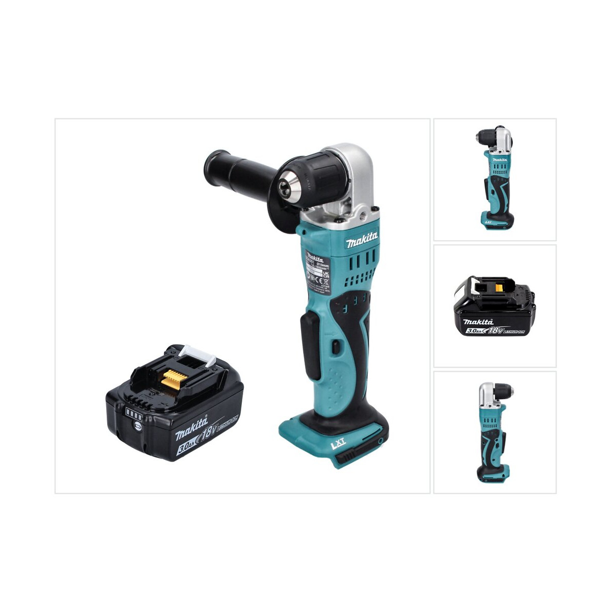 Contenu de la livraison: - 1x Makita DDA 351 Perceuse-visseuse d'angle sans fil 18 V 13,5 Nm - 1x Batterie Makita BL 1830 B 18 V 3,0 Ah - sans chargeur, sans coffret Description du produit: La Makita DDA 351 est une perceuse-visseuse d'angle sans fil pratique avec frein moteur électronique et vitesse réglable. Le moteur à 4 pôles de conception compacte empêche une perte de couple même avec une faible consommation d'énergie. La poignée est rembourrée avec un caoutchouc, ce qui rend le travail beaucoup plus facile. Le DDA 351 est livré avec un grand interrupteur à levier pour contrôler la vitesse et dispose d'une puissante LED pour un éclairage optimal de la zone de travail. Spécifications techniques: Fabricant : Makita Désignation du fabricant : DDA 351 Tension de la batterie : 18 V Système de batterie : LXT Système de protection de la batterie : Oui Régime de ralenti : 0 - 1800 tr/min Couple dur / mou : - / 13,5 Nm Capacité de perçage dans le bois : 25 mm Capacité de perçage dans l'acier : 10 mm Enregistrement : 1/2 "-20UNF" Gamme de mandrin : 1,5 - 10 mm Poignée latérale : Oui Poids avec batterie (EPTA) : 1,6 - 1,9 kg Dimensions du produit (LxlxH) : 326 x 79 x 115 mm Dimension du coin : 88 mm Niveau de pression acoustique (LpA) : 70 dB (A) Bruit de valeur K : 3 dB (A) Vibrations : ≤ 2,5 m/s² Valeur K vibration : 1,5 m/s²